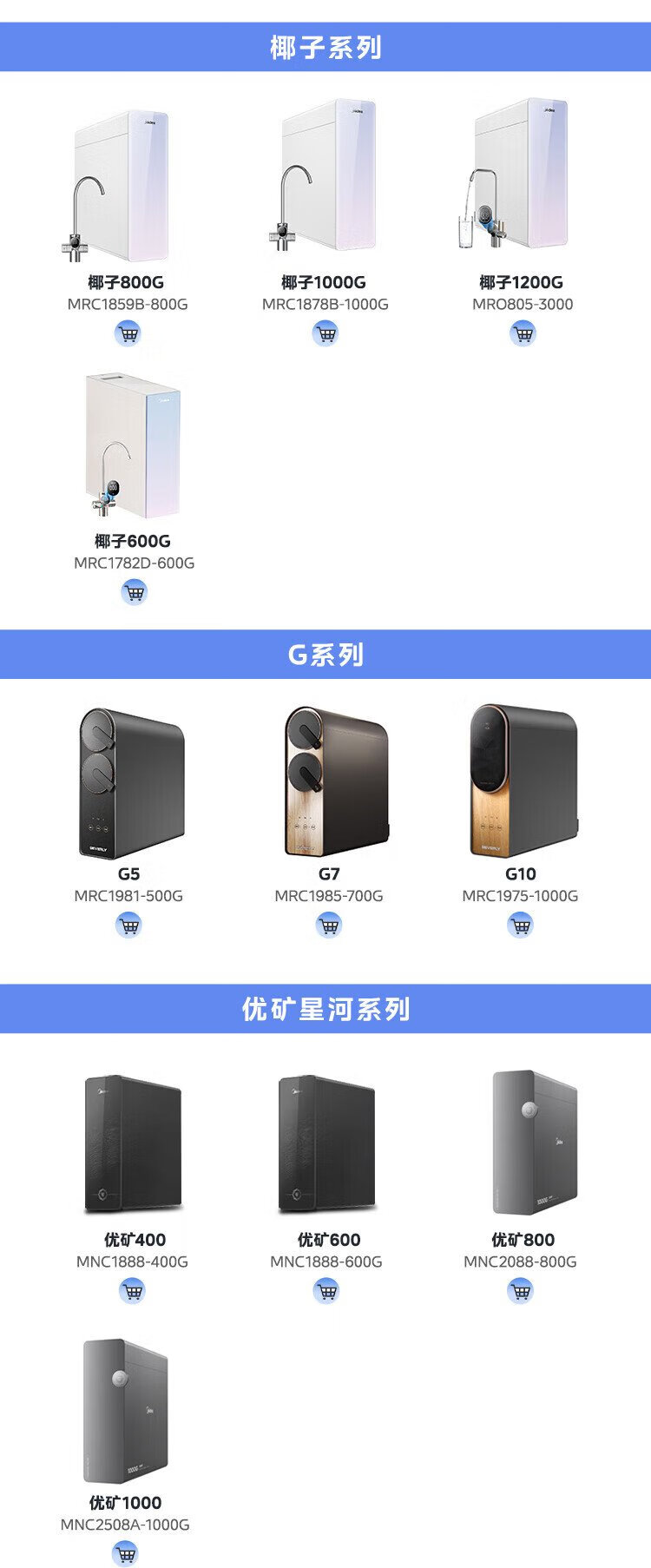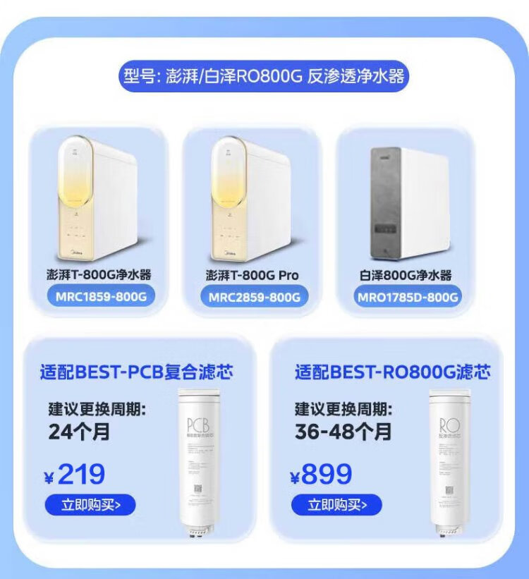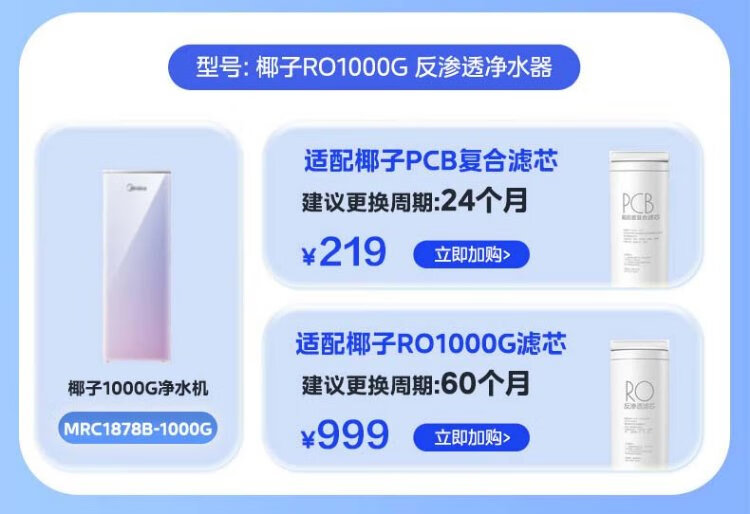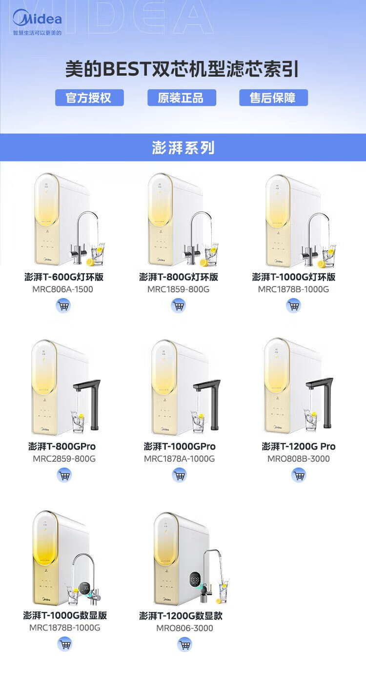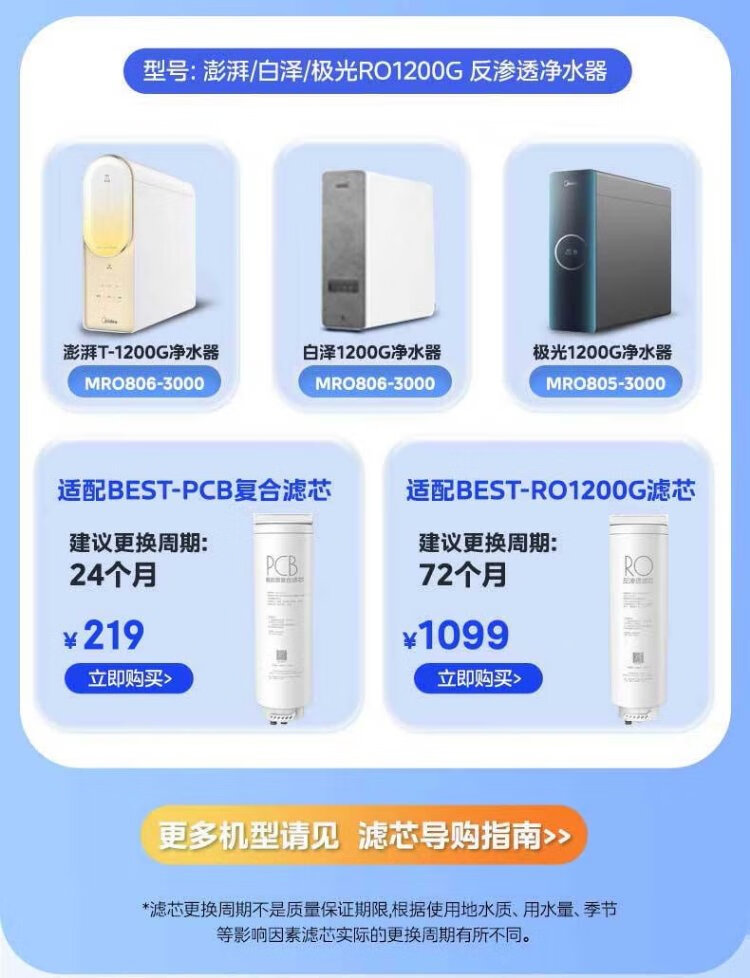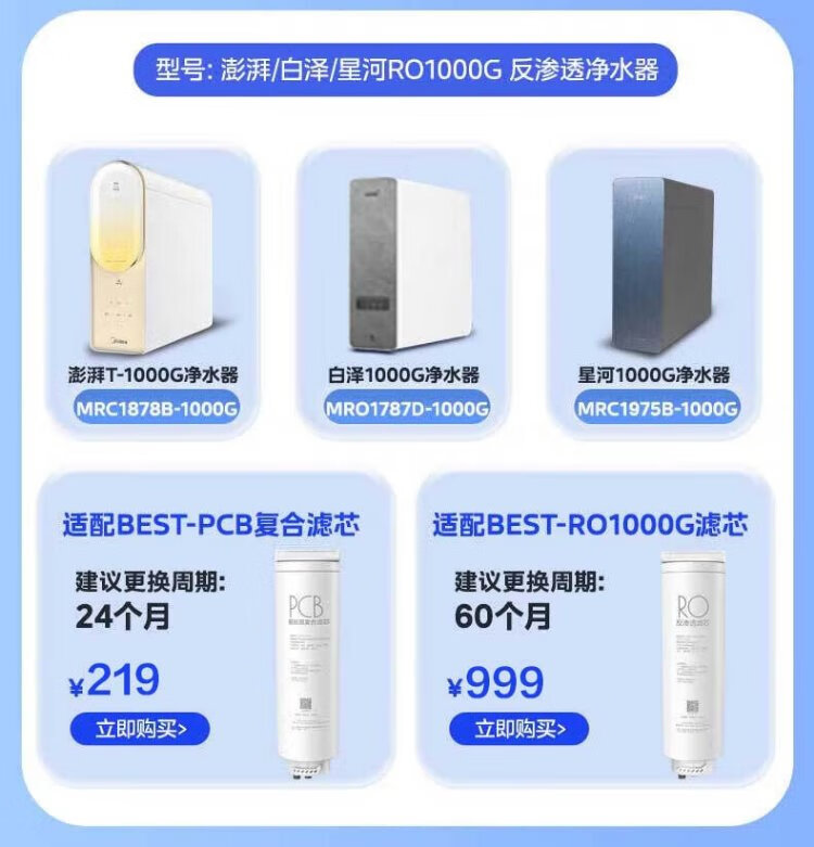 Midea water purifier filter element MRC1975B-1000G (Galaxy 1000g) MRC805C-3000 (1200) MRC1878B/A-1000G (Surge 1000 and Pro) - 2 years PCB-Galaxy Series