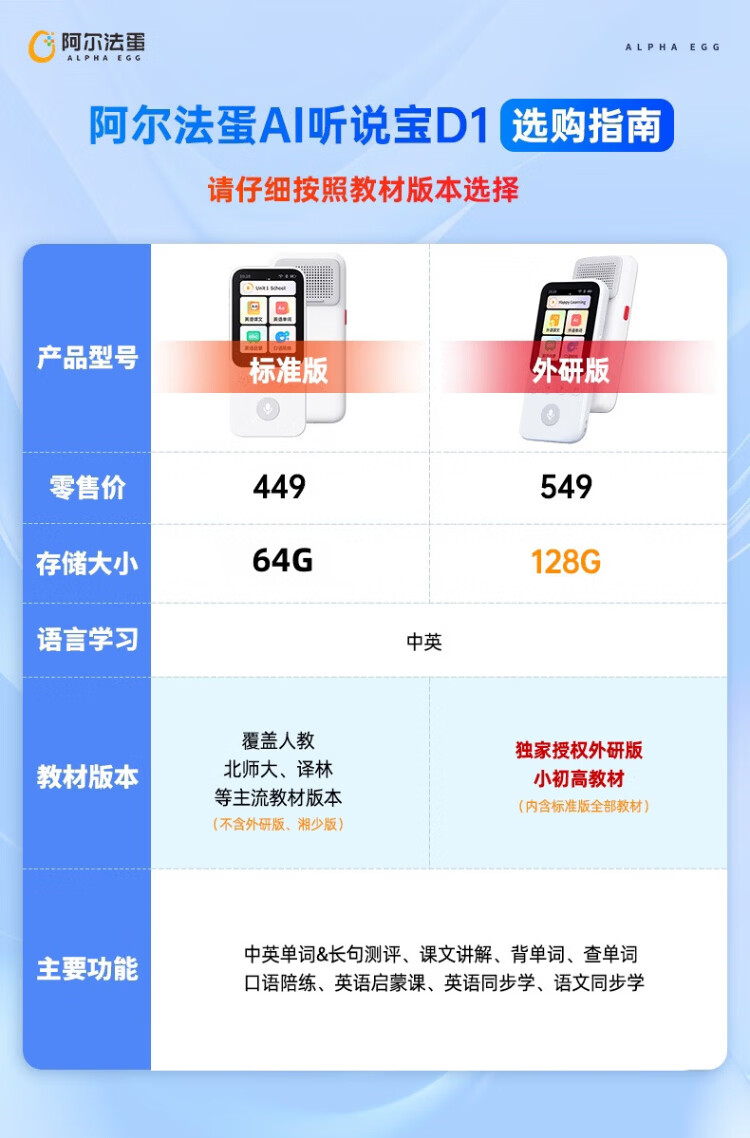 Alpha Egg Hearing Treasure D1 Hearing Treasure AI Bilingual English Listening Walkman Foreign Language Edition Intelligent Listening Repeat Learning Machine English Artifact English Listening Treasure English Walkman Hearing and Listening Treasure D1 Standard Edition 64G+ Wired Headphones