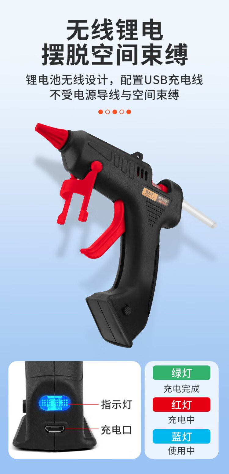 Deer Fairy Wireless Lithium Electric Hot Melt Glue Gun Children's Handmade Rechargeable Small Hot Melt Gun High-Tack Strong Glue Stick Wireless Lithium Electric Hot Melt Glue Gun + 2 Glue Sticks