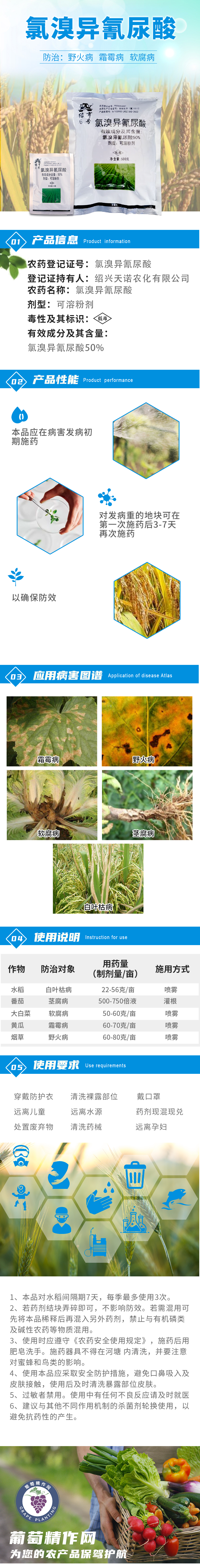 Lvheng No. 6 50% chlorobromoisocyanuric acid wildfire soft rot downy mildew bacterial blight fungicide pesticide 20g