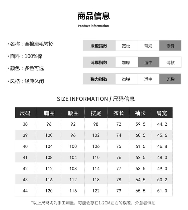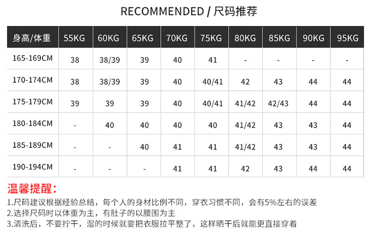 China (cm) 165 / 88-90 170 / 96-98 175 / 108-110 180 / 118-122 185 / 126-130