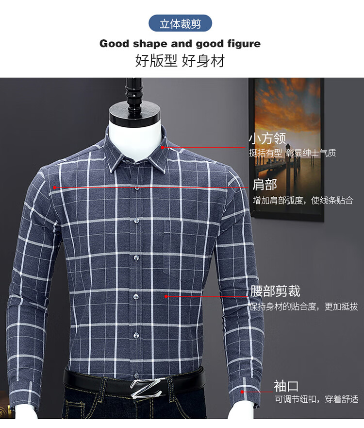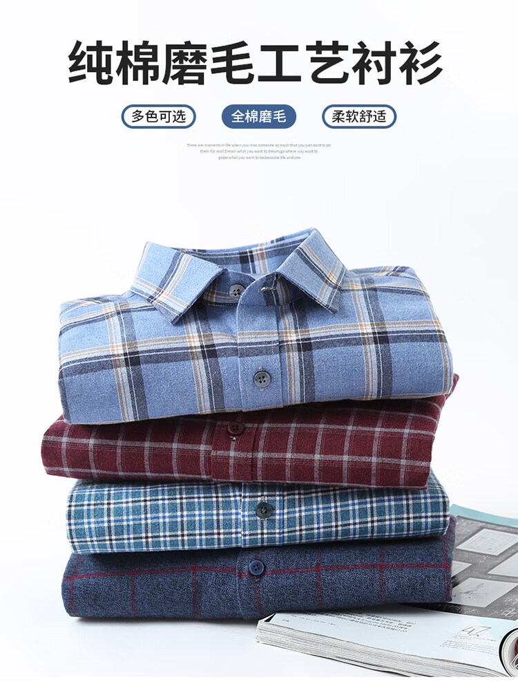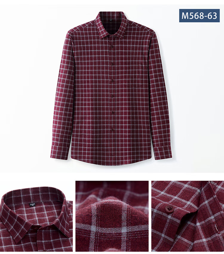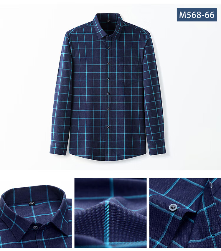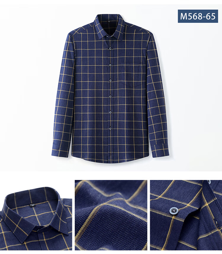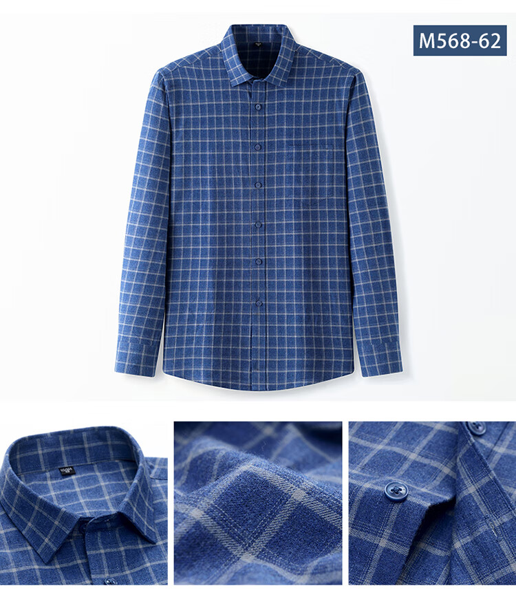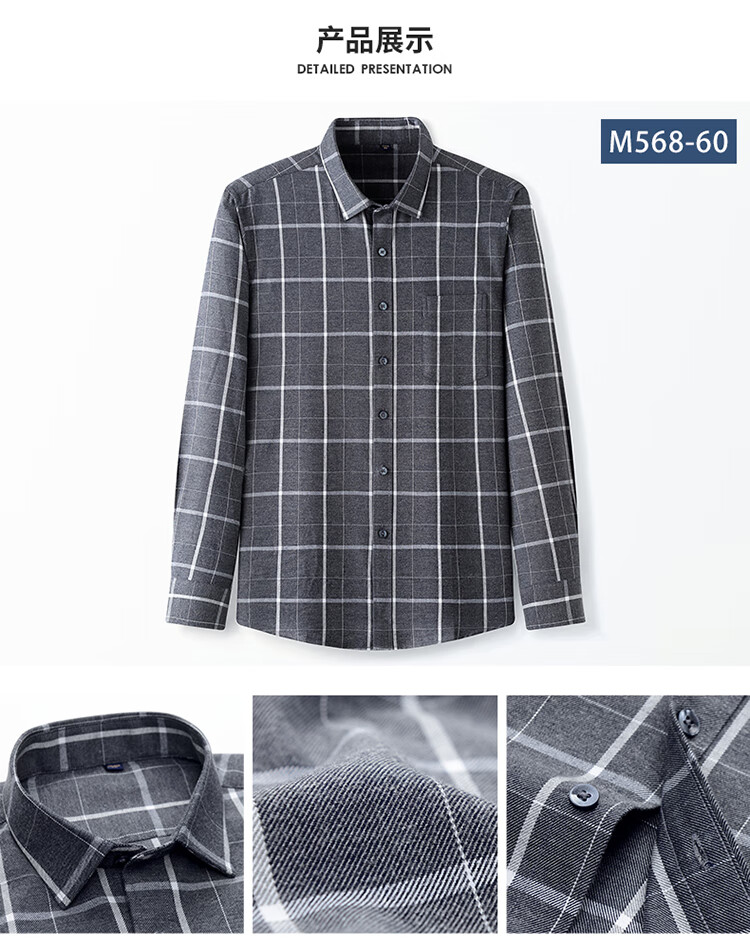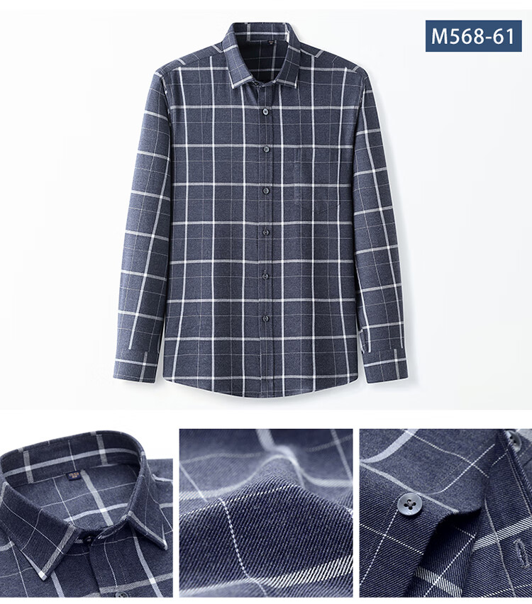 Hengyuanxiang 100% cotton men's brushed plaid shirt spring and autumn young and middle-aged business casual cotton long-sleeved shirt men's fashion M568-3 green gray plaid 38 100-115Jin Jin equals 0.5 kg