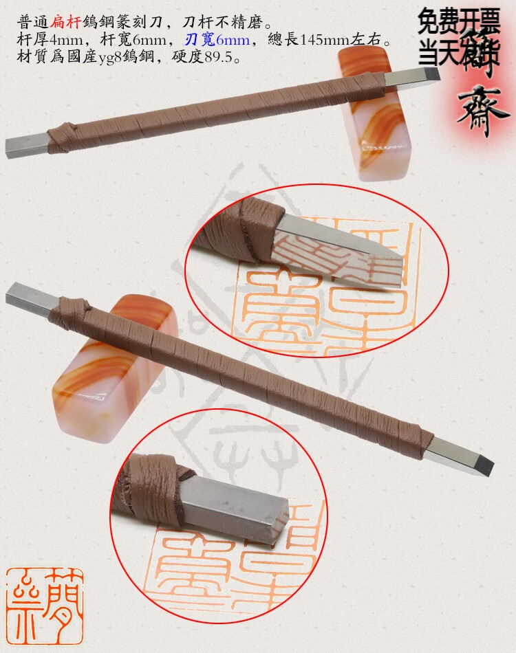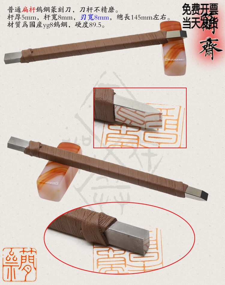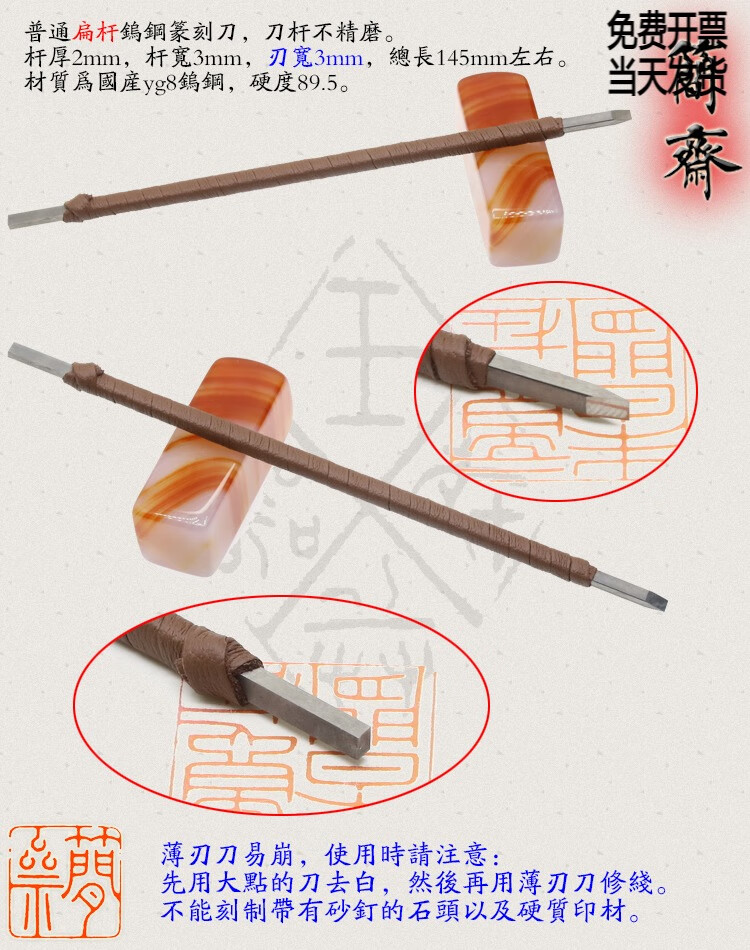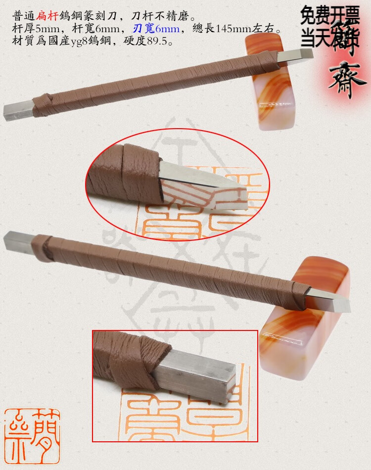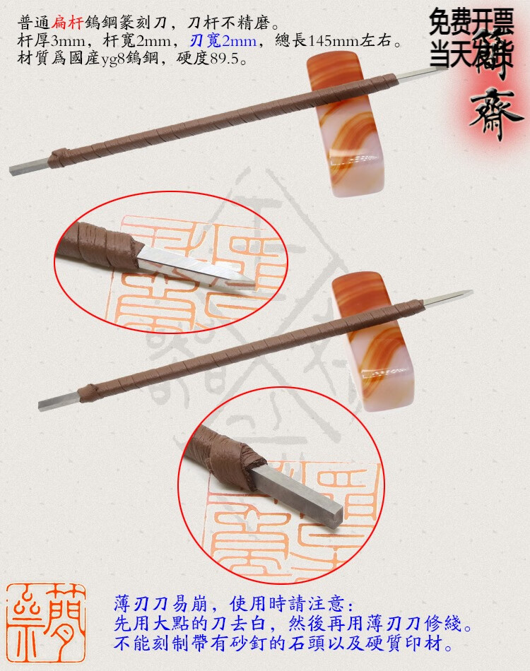 Jianzhai seal carving knife, domestic yg8 tungsten steel, ordinary flat rod, blade width 3 4 5 6 8 10 12mm, 2x3mm flat rod, 3mm blade width