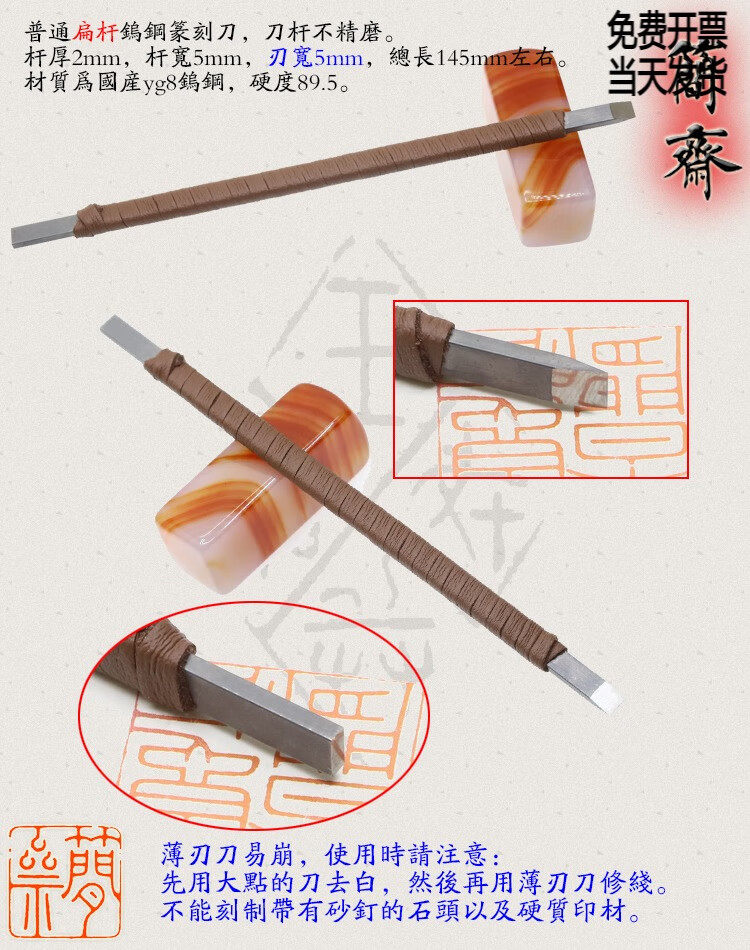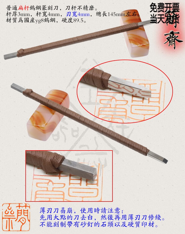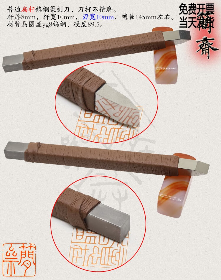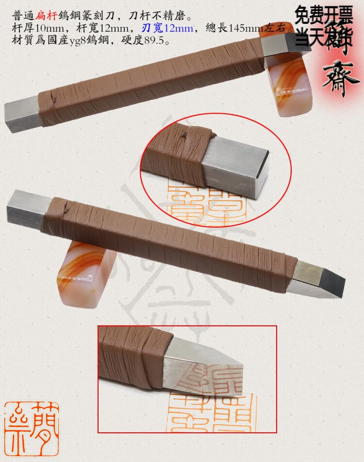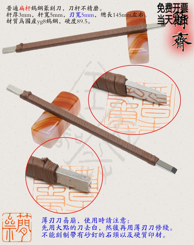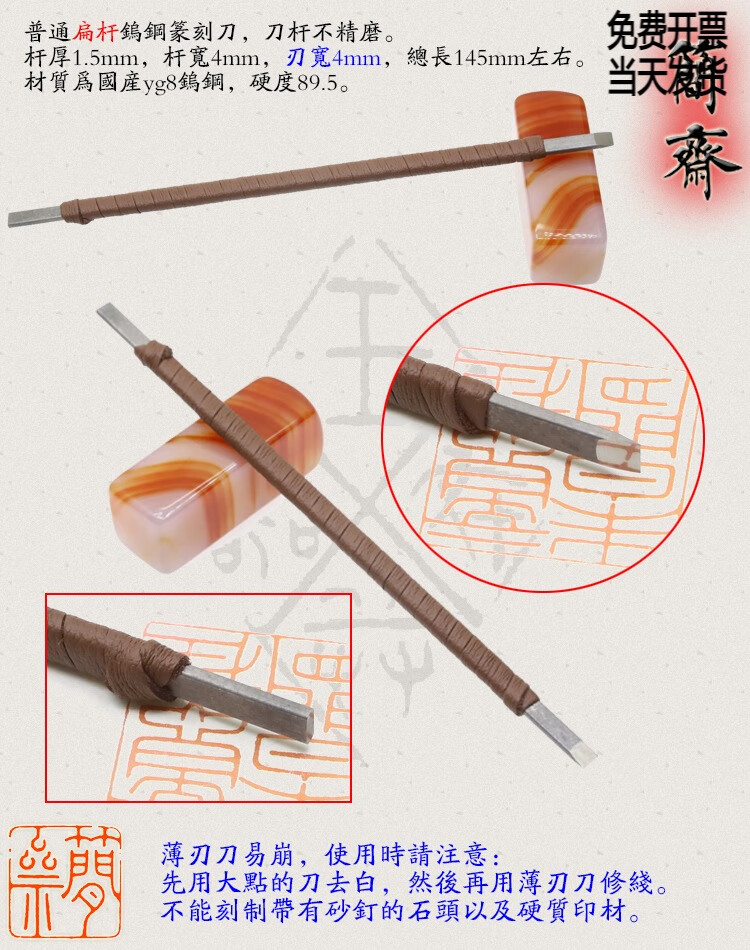 Jianzhai seal carving knife, domestic yg8 tungsten steel, ordinary flat rod, blade width 3 4 5 6 8 10 12mm, 2x3mm flat rod, 3mm blade width