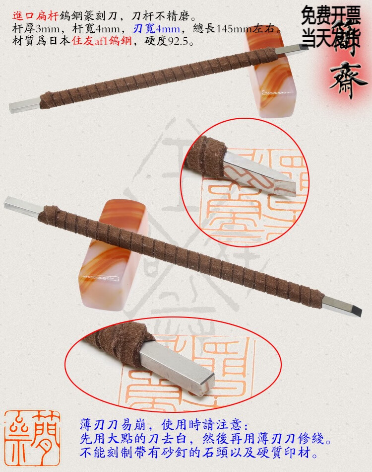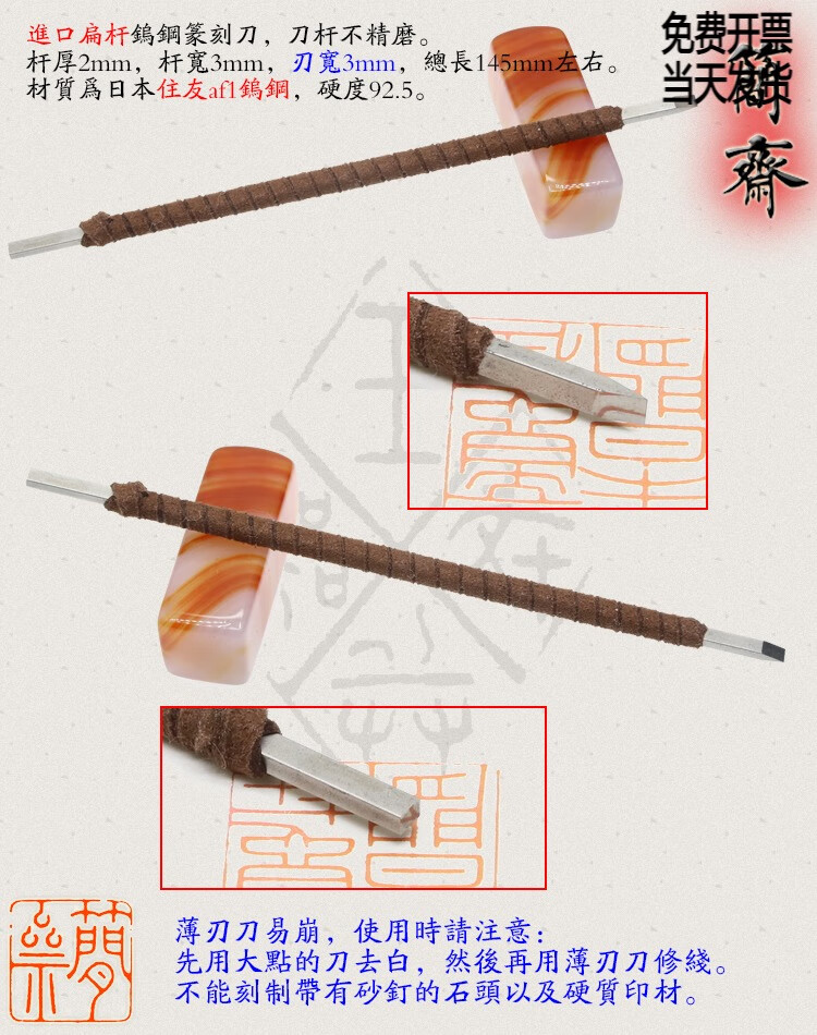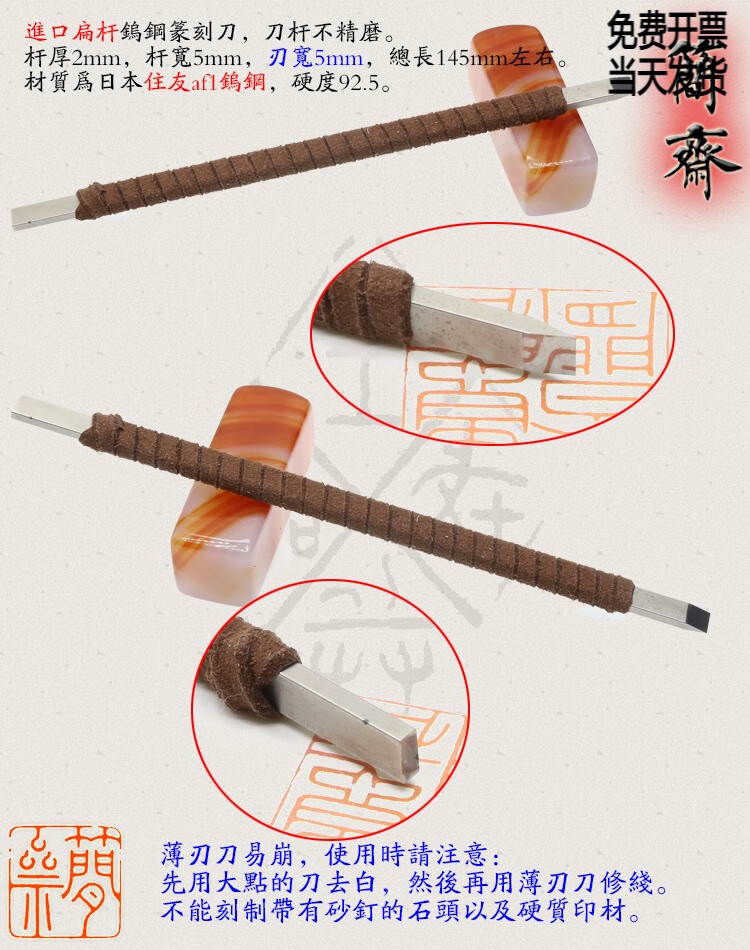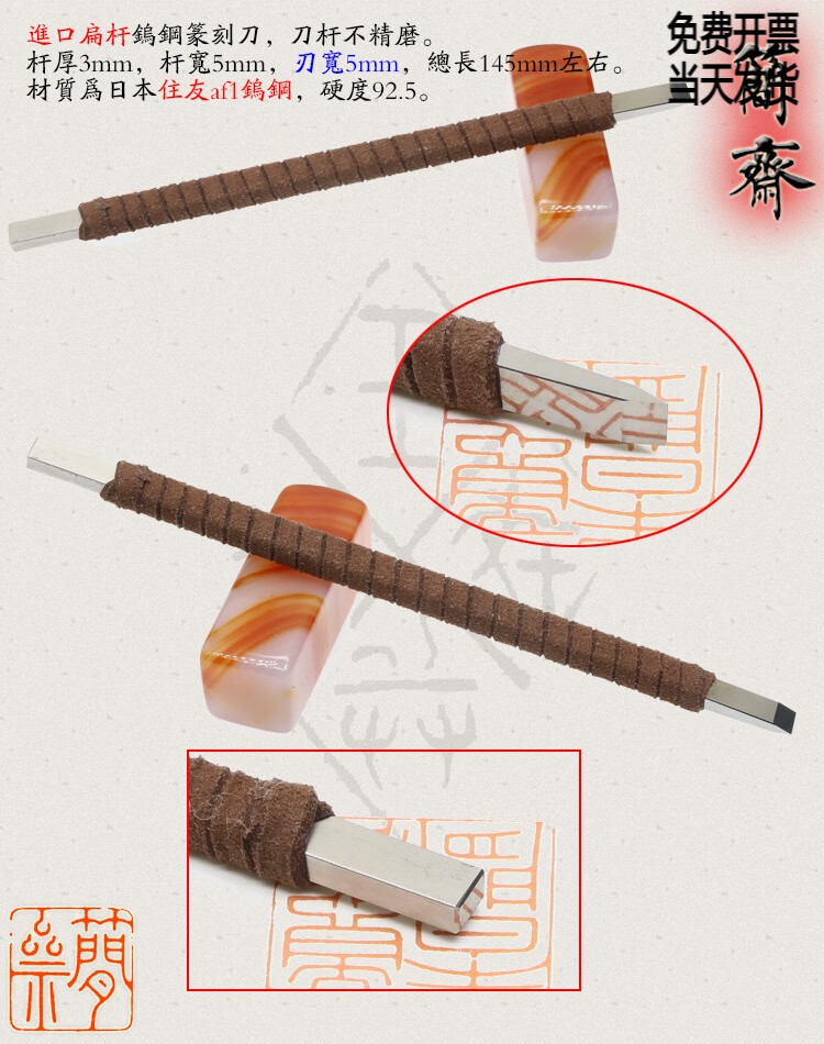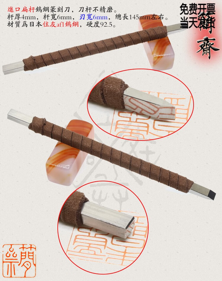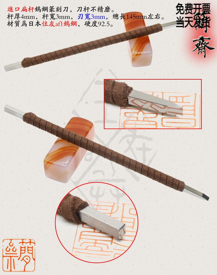 OLOEY Jianzhai imported tungsten steel flat rod 2 3 4 5 6 8mm blade width seal carving knife hand-ground carbide 3x2mm flat knife 2mm blade width