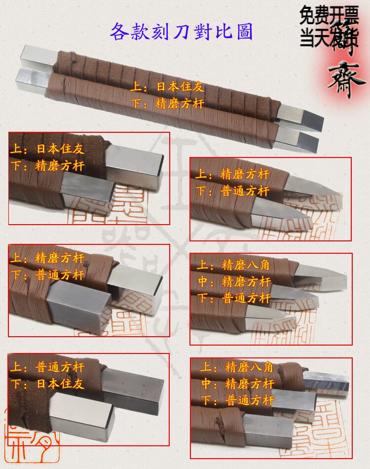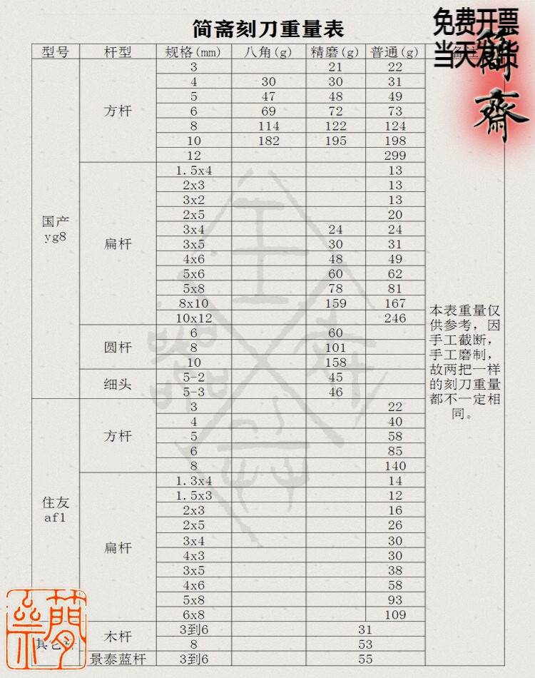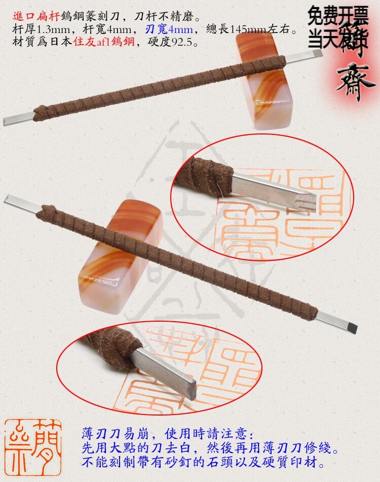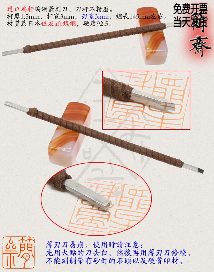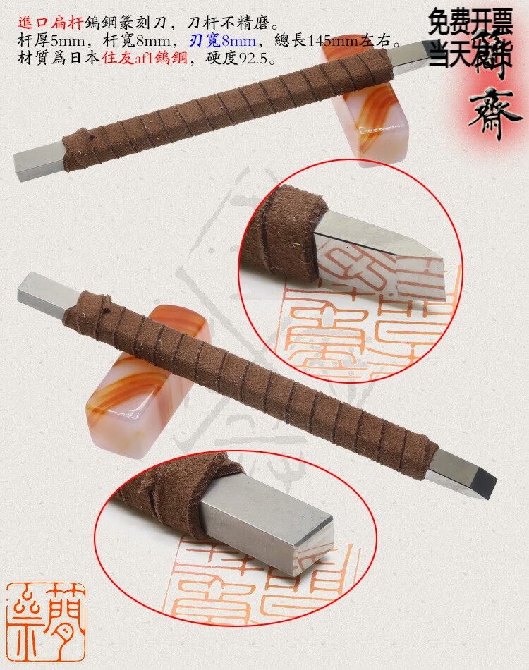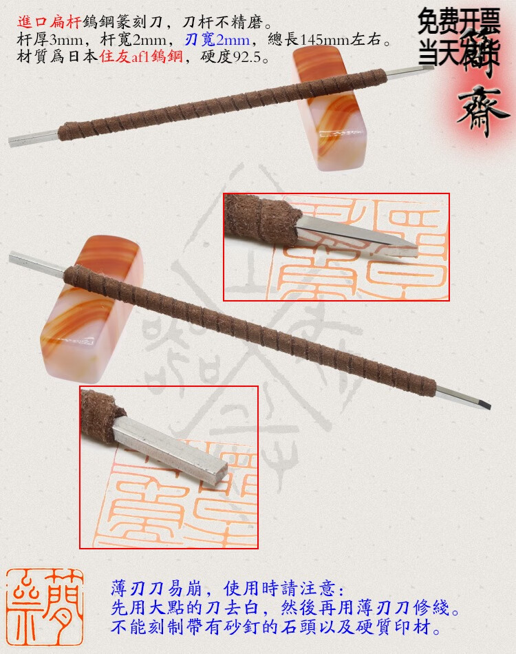 OLOEY Jianzhai imported tungsten steel flat rod 2 3 4 5 6 8mm blade width seal carving knife hand-ground carbide 3x2mm flat knife 2mm blade width