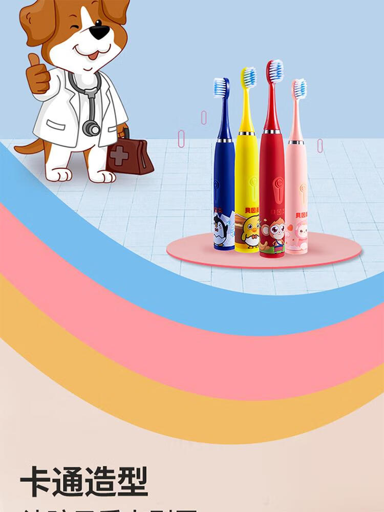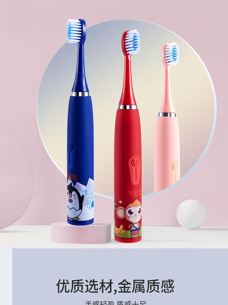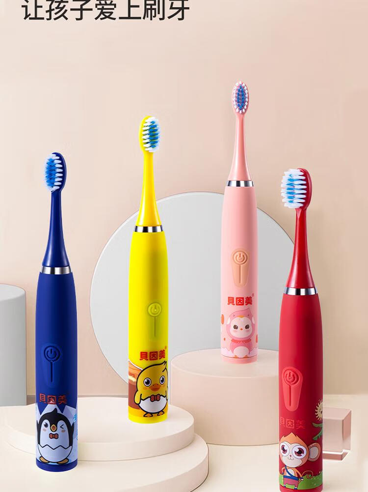 Children's electric toothbrush 3-15 years old sonic vibration cartoon electric toothbrush smart waterproof rechargeable t little penguin (brush head * 4 + USB charging cable * 1)