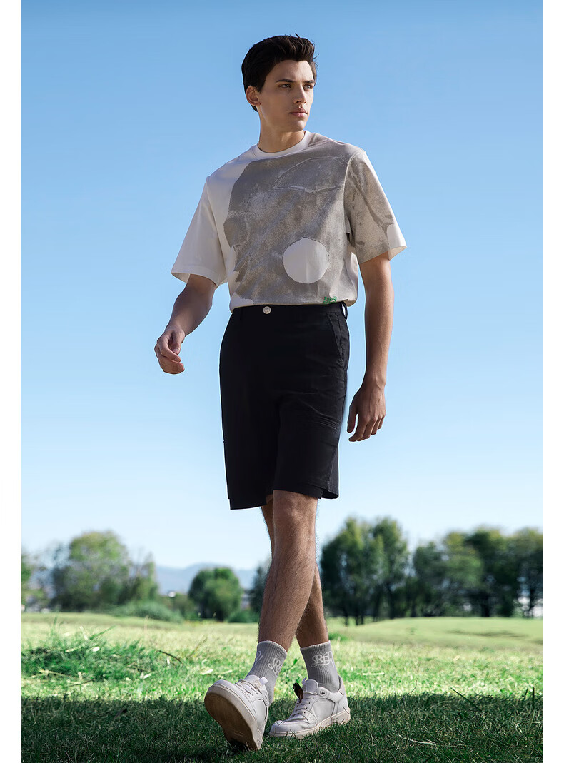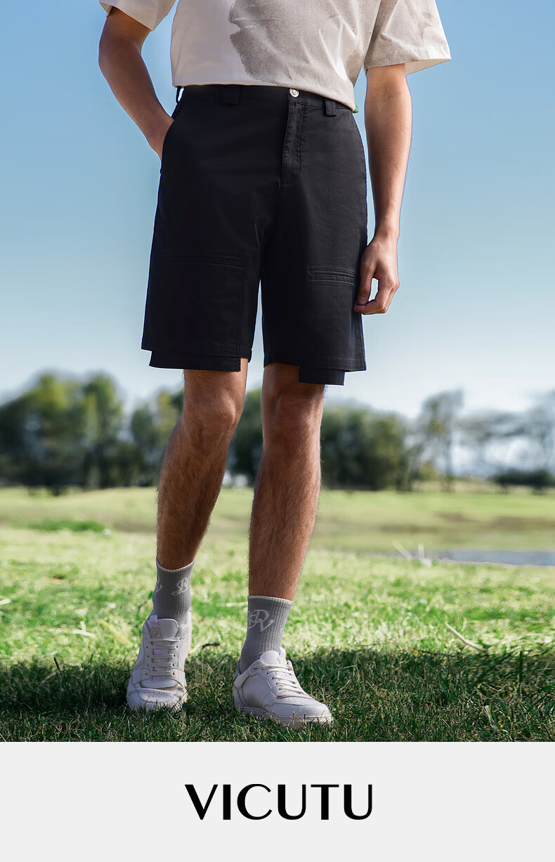 VICUTU men's shorts, summer style, cool, comfortable, skin-friendly, business casual, versatile five-quarter pants, black and green 31