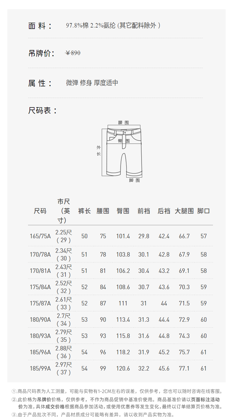 Outseam (cm) 99 cm 101.5 cm 104 cm 106.5 cm 109 cm