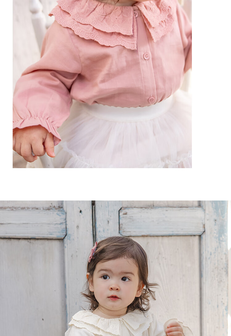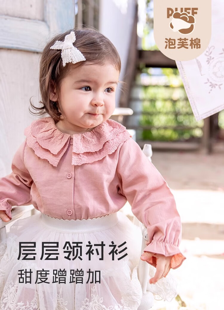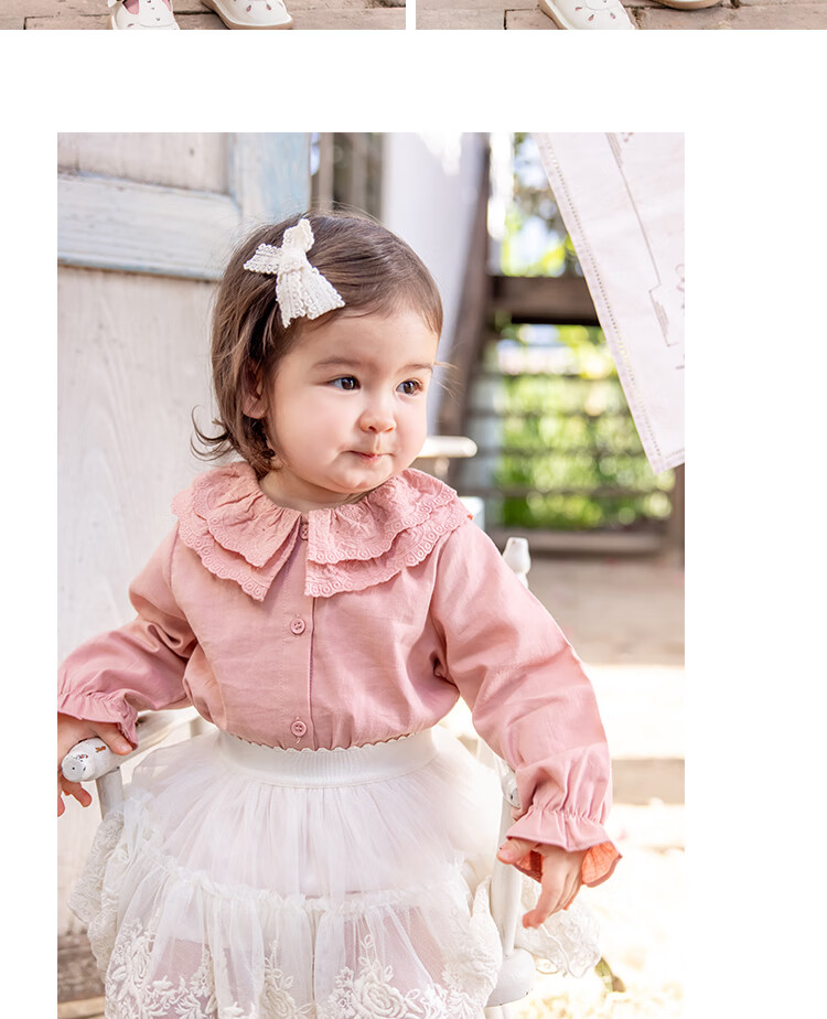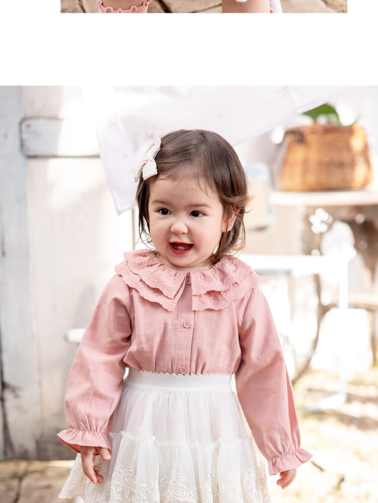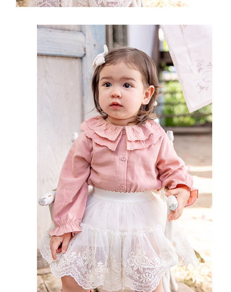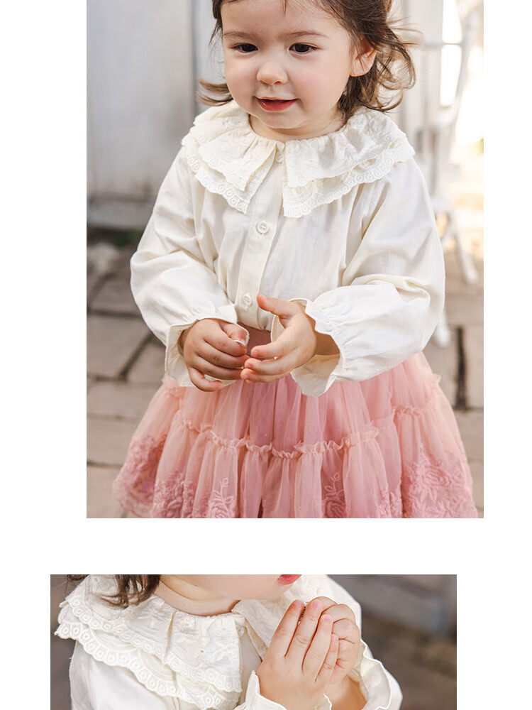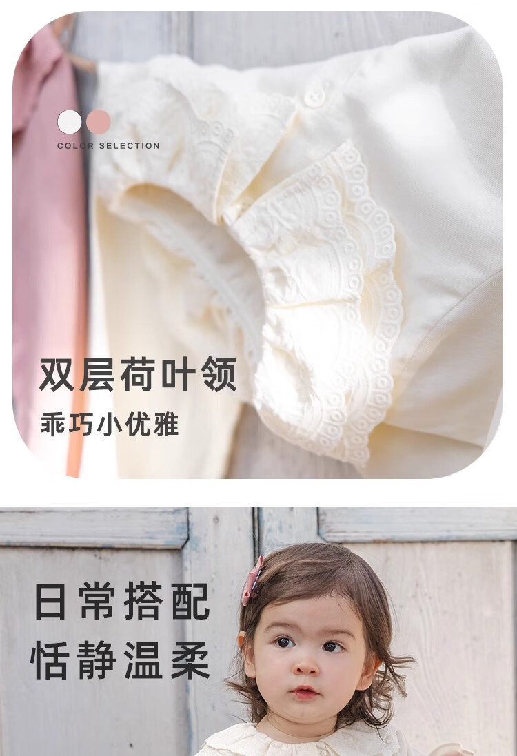 YOUGE Infant 2024 new long-sleeved French sweet shirt spring lapel ruffle top trendy off-white 66 cm