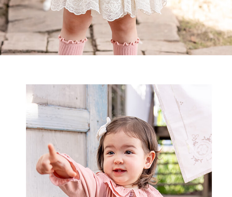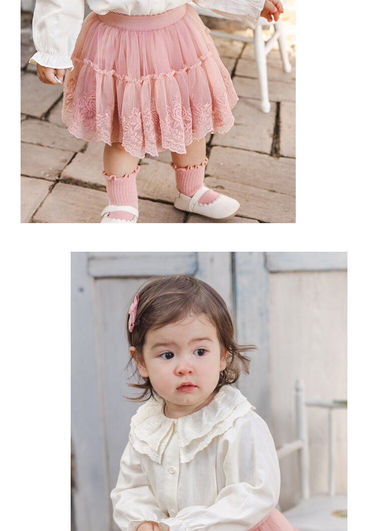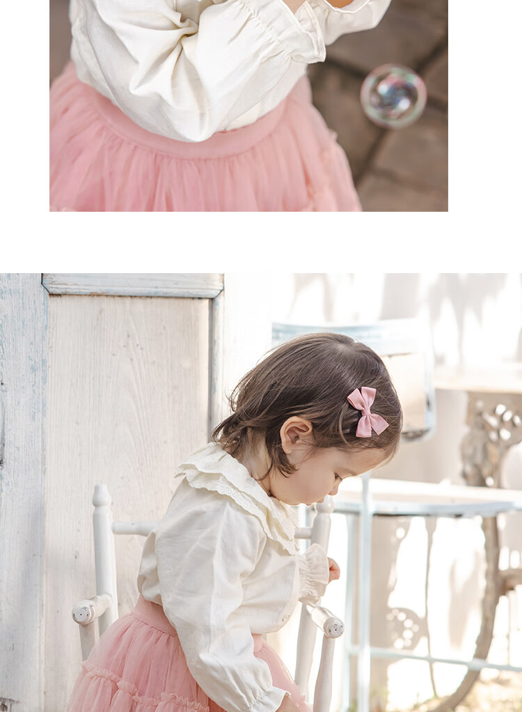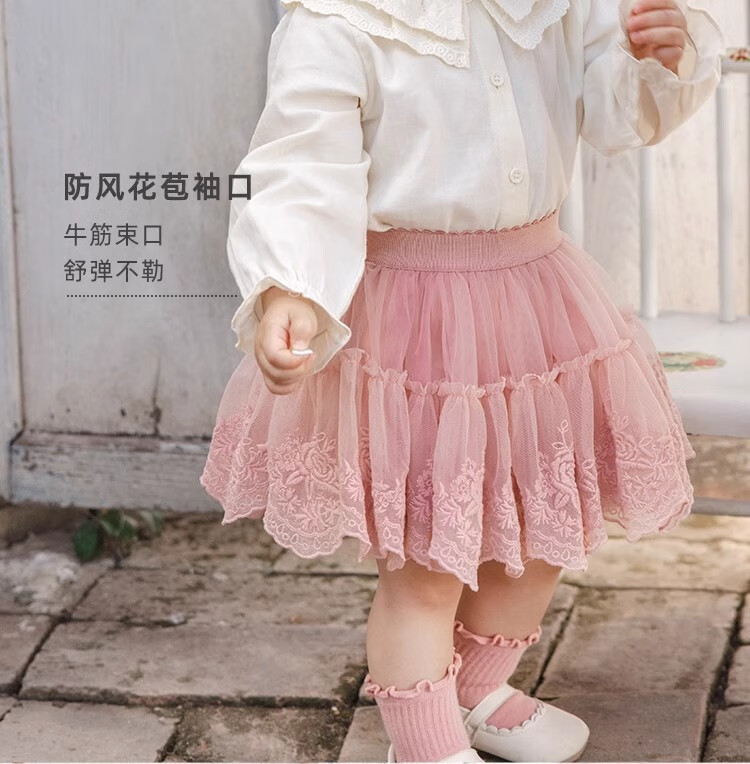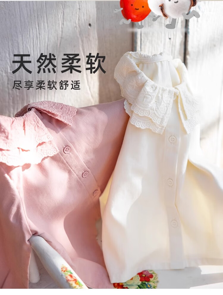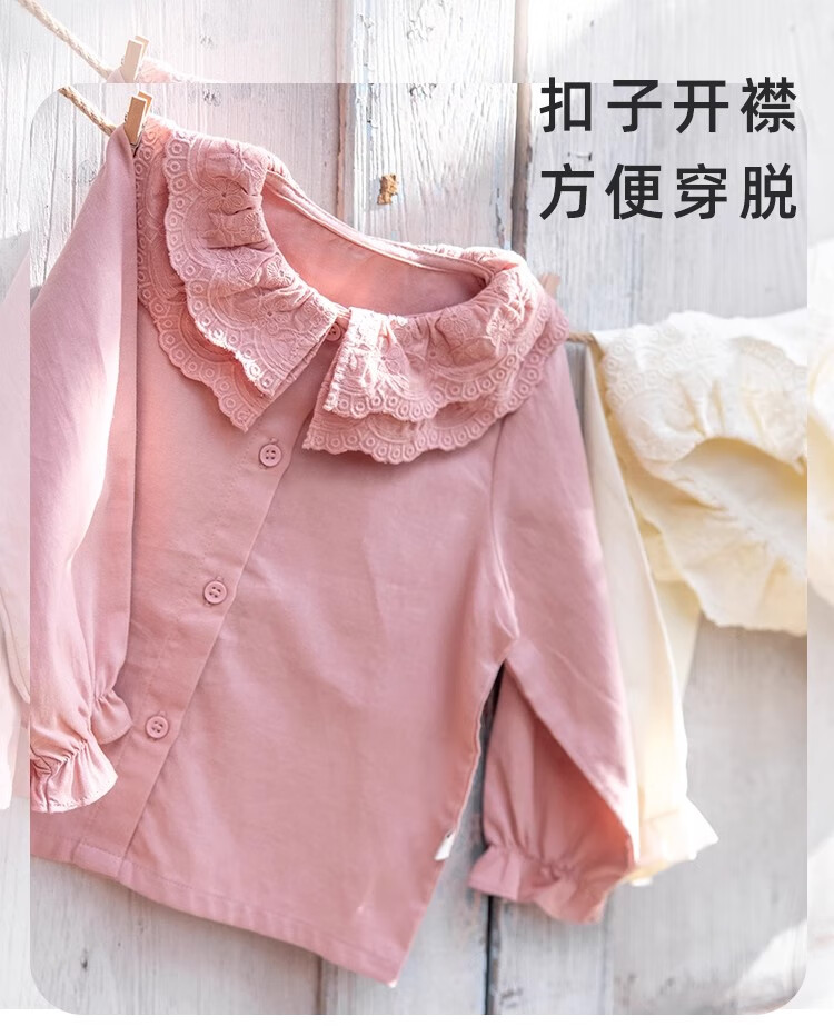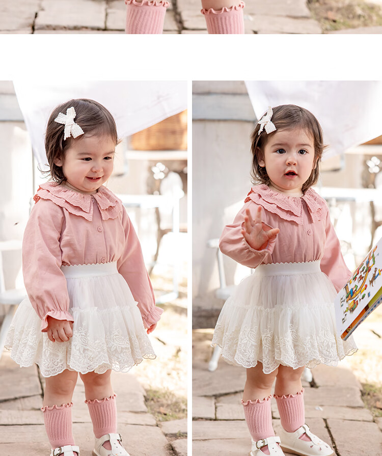 YOUGE Infant 2024 new long-sleeved French sweet shirt spring lapel ruffle top trendy off-white 66 cm