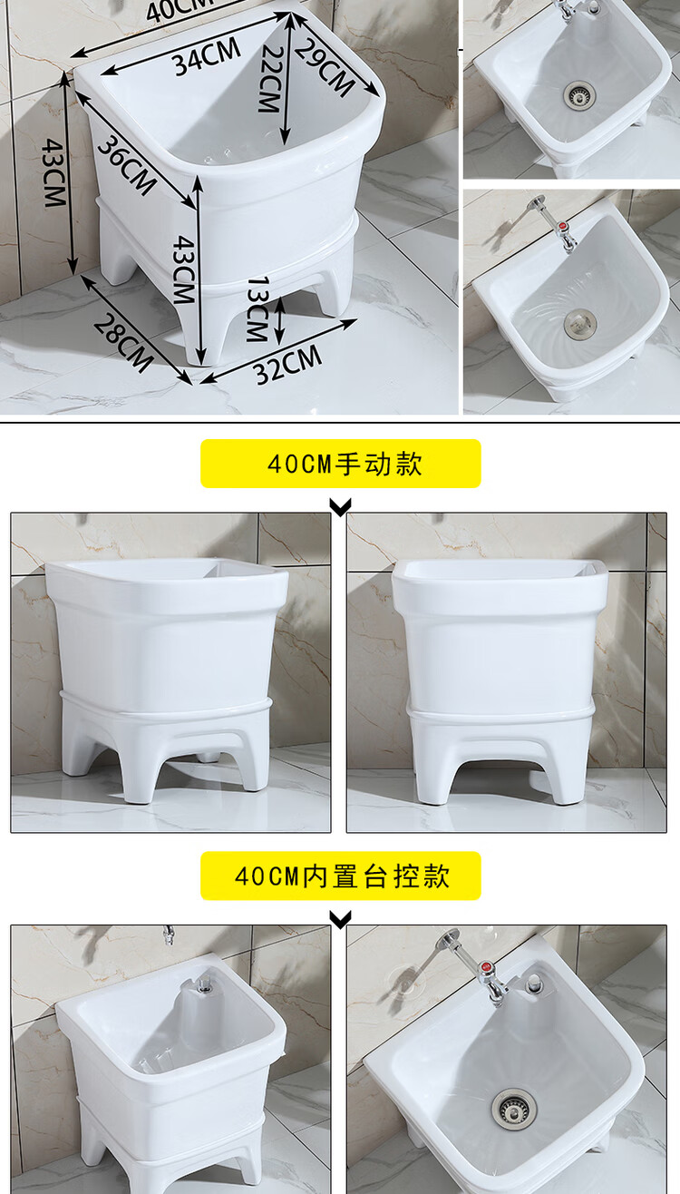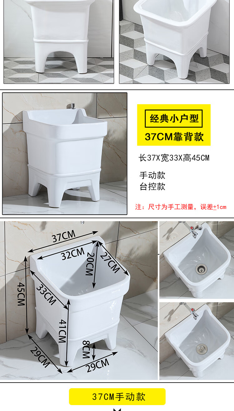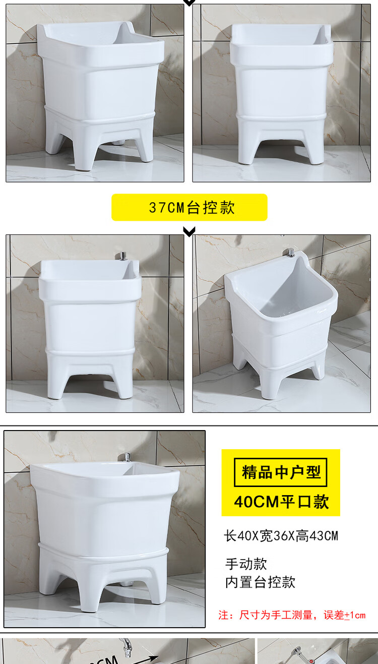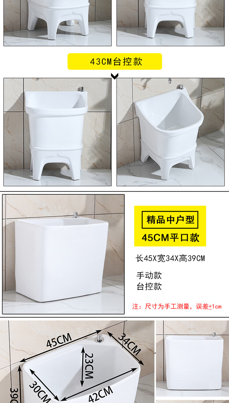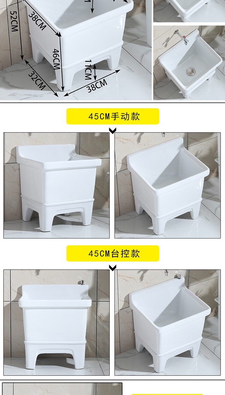 Mop pool ceramic balcony washing mop pool household mop pool bathroom small and large mop basin with high curved faucet 35 cm straight leg type manual drain