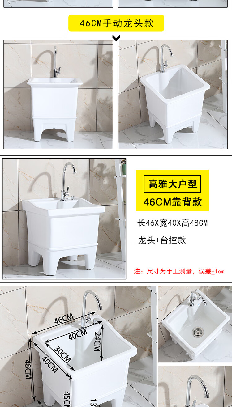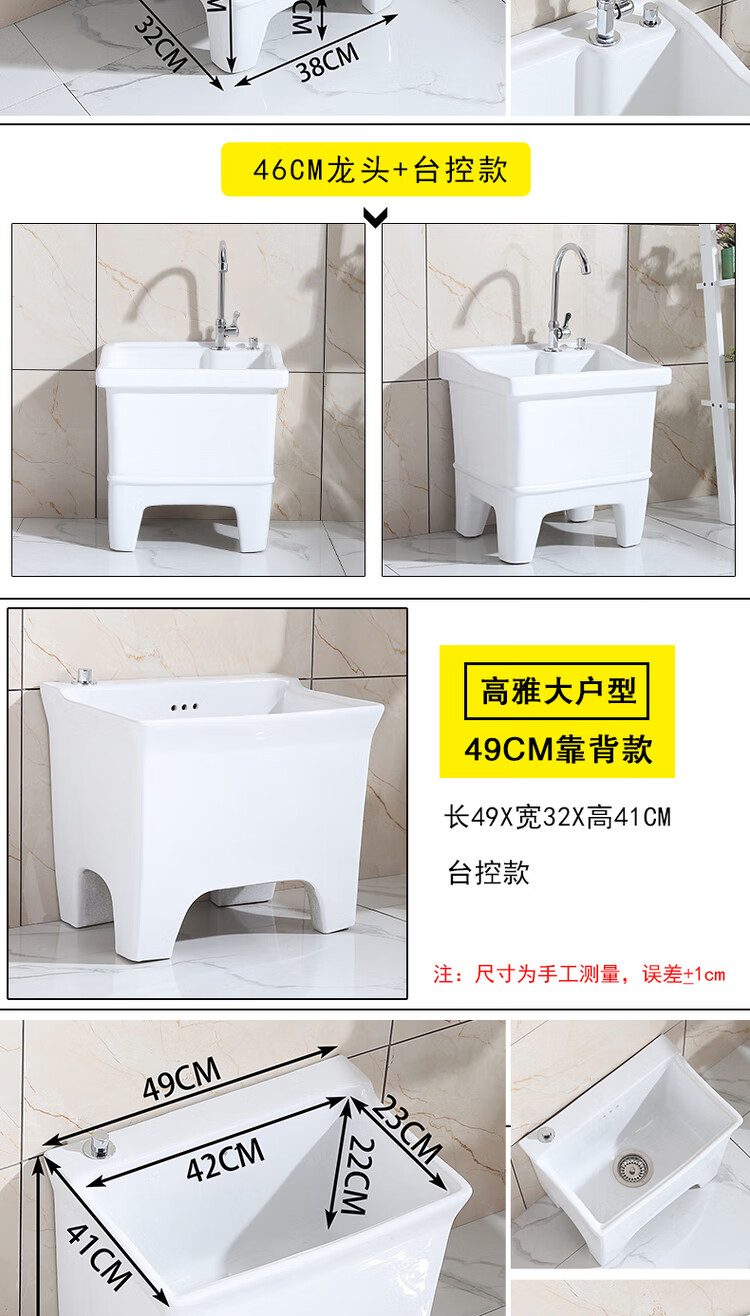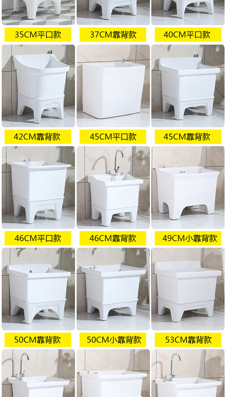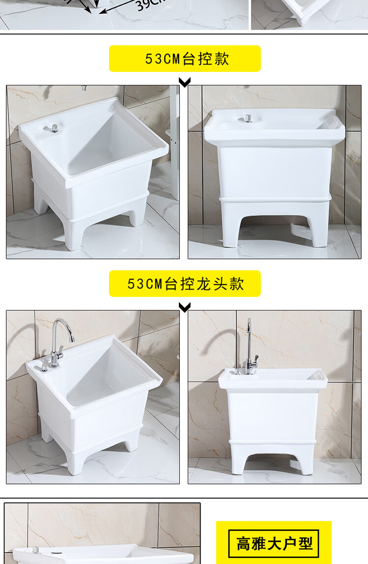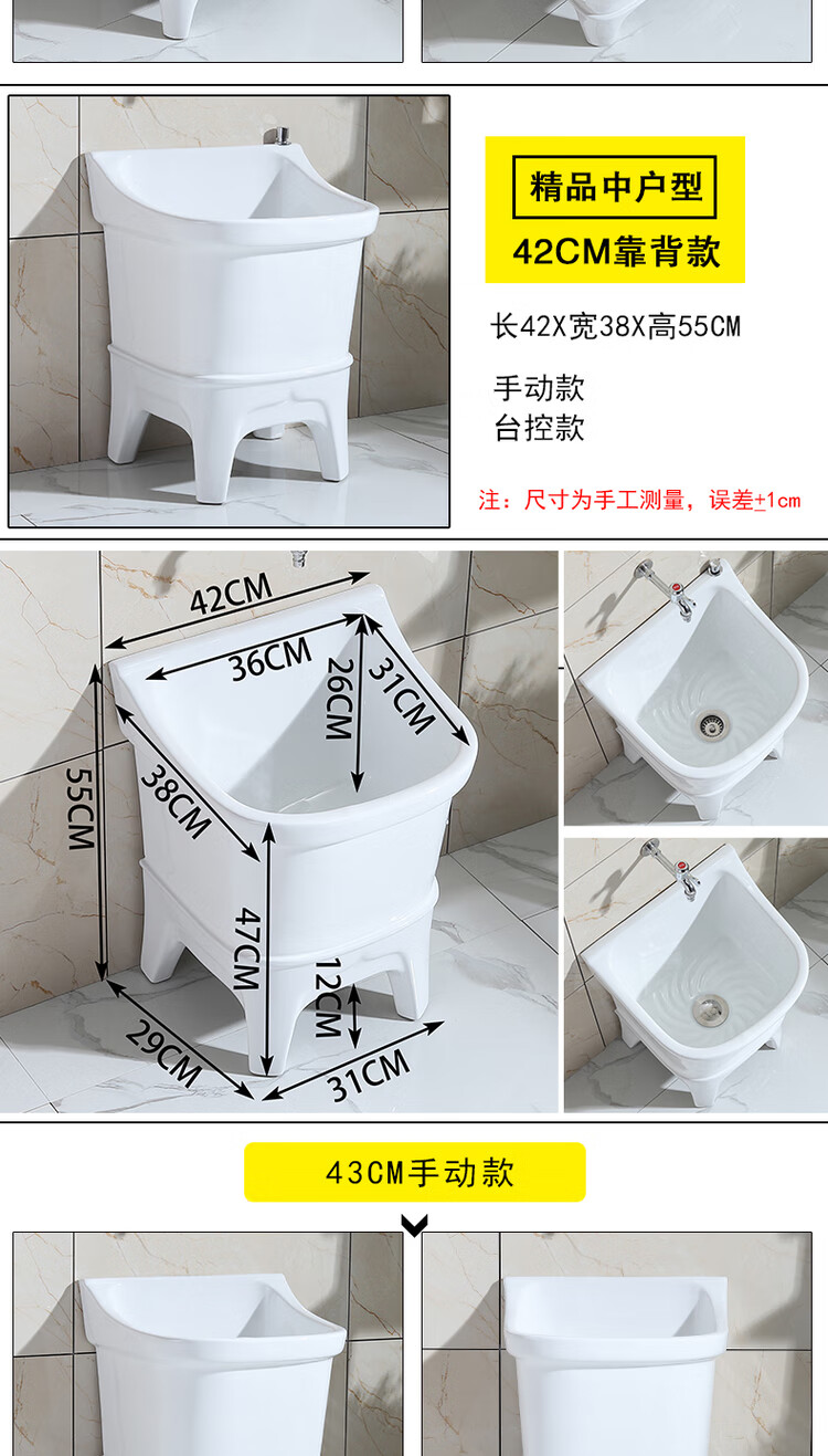 Mop pool ceramic balcony washing mop pool household mop pool bathroom small and large mop basin with high curved faucet 35 cm straight leg type manual drain