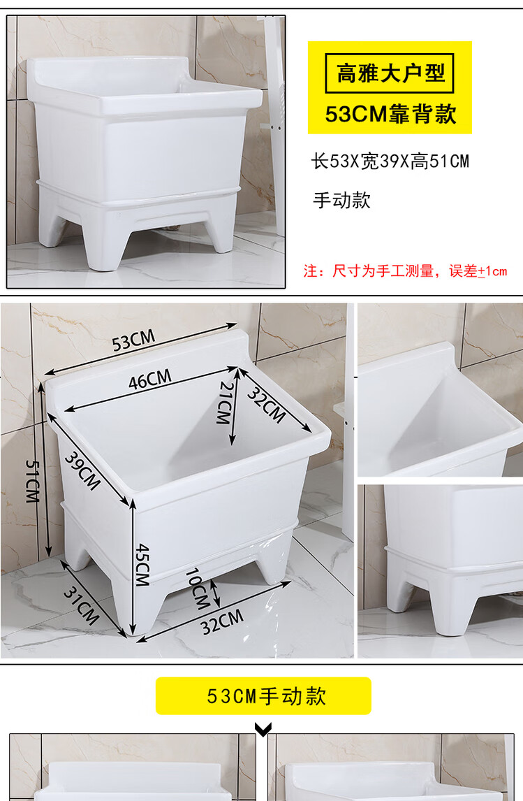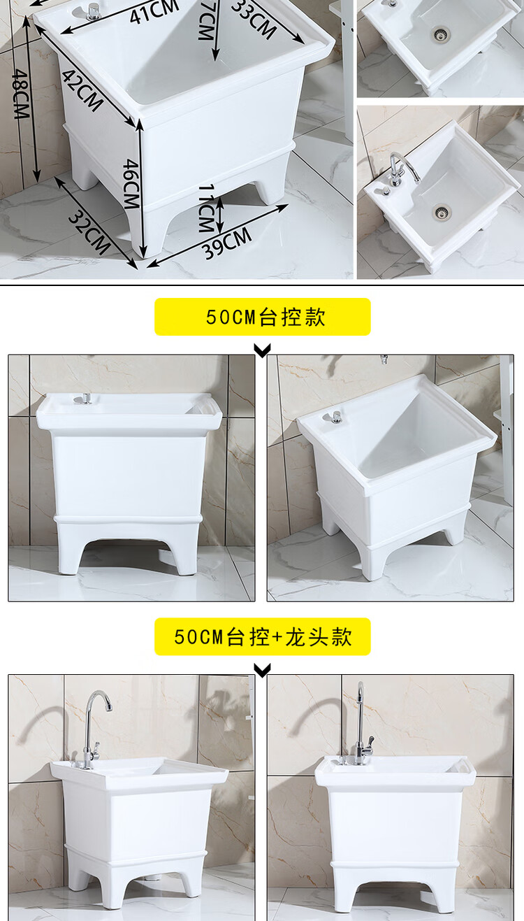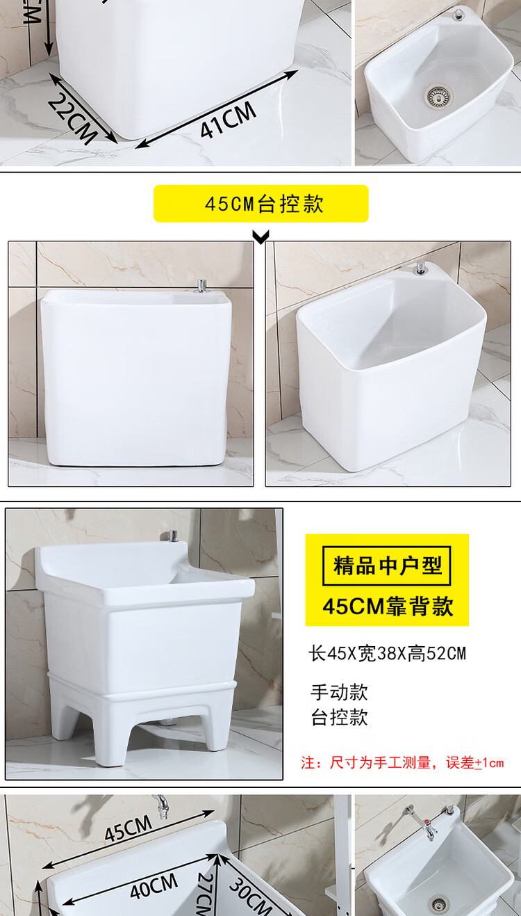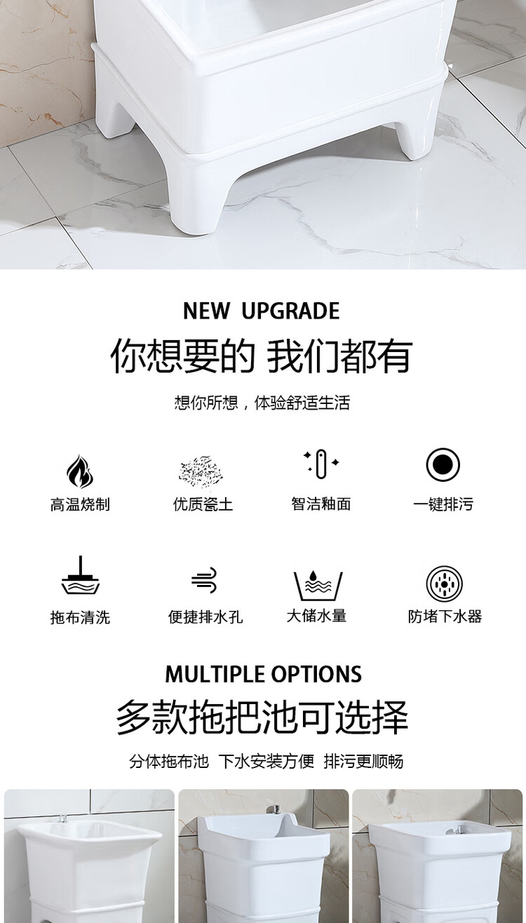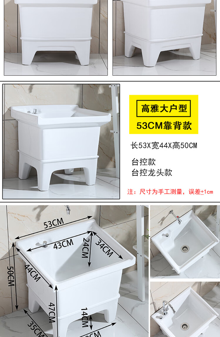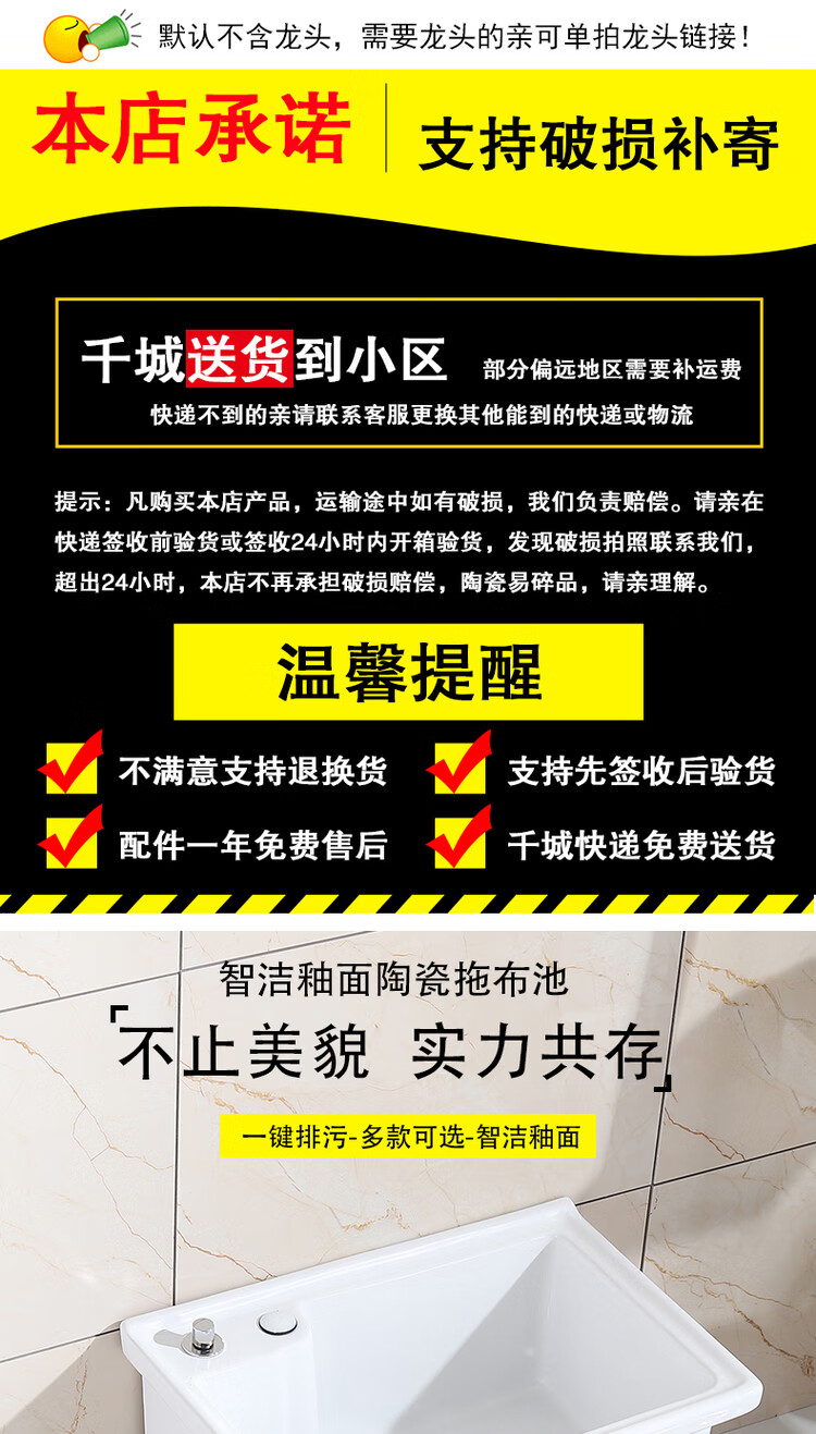 Mop pool ceramic balcony washing mop pool household mop pool bathroom small and large mop basin with high curved faucet 35 cm straight leg type manual drain
