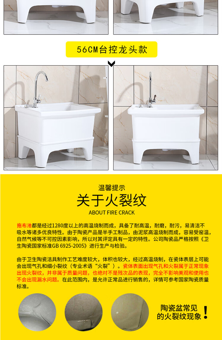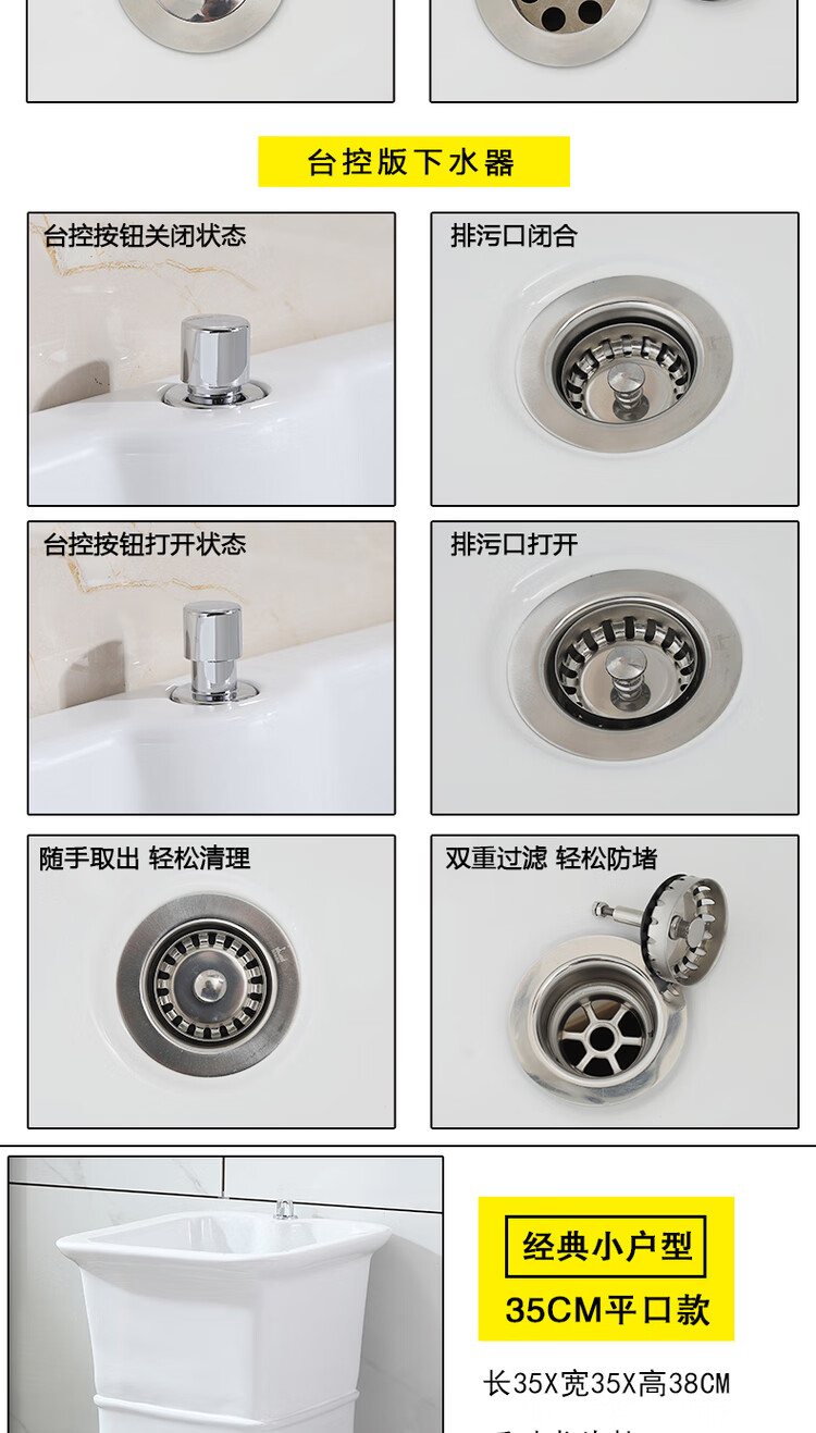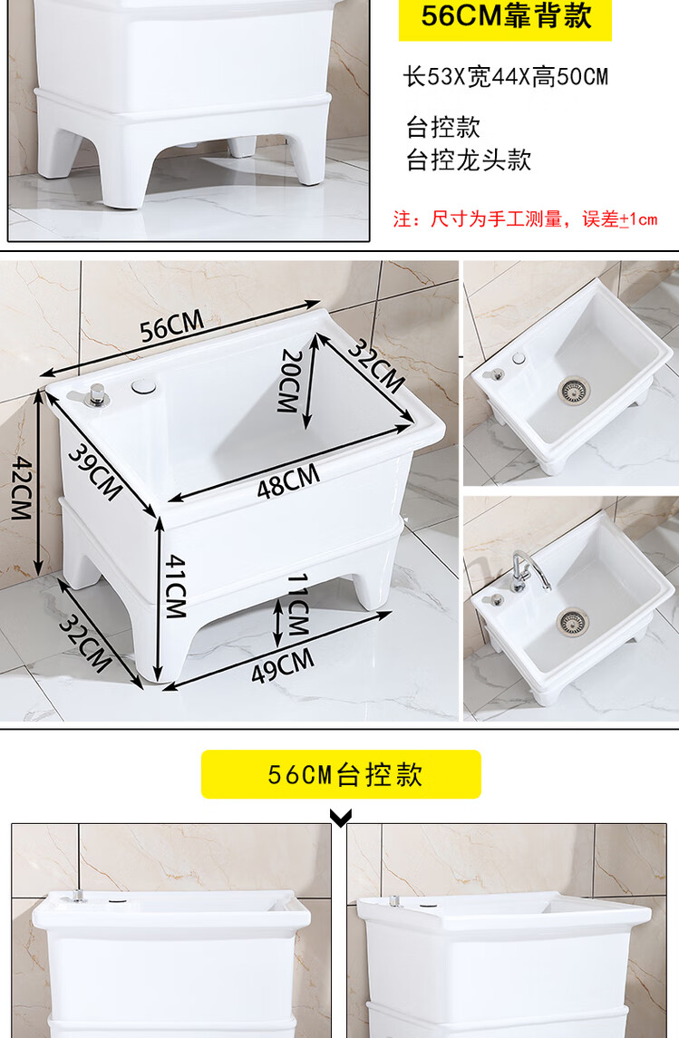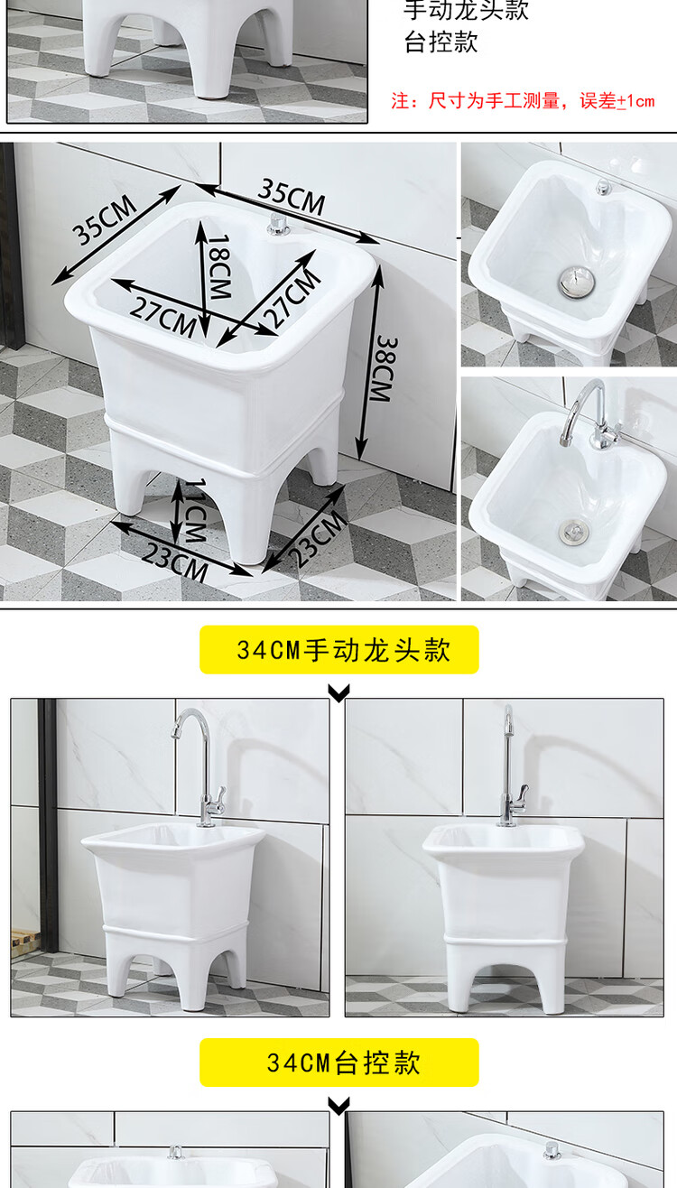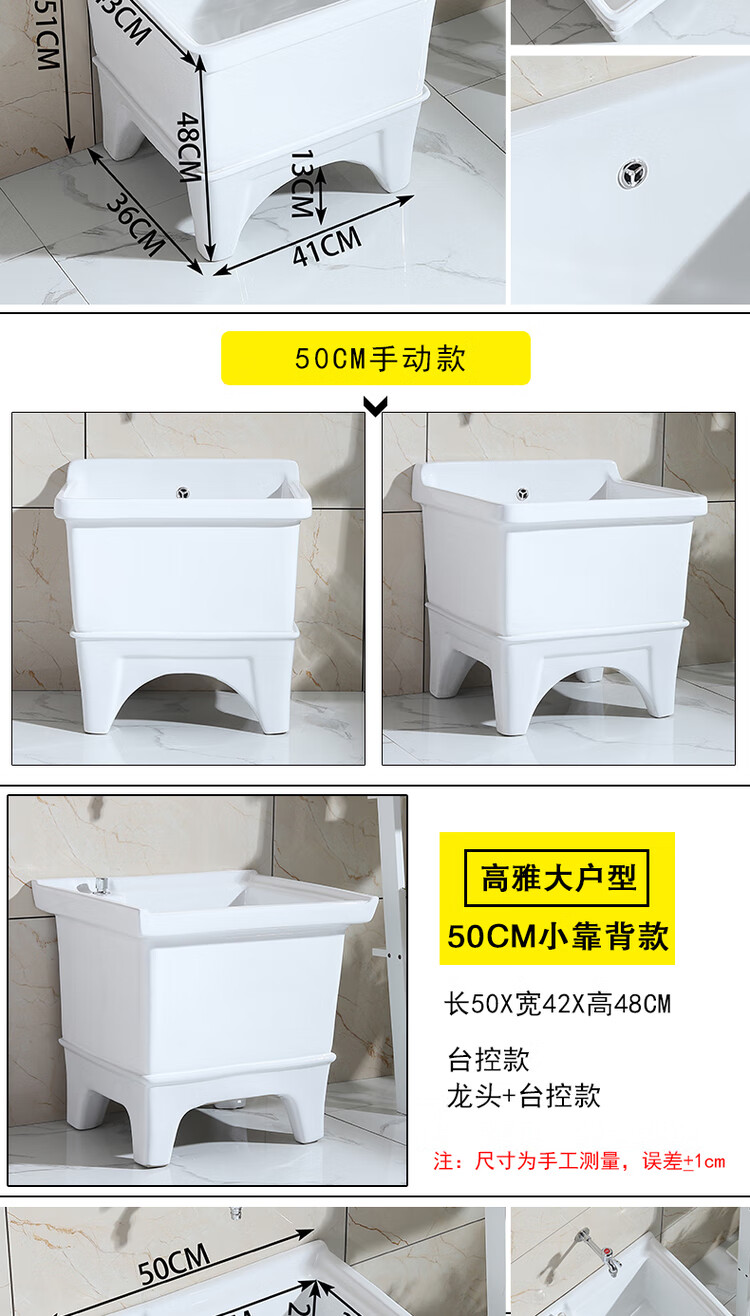 Mop pool ceramic balcony washing mop pool household mop pool bathroom small and large mop basin with high curved faucet 35 cm straight leg type manual drain