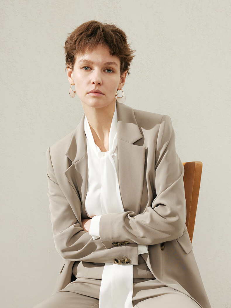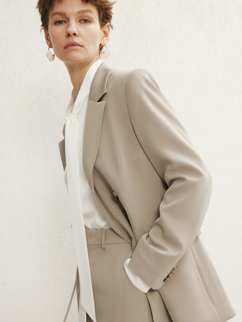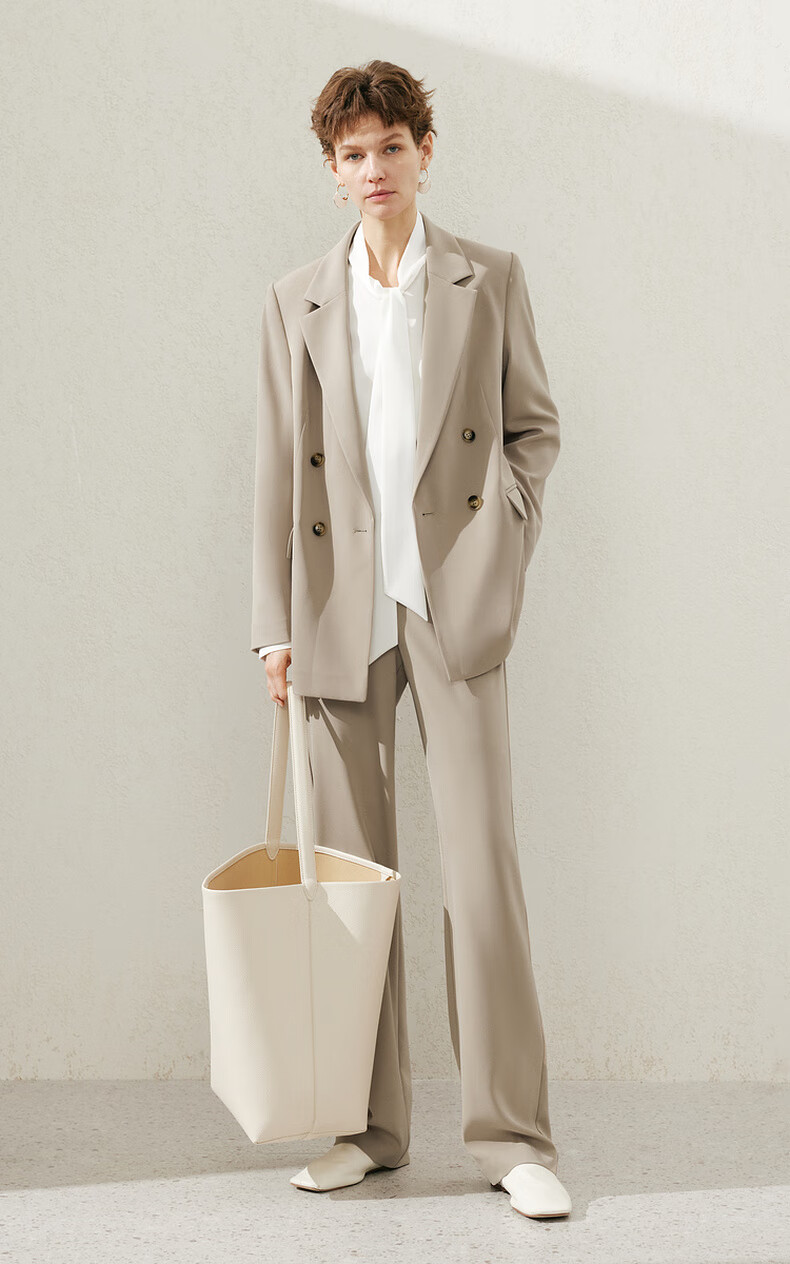 Maimeng MM Maimeng 24 spring and summer shopping mall same style elegant and fashionable double-breasted suit jacket/trousers 5F2111371 beige bottoms 5F2151081 S