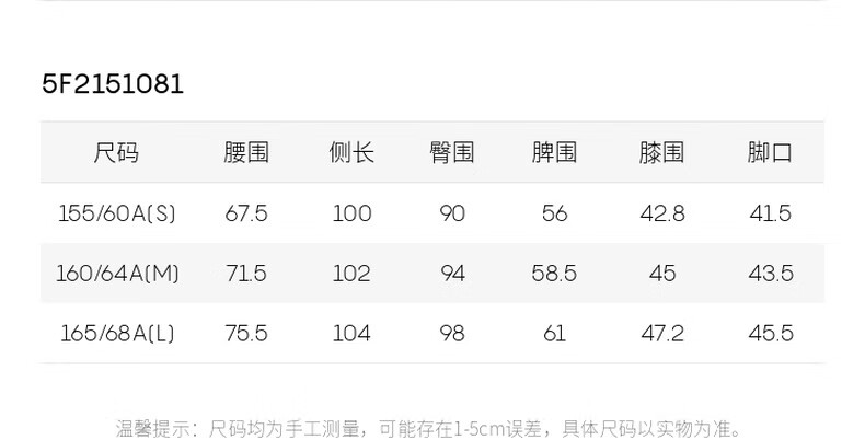 Outseam (cm) 99 cm 101.5 cm 104 cm 106.5 cm 109 cm