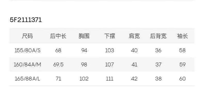 China (cm) 160-165/84-86 165-170 / 88-90 167-172 / 92-96 168-173 / 98-102 170-176 / 106-110