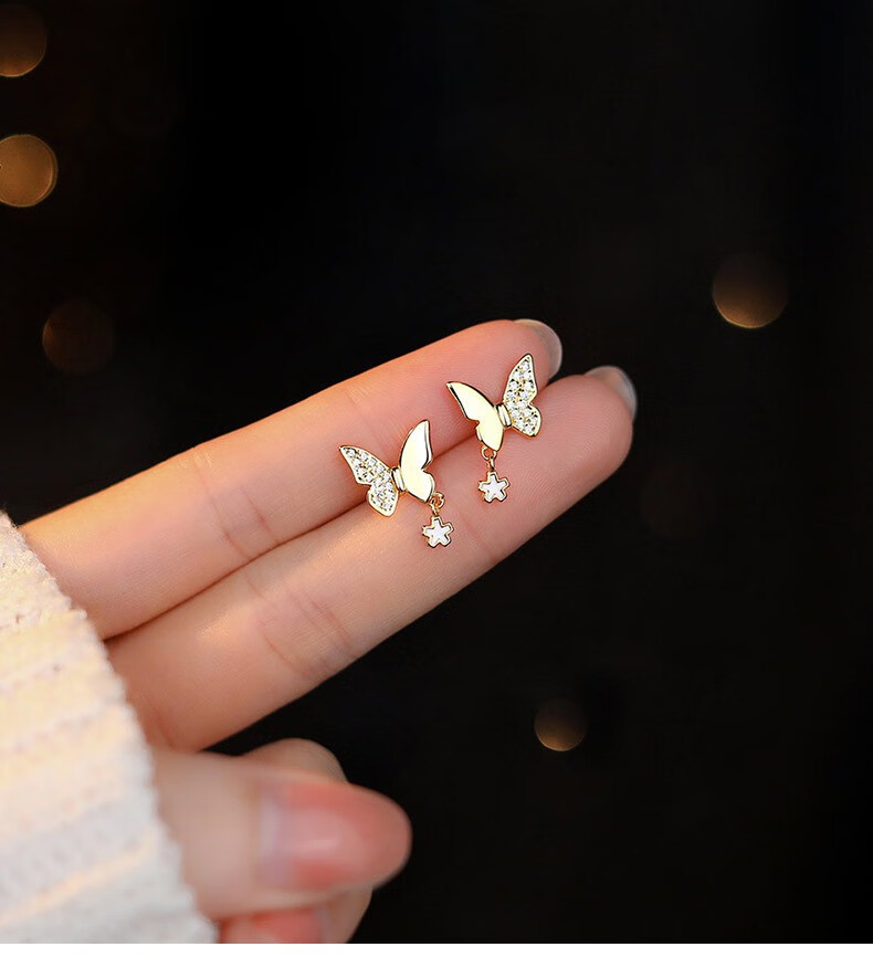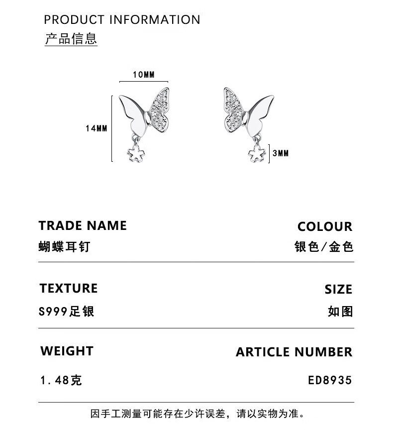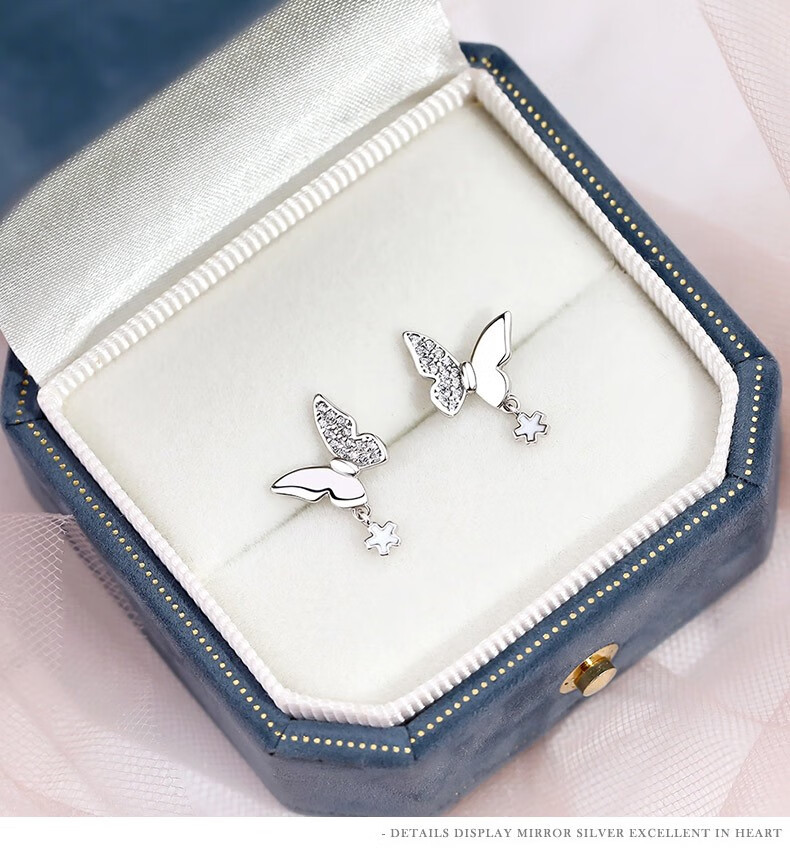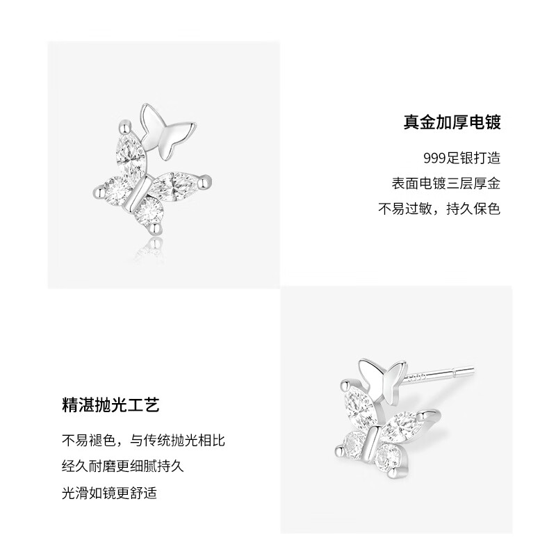 Enchanting Cat S999 Sterling Silver Butterfly Earrings for Women 2025 New Earrings Light Luxury Niche Women's Birthday Gifts for Girls Practical Simple Butterfly Earrings 1 Pair 999 Pure Silver