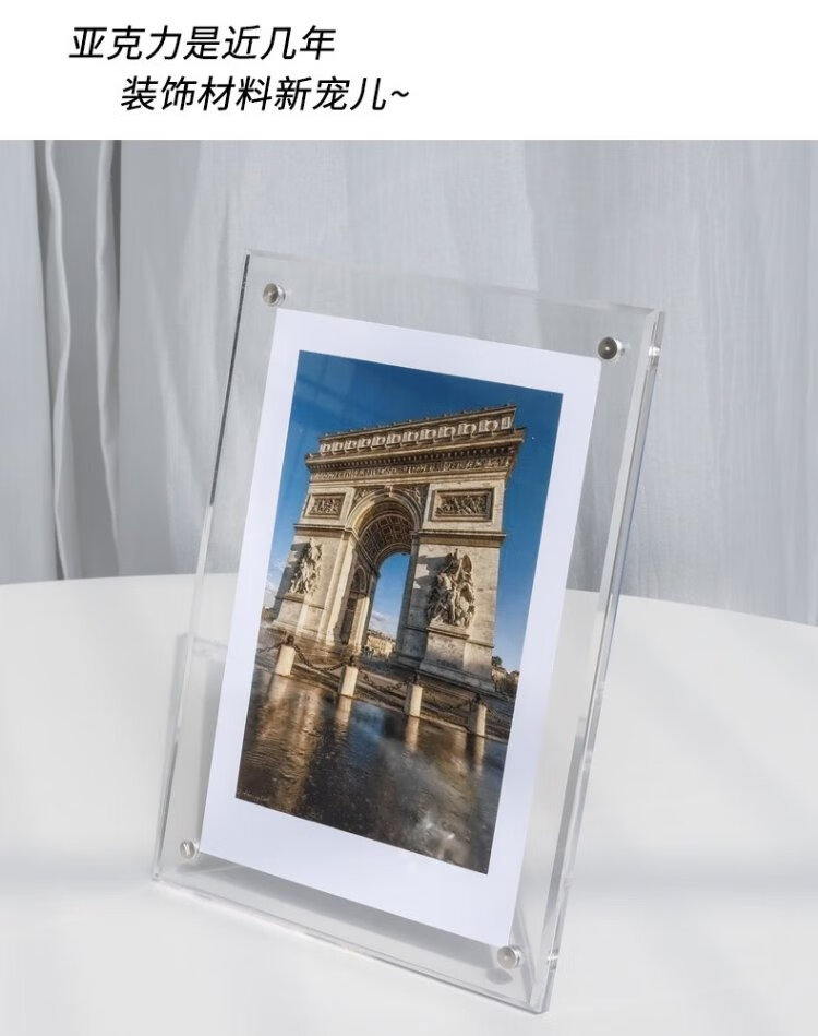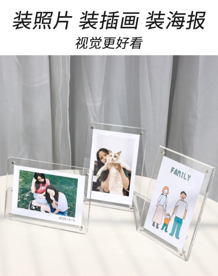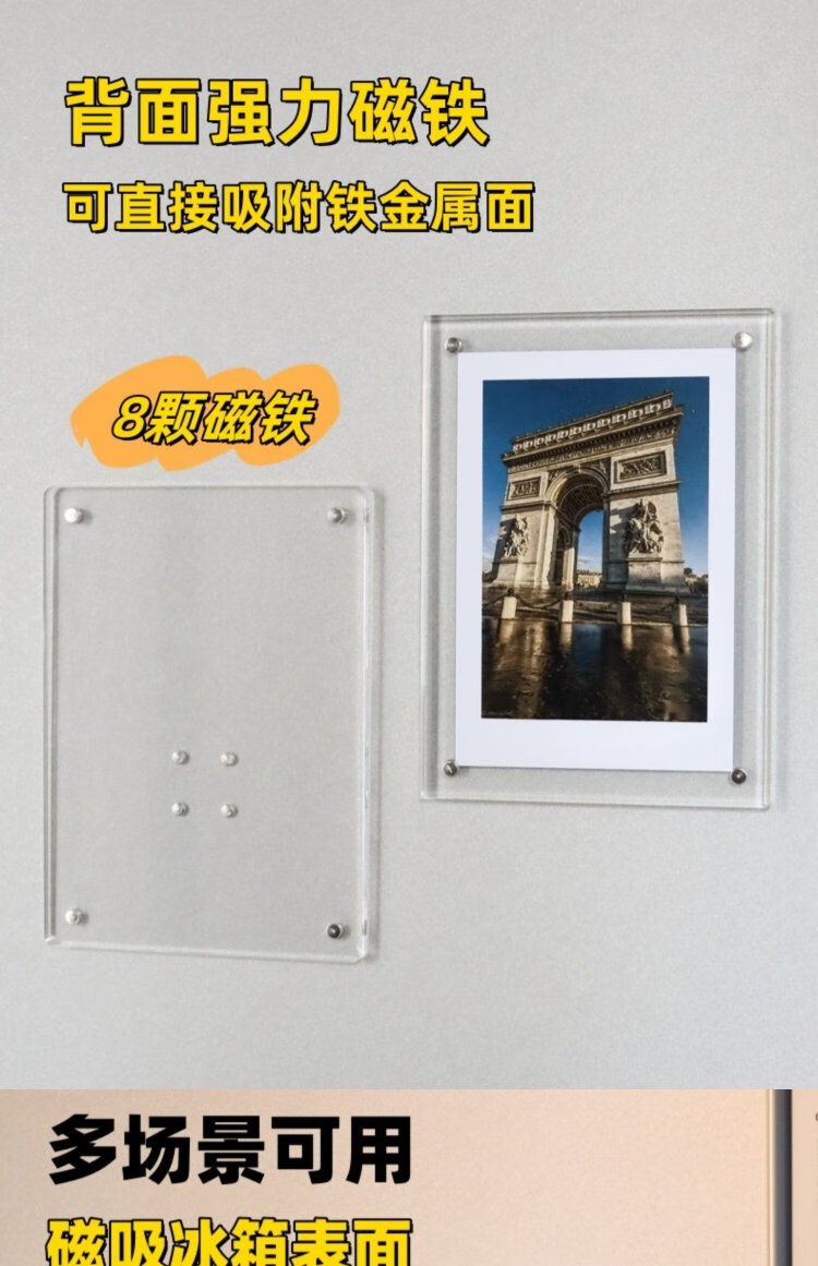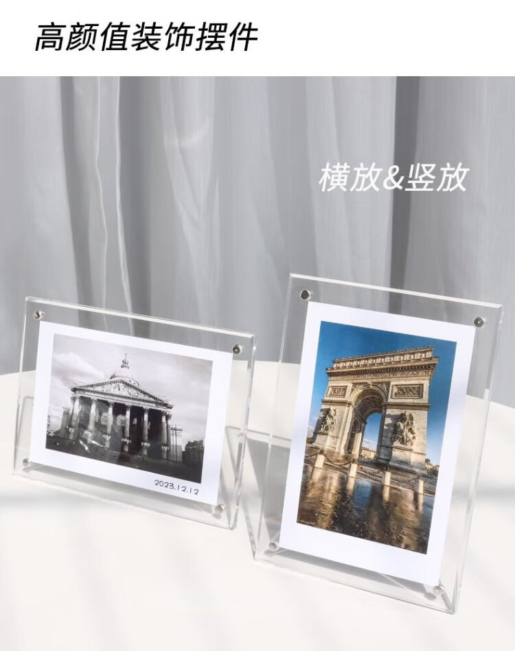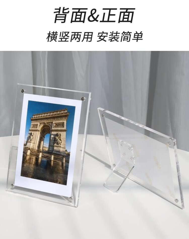 HQY acrylic photo frame table setting creative polaroid crystal magnetic transparent photo frame desktop photo ornament display stand transparent bottom rounded corners can be placed horizontally and vertically with brackets the whole frame 7 inches 13 18CM leave the edge to install 6 inches