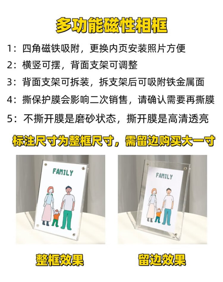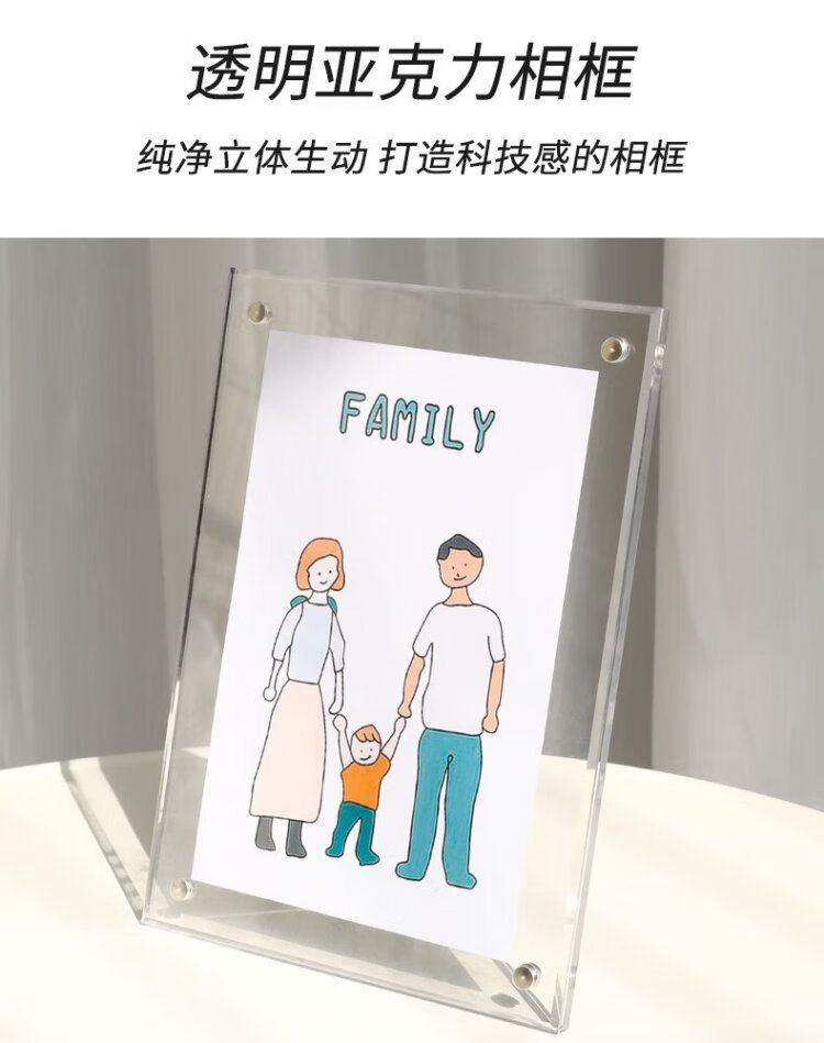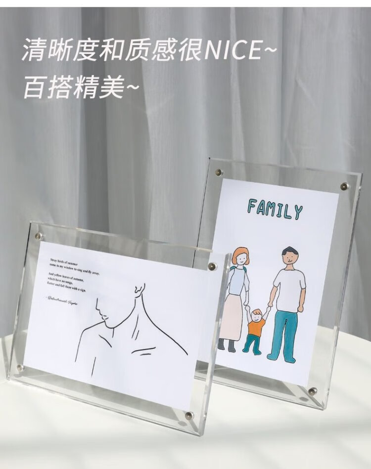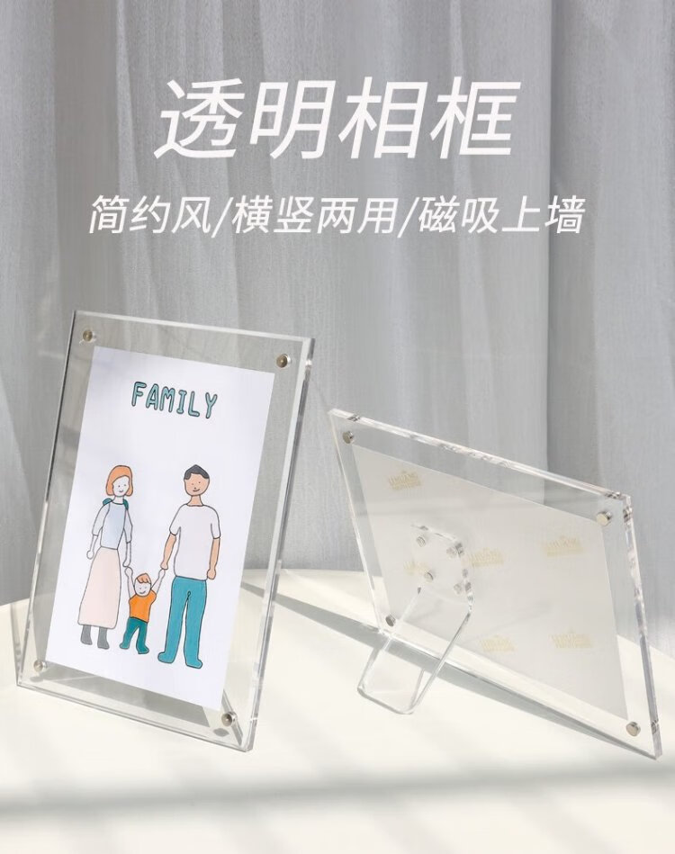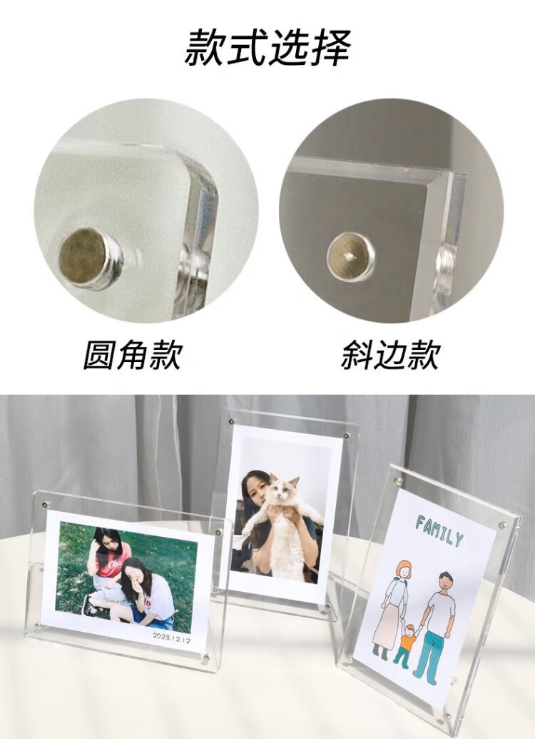 HQY acrylic photo frame table setting creative polaroid crystal magnetic transparent photo frame desktop photo ornament display stand transparent bottom rounded corners can be placed horizontally and vertically with brackets the whole frame 7 inches 13 18CM leave the edge to install 6 inches