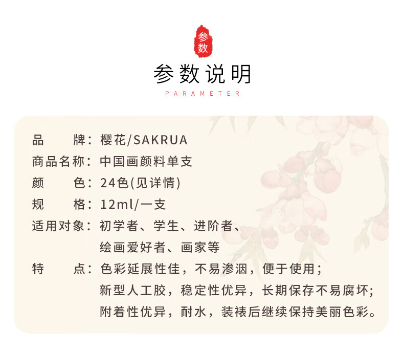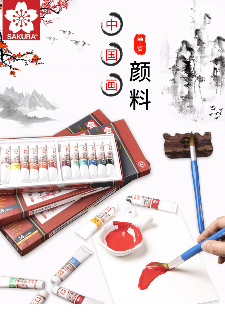 Japanese cherry blossom Chinese painting pigment single single color ink painting material Chinese painting special set entry tool meticulous painting dye single color eosin red single garcinia titanium white titanium white