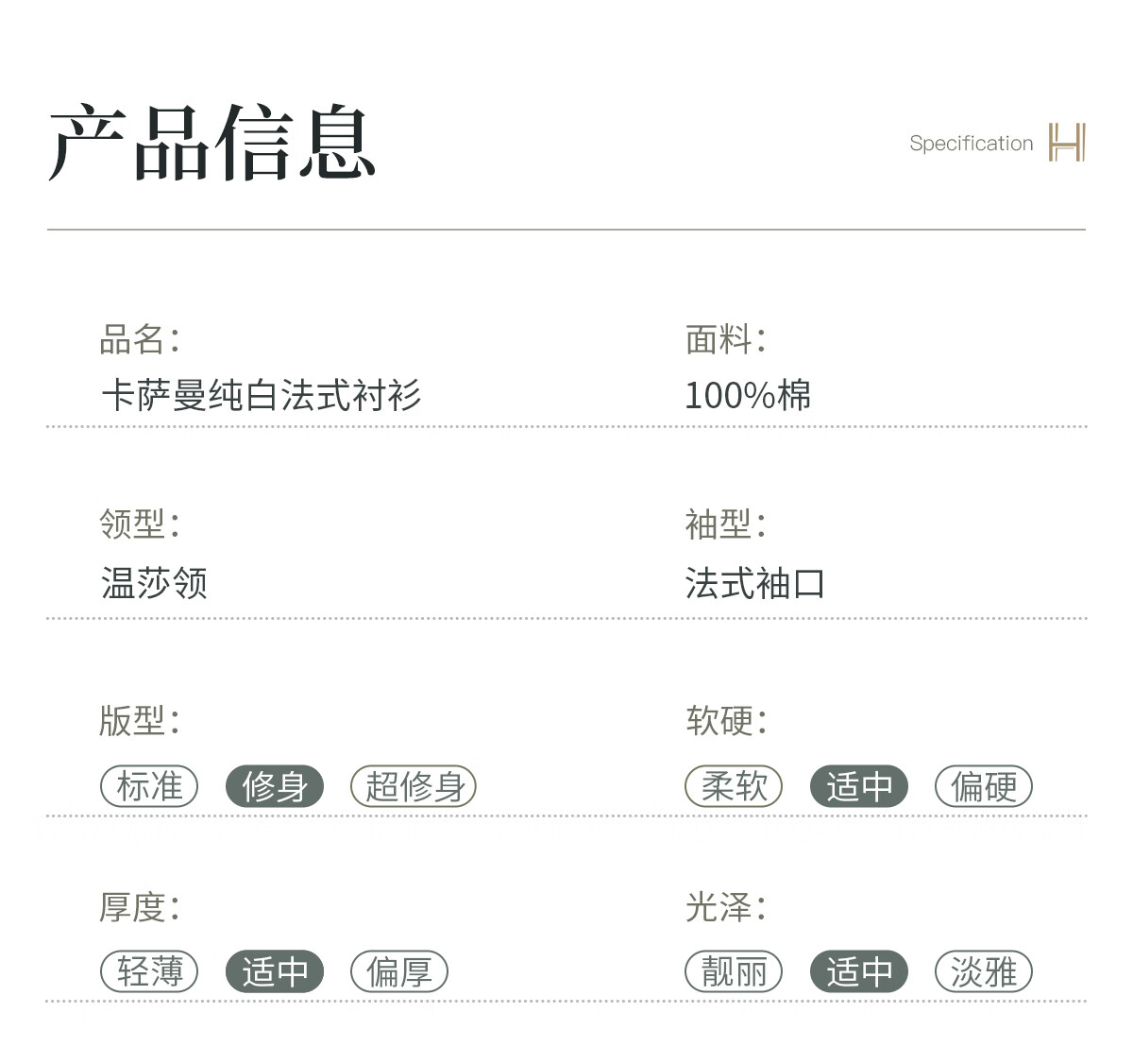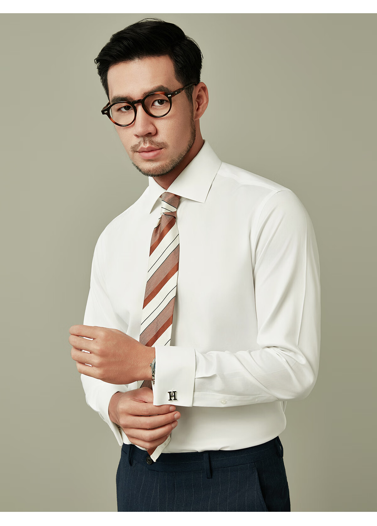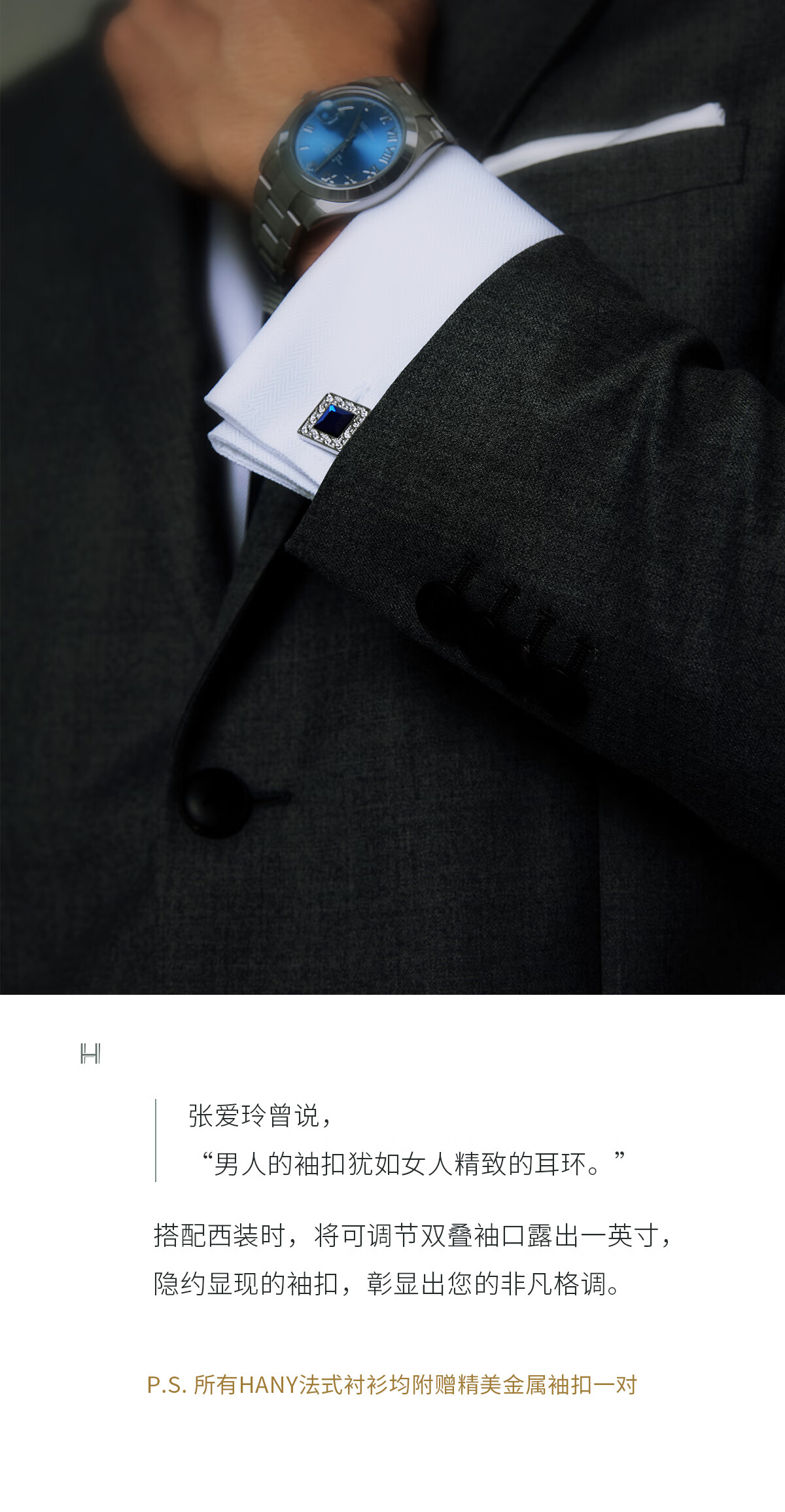 Hany (HANY) 200-count Windsor collar no-iron French shirt men's long-sleeved cufflinks cuffs men's business suit white shirt Casaman pure white 200-count ready-to-wear no-iron 41