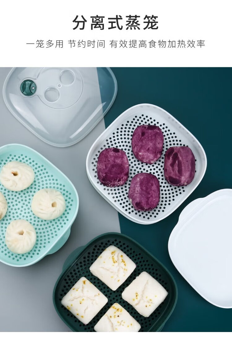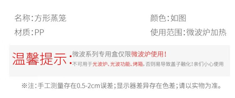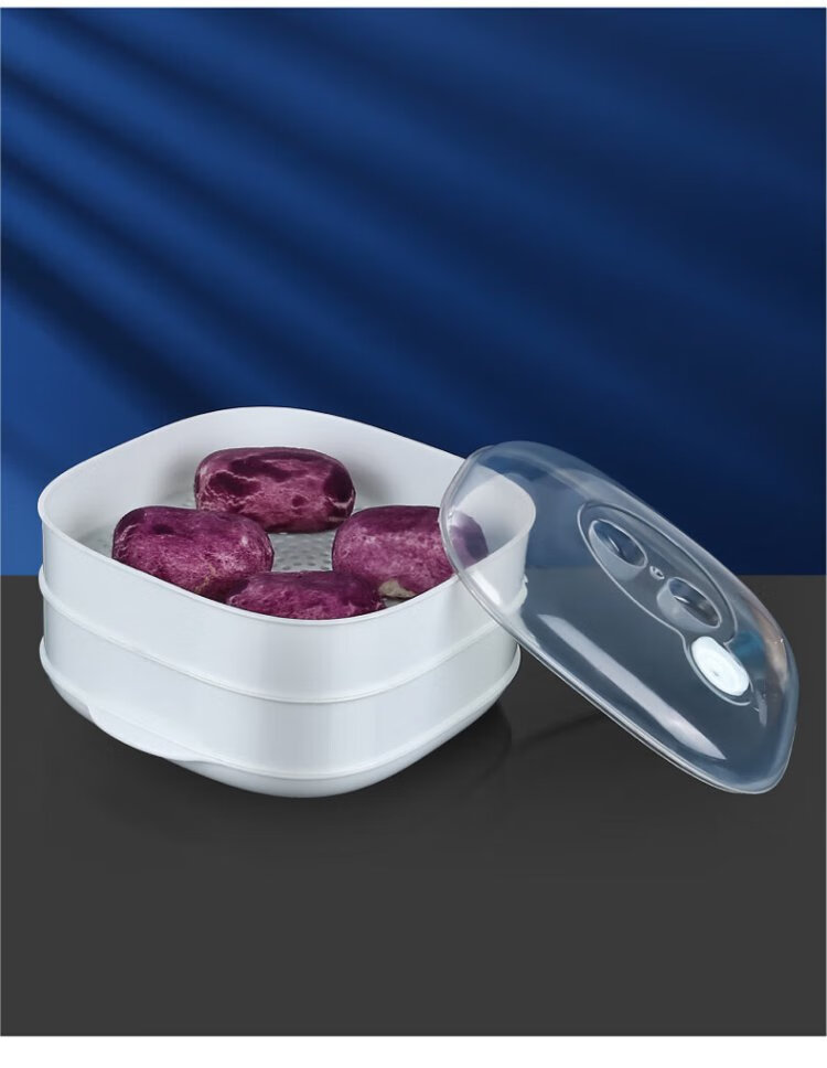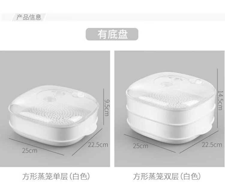 Meal General Microwave Steamer Can Add Water Steaming Box Heating Steamer Microwave Oven Special Utensils and Supplies Set Square Steamer Single Layer (White)