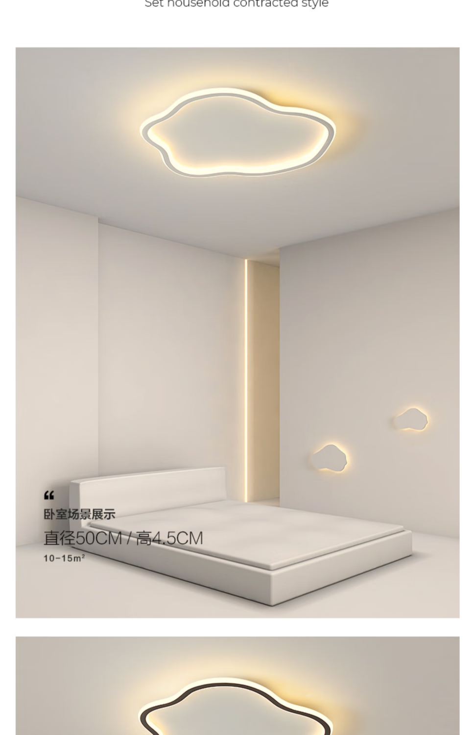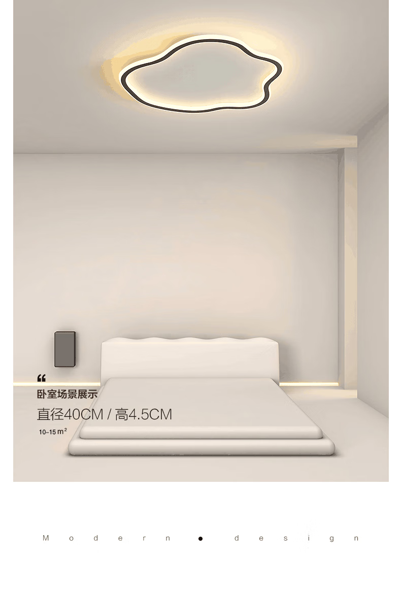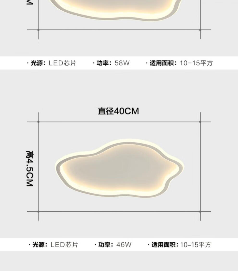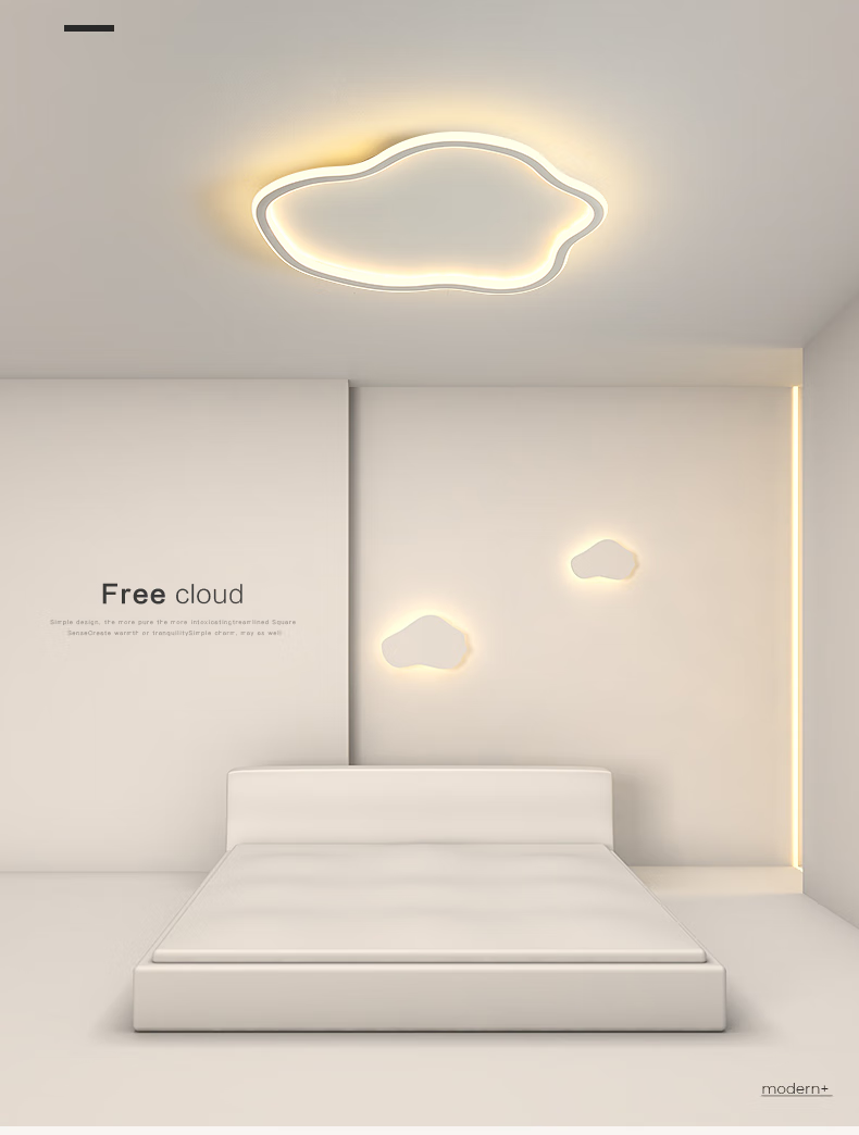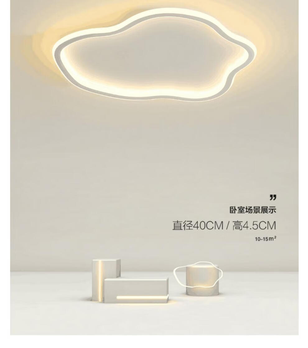 曜添卧室灯云朵led吸顶灯现代简约网红创意北欧儿童房间过道阳台灯具 白色19CM-三色