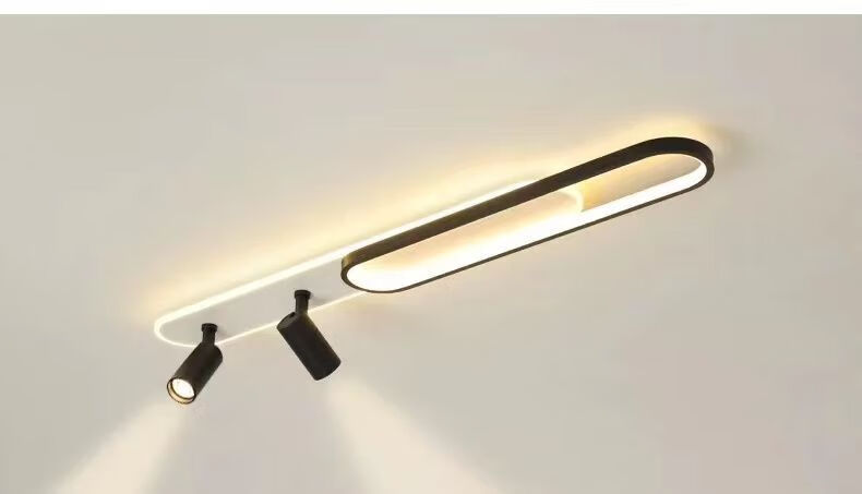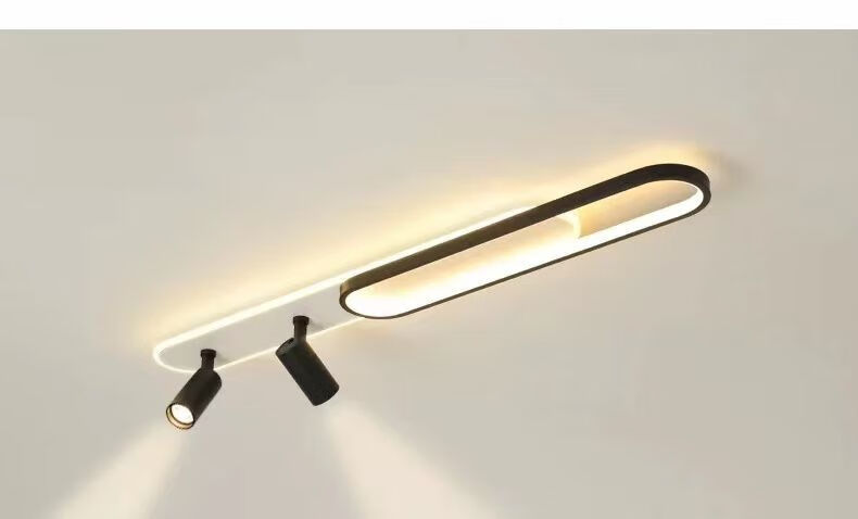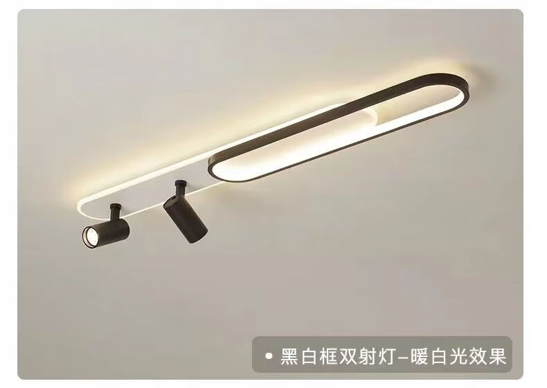 Yaotian Corridor Aisle Light Rectangular LED Ceiling Light Modern Simple Study Entrance Light Balcony Strip Light Black and White 120CM+2 Spotlights 10x5cm Aluminum - Neutral Light