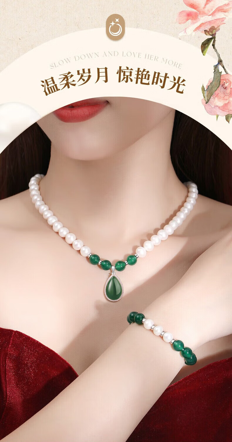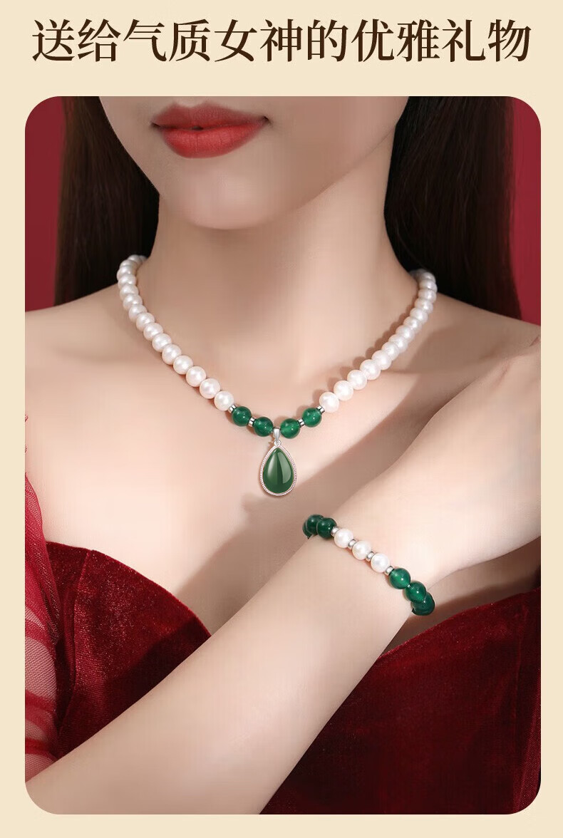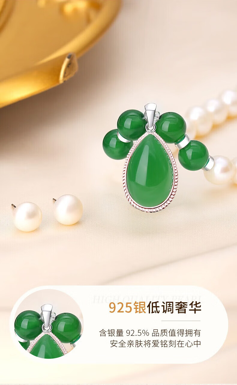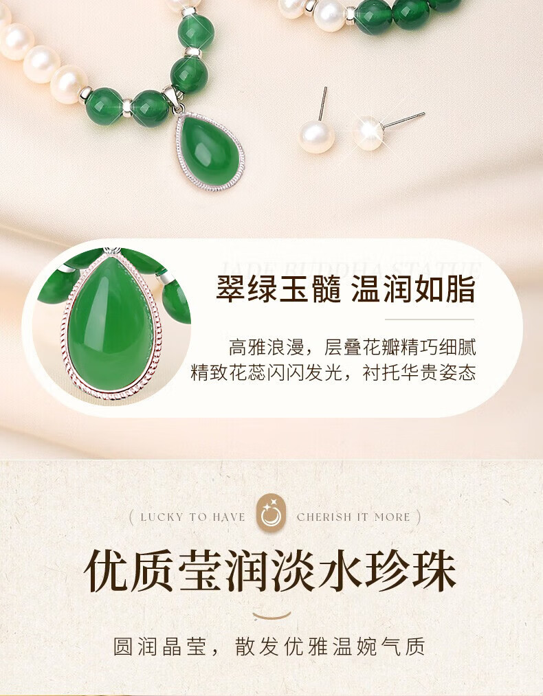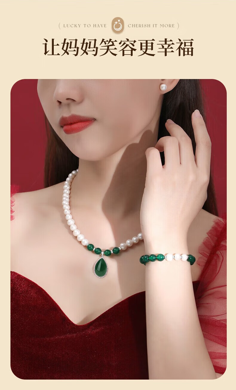 Chinese Gold Freshwater Pearl Necklace Mother's Style Water Drop Chalcedony Pendant Mother's Birthday Gift for Mother-in-Law Practical for Mother's Day Water Drop Chalcedony Freshwater Pearl Set-Jingsuda