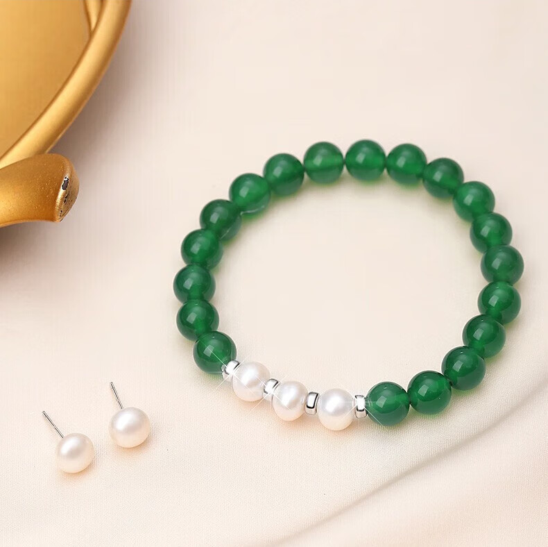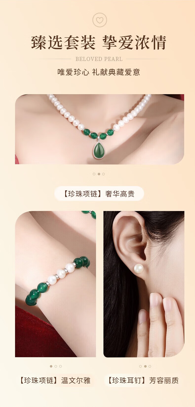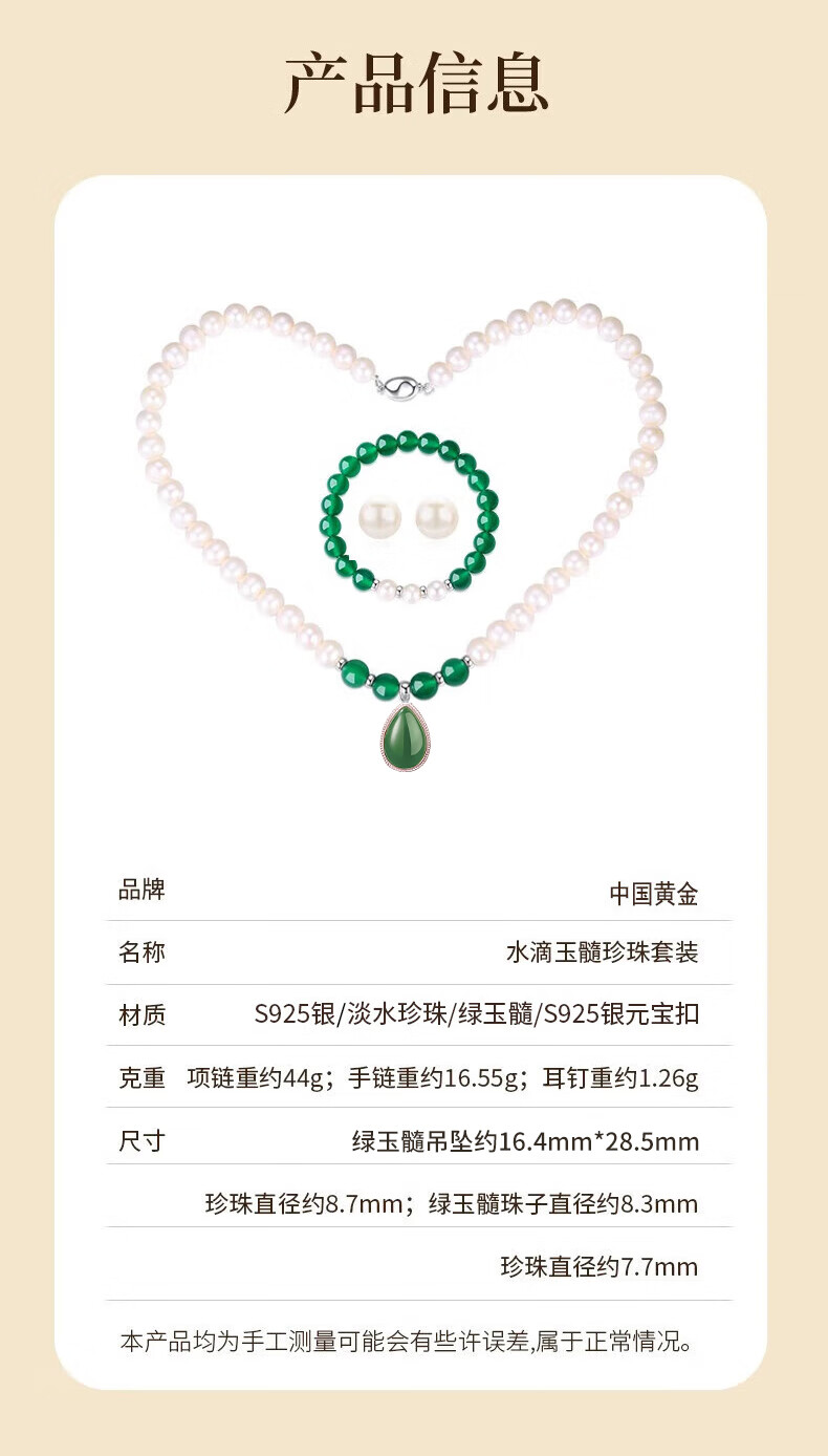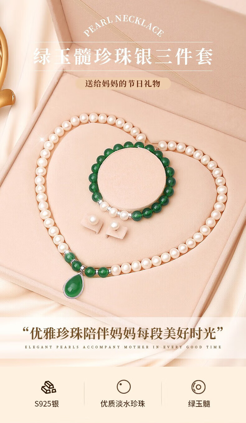 Chinese Gold Freshwater Pearl Necklace Mother's Style Water Drop Chalcedony Pendant Mother's Birthday Gift for Mother-in-Law Practical for Mother's Day Water Drop Chalcedony Freshwater Pearl Set-Jingsuda