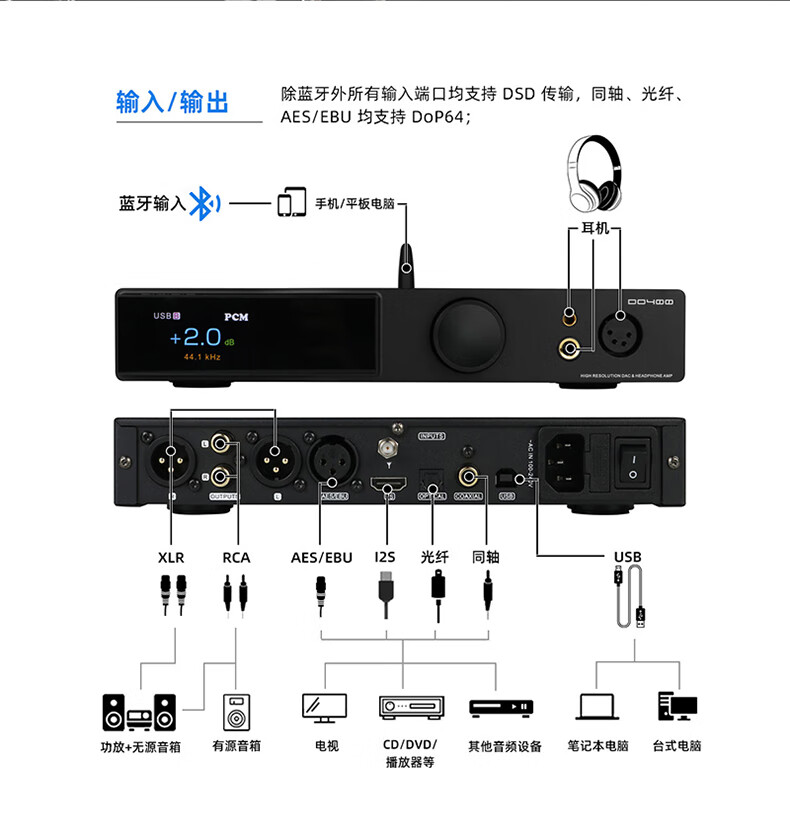 SMSL Shuangmu Sanlin DO400 decoder hifi fever DAC decoder amp all-in-one machine ESS9039MSPRO DO400 black
