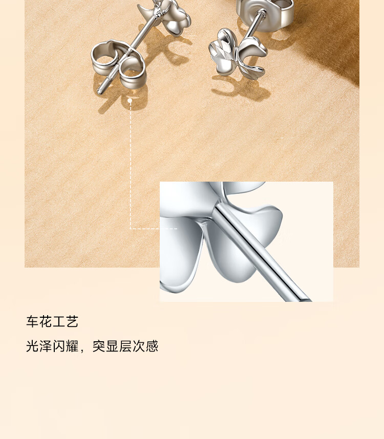 ZLF platinum earrings for women PT950 platinum car flower sparkling lucky four-leaf clover earrings 1.33g