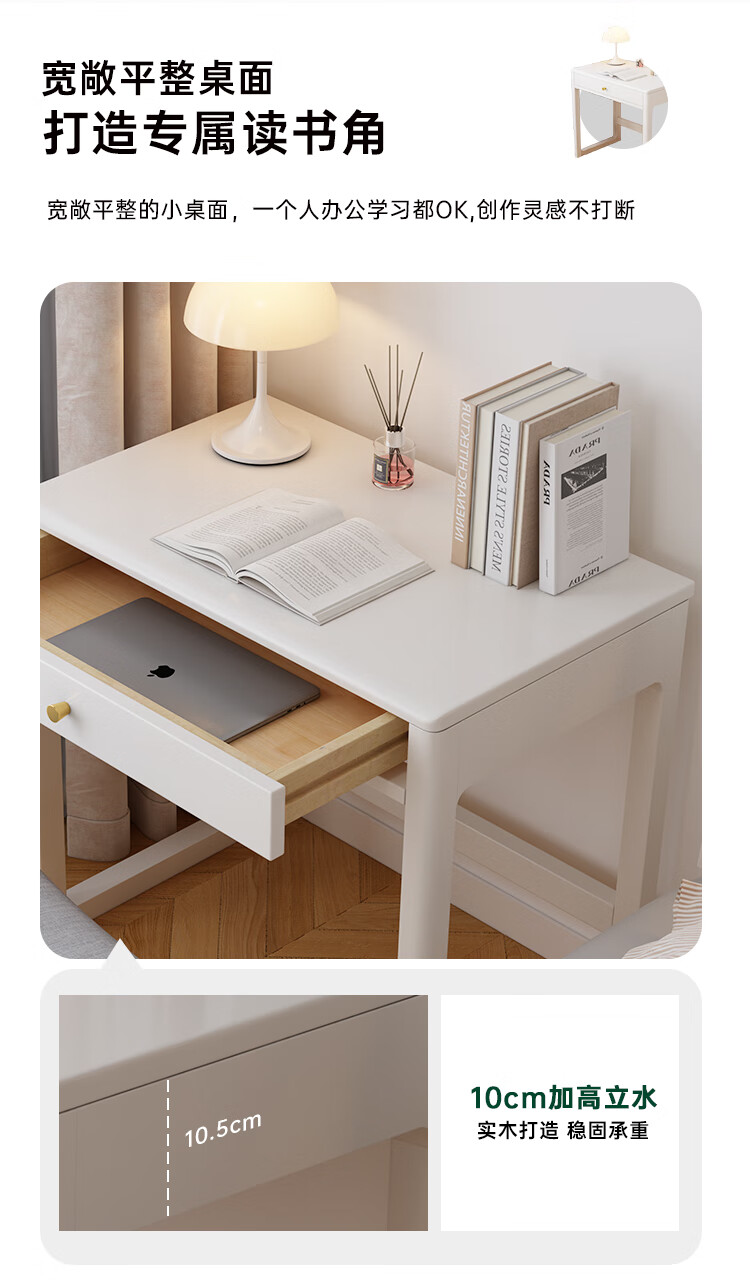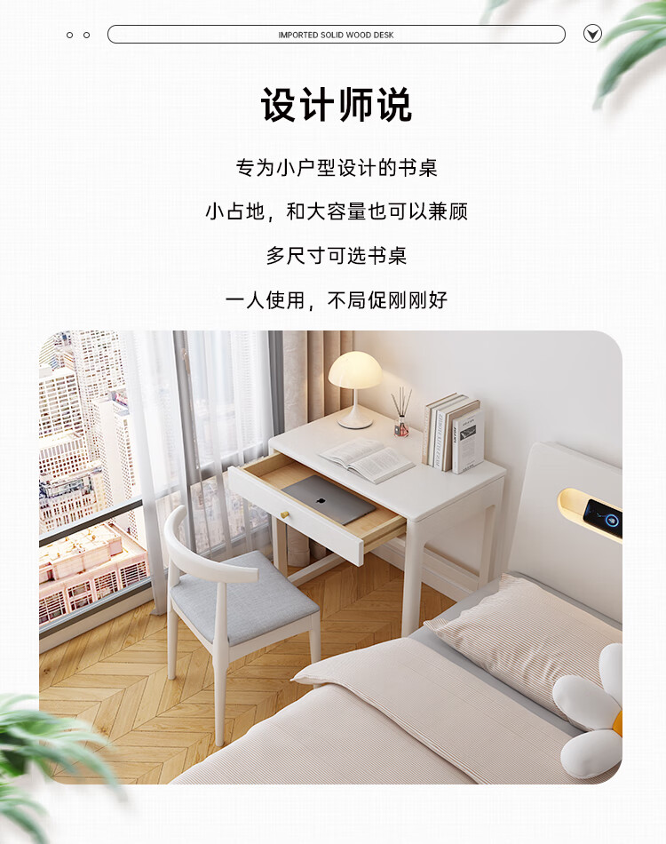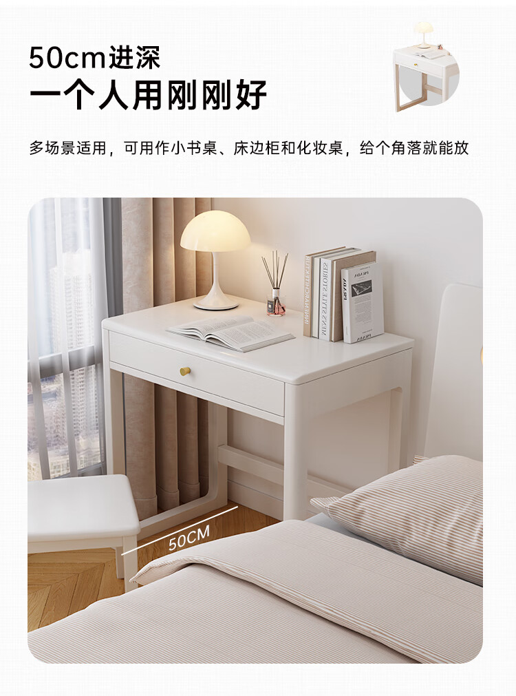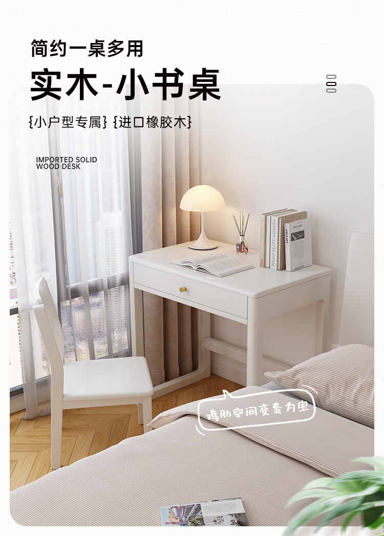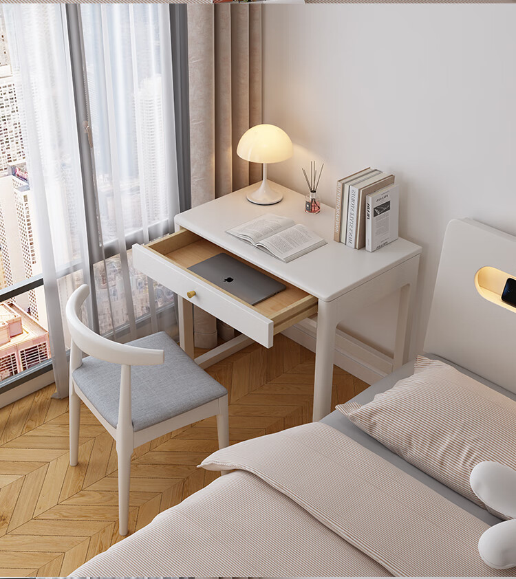 Happy Shuwu Nordic solid wood desk small apartment bedside dresser length 60/70CM modern simple study office computer desk white single table 70x50x75cm single drawer all solid wood