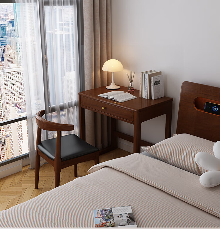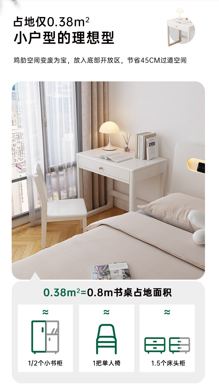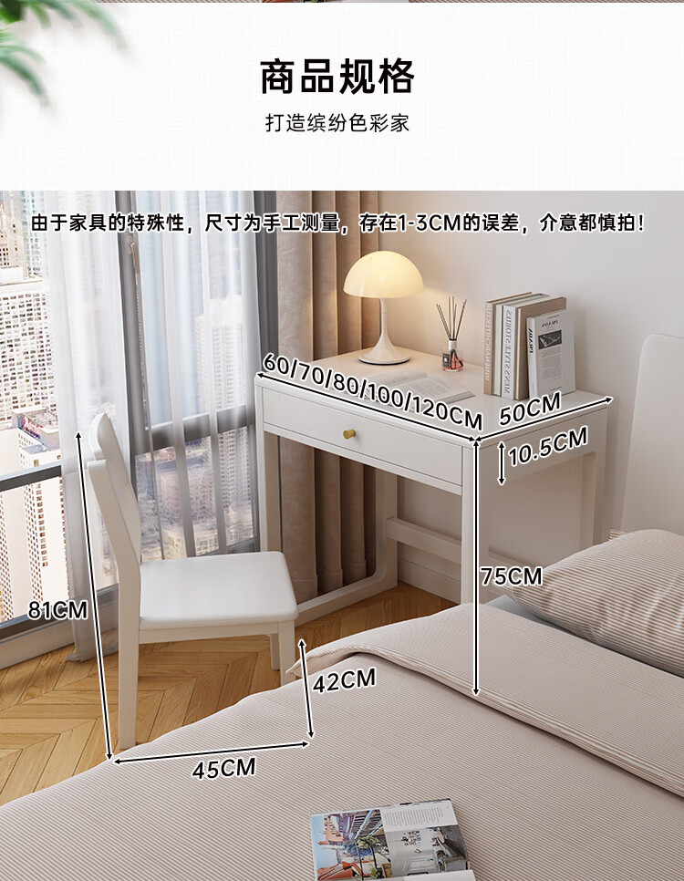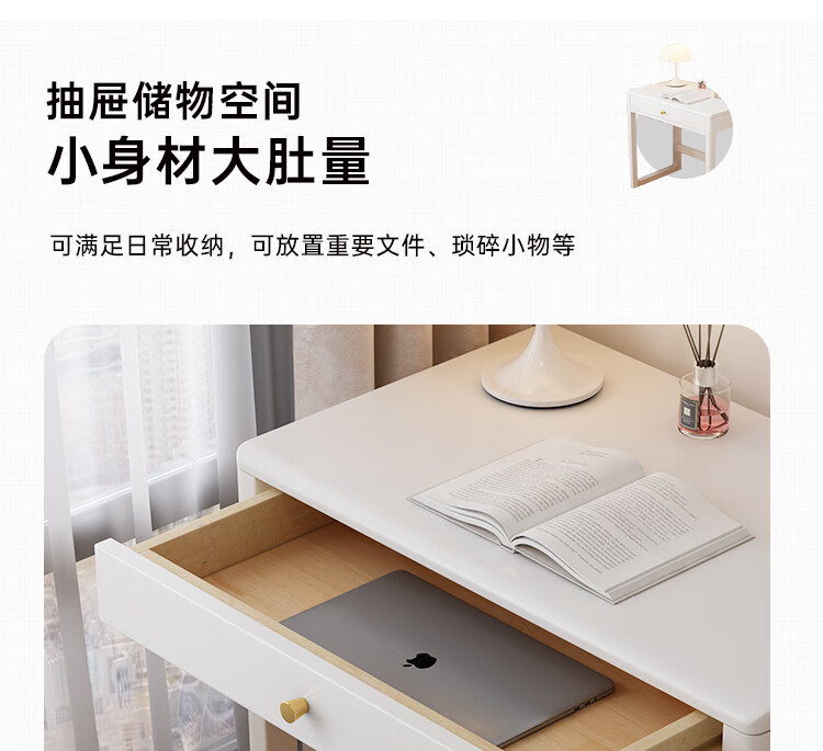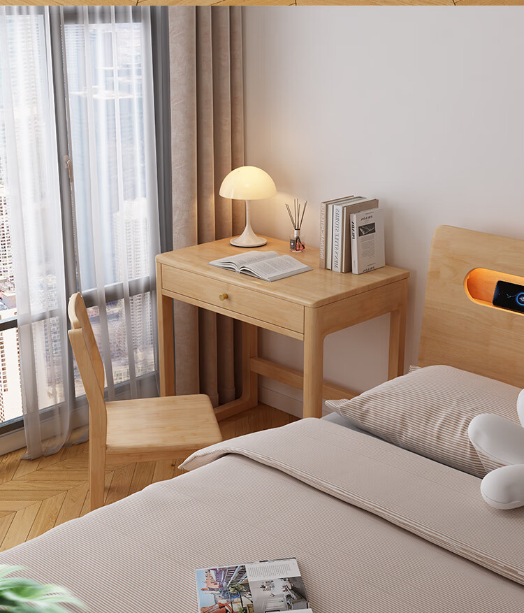Happy Shuwu Nordic solid wood desk small apartment bedside dresser length 60/70CM modern simple study office computer desk white single table 70x50x75cm single drawer all solid wood
