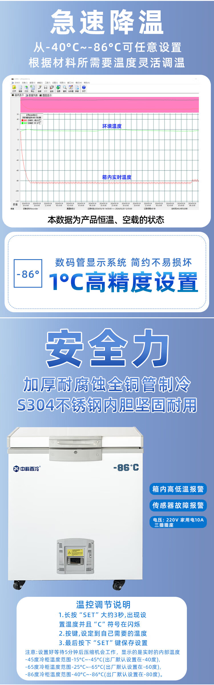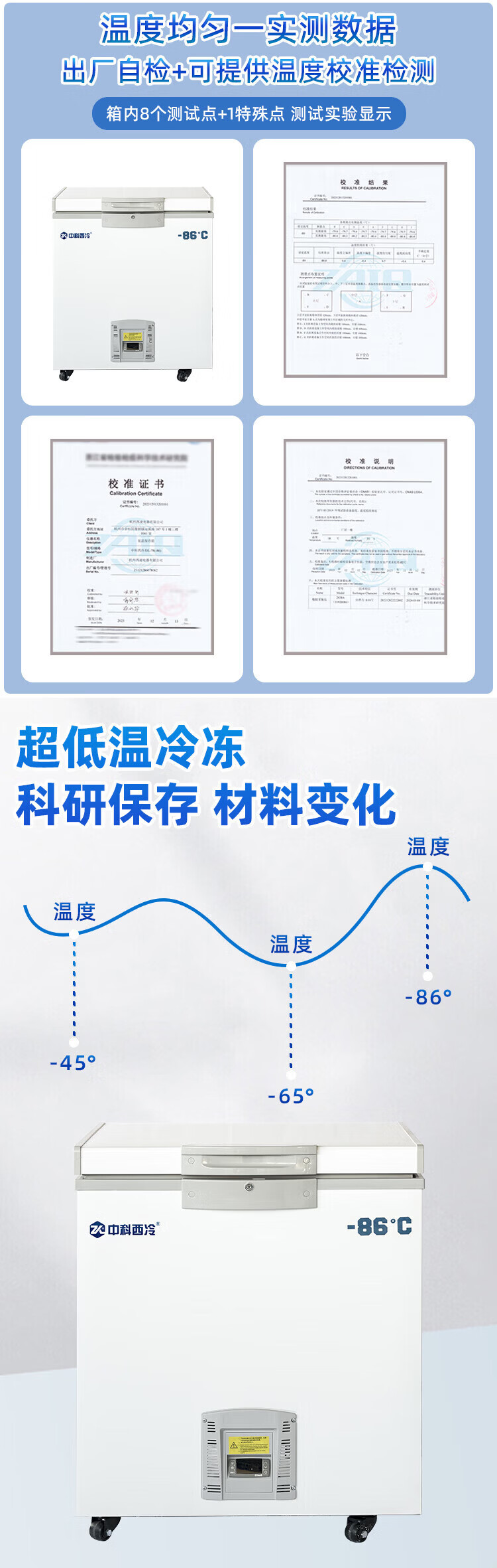 Zhongke Xileng ultra-low temperature refrigerator - 80 degrees small laboratory scientific research - 60 biological dry ice strain reagent freezer - minus 40 industrial parts cryogenic storage refrigeration quick freezer - 25~-65 C ultra-low temperature 480 liters