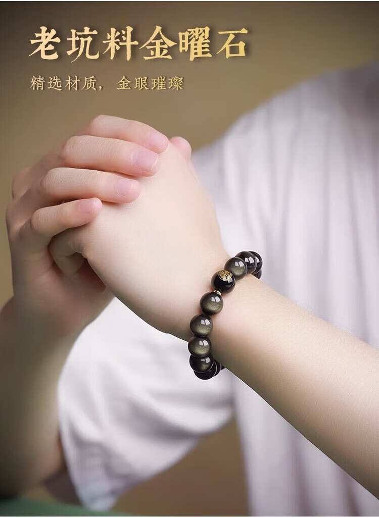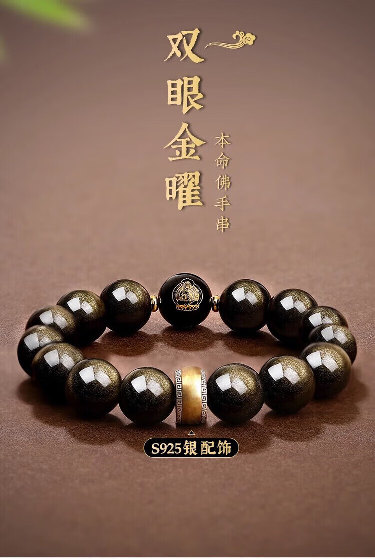 Aitkel Obsidian Bracelet Zodiac Year of the Dragon Year of the Dragon for men and women. The natal Buddha beads transfer wealth and gold obsidian amulet to protect the patron saint. Thousand-Hand Guanyin Rat. 10mm bead diameter. Unisex.