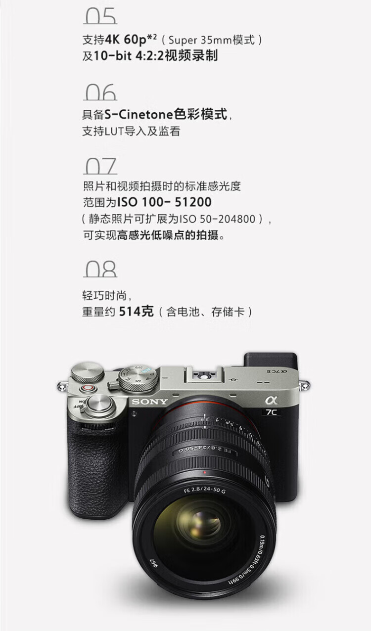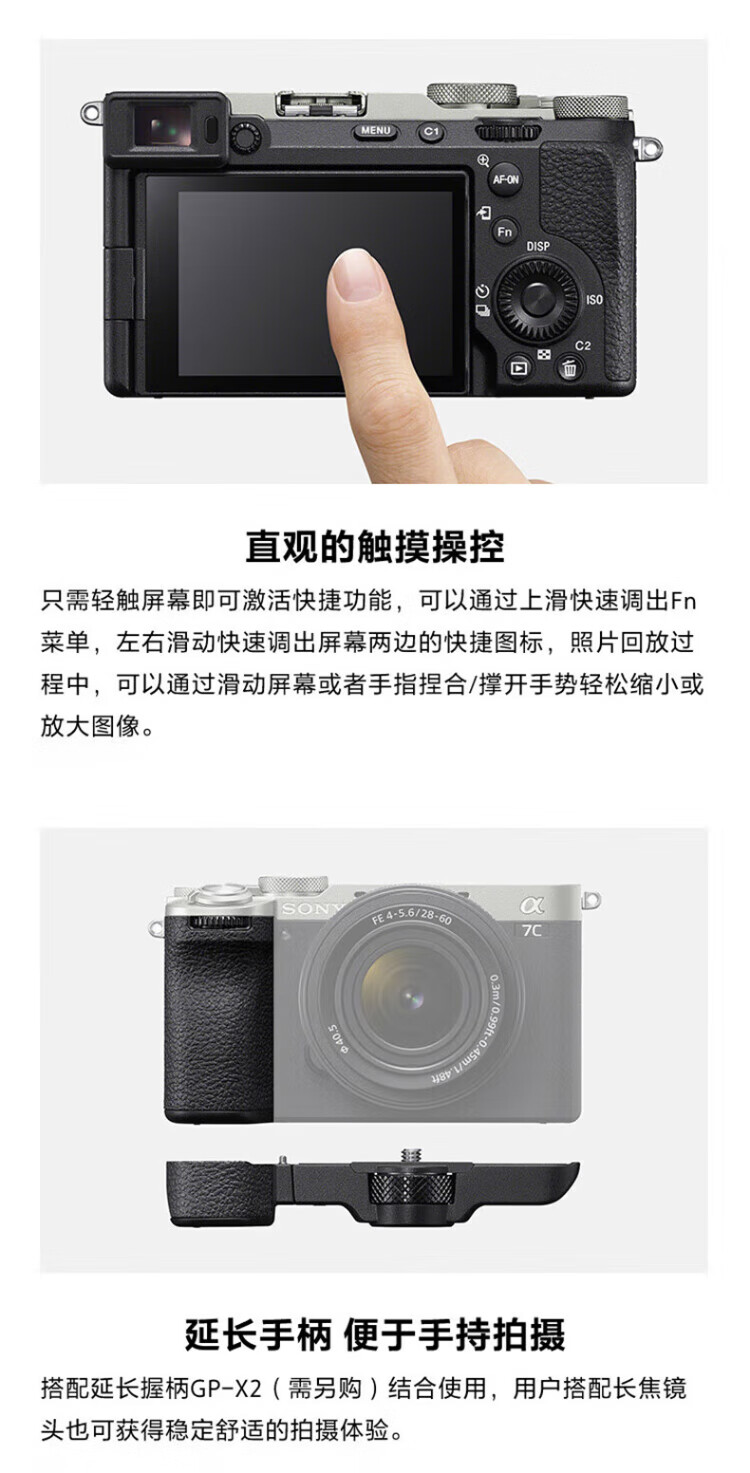 Sony (SONY) Alpha 7C II new generation full-frame mirrorless camera A7C2 dual image small 7 digital camera a7c2 A7CM2 a7c second generation A7C2 silver stand-alone official standard only factory configuration recommended purchase package
