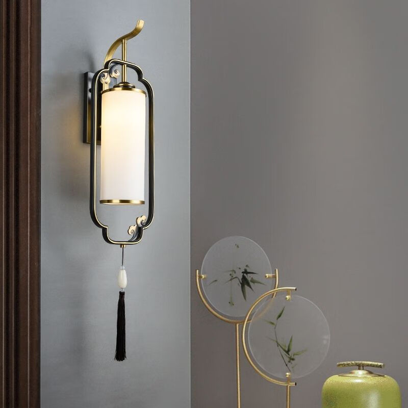 Yaotian Modern New Chinese Wall Lamp Bedroom Bedside Lamp Corridor Aisle Lamp Creative TV Wall Background Decoration Indoor Wall Lamp 2016 Golden Large (Iron + Glass) Free Three-Color Bulb