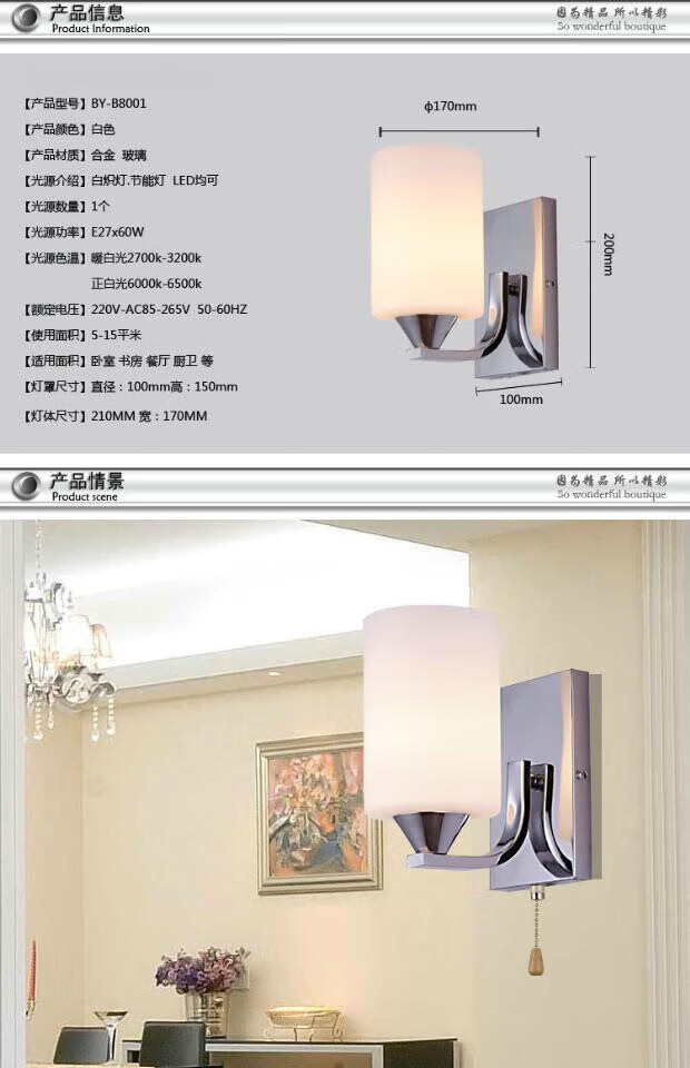 Yaotian simple modern fashion creative bedside glass wall lamp with switch living room lamp bedroom lamp aisle lamp indoor wall lamp chrome single head without switch without light bulb