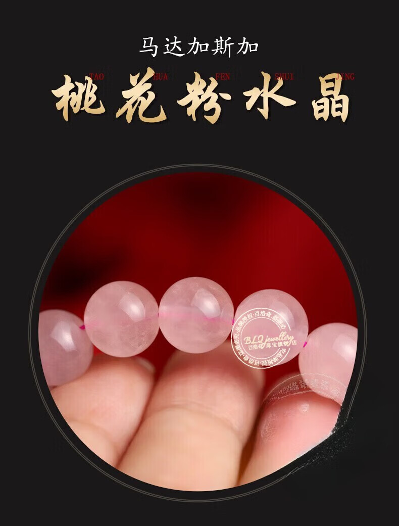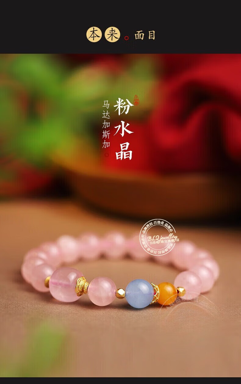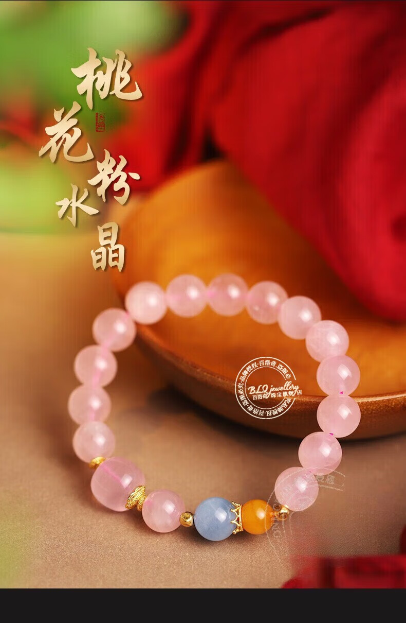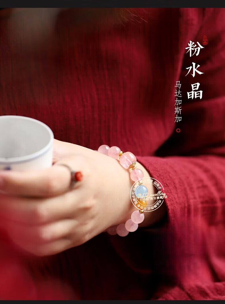 Bailuoqi Pink Crystal Bracelet for Women Madagascar Rose Quartz Beads Pink Hibiscus Stone Bracelet for Peach Blossom Gifts Bead Diameter 6mm