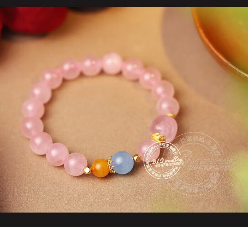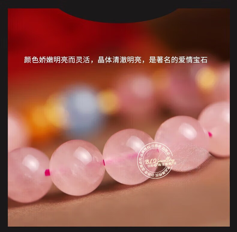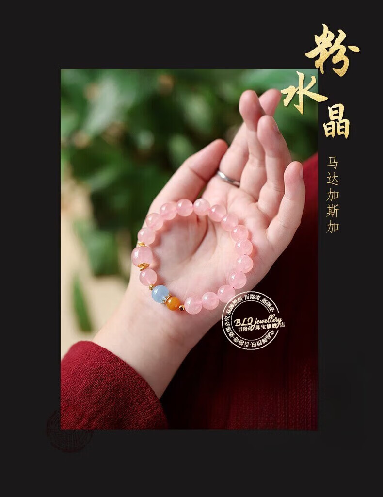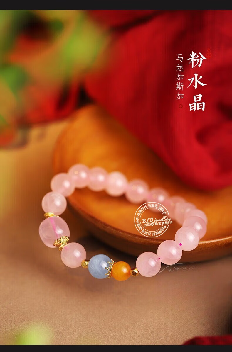 Bailuoqi Pink Crystal Bracelet for Women Madagascar Rose Quartz Beads Pink Hibiscus Stone Bracelet for Peach Blossom Gifts Bead Diameter 6mm