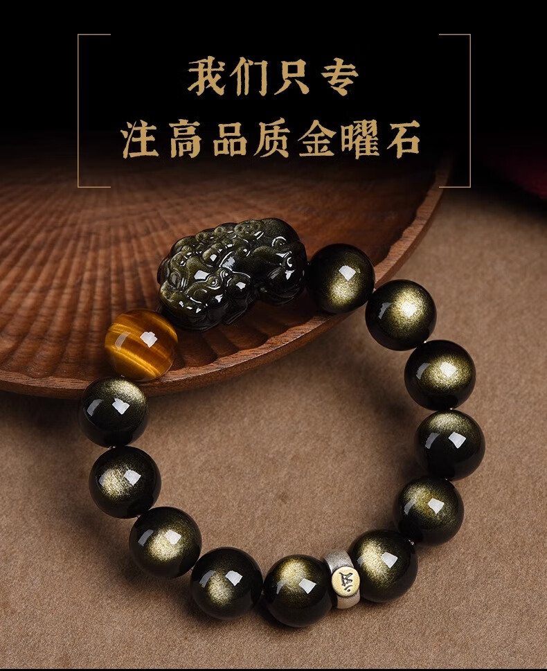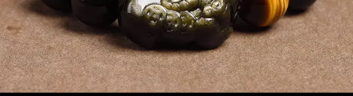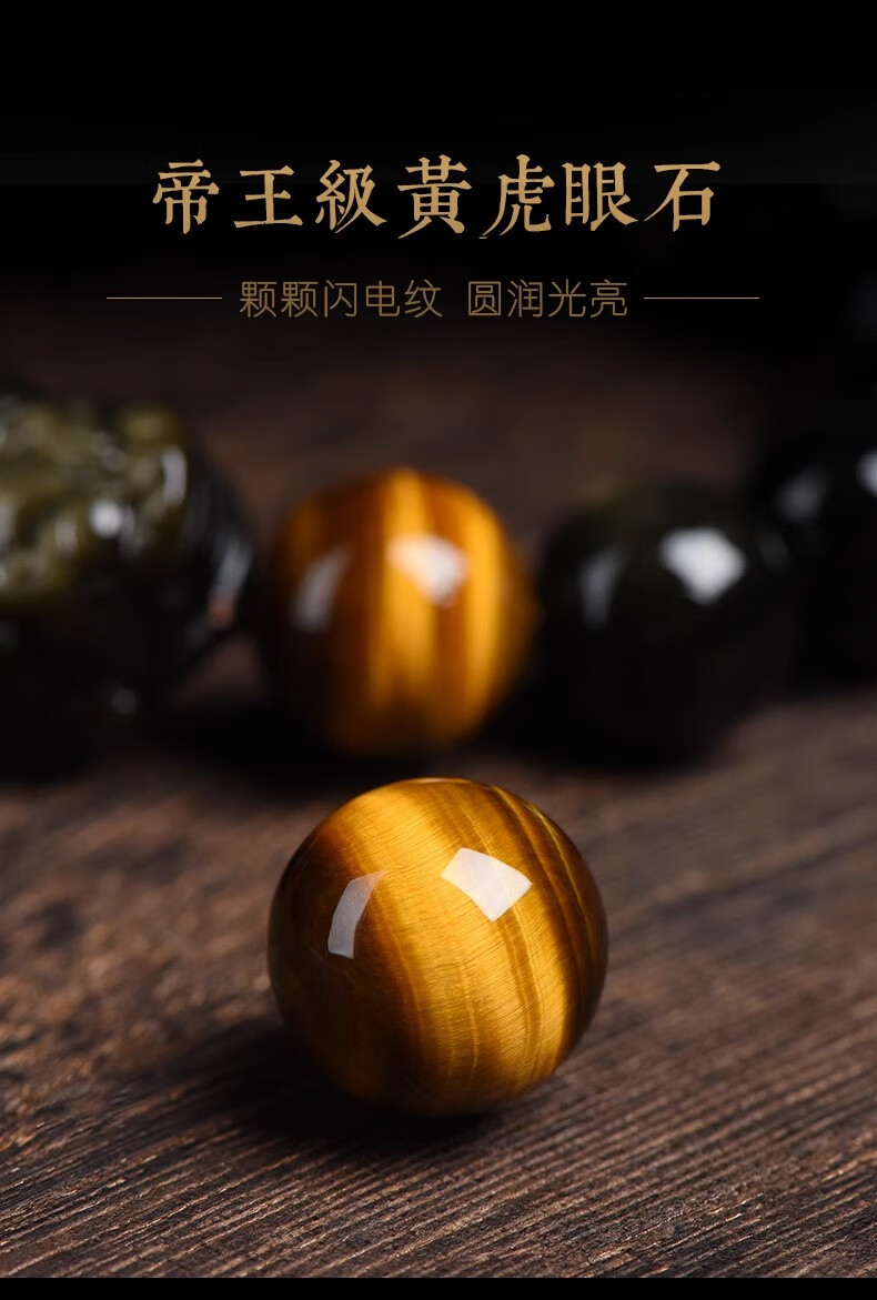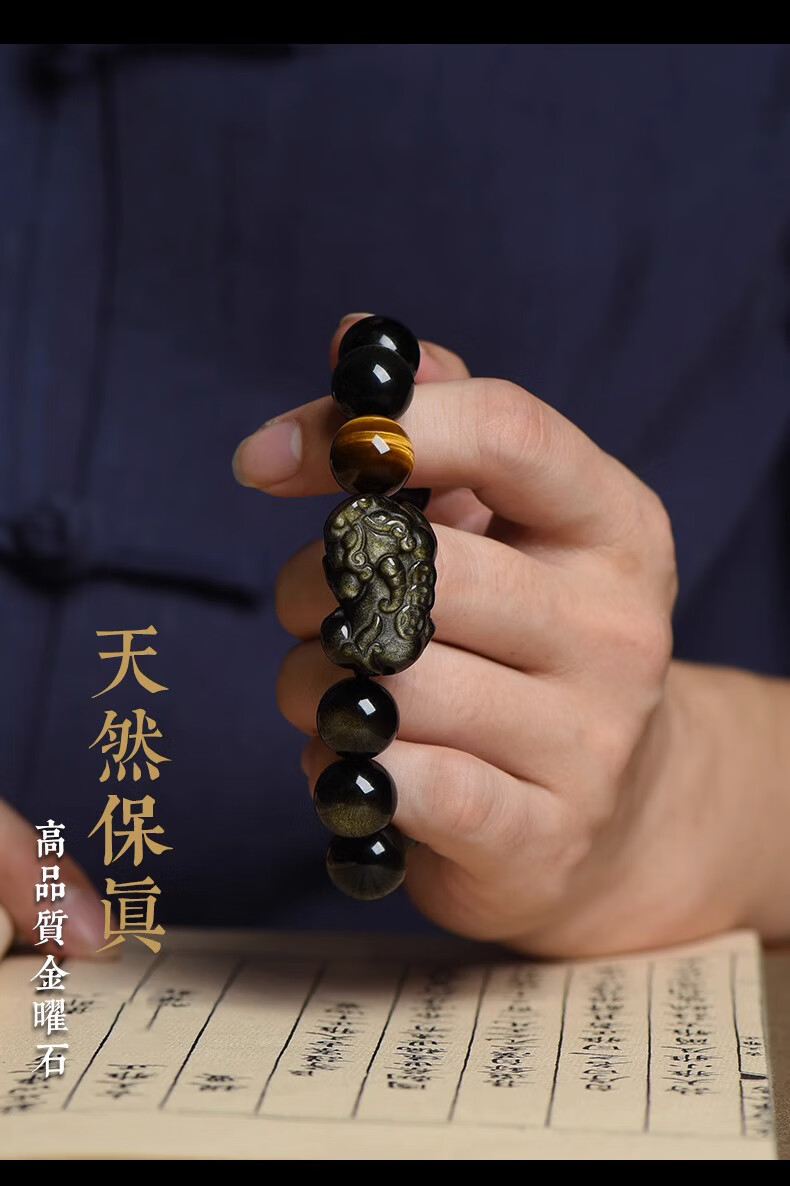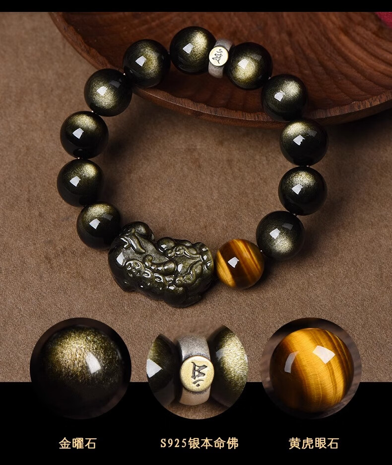 Aitkel Pixiu Black Gold Obsidian Bracelet Yellow Tiger Eye Stone Zodiac Year of the Dragon Male Buddha Beads for Money Bracelet Birthday Gift Samantabhadra Dragon/Snake - Pixiu Bracelet 12mm Bead Diameter Unisex