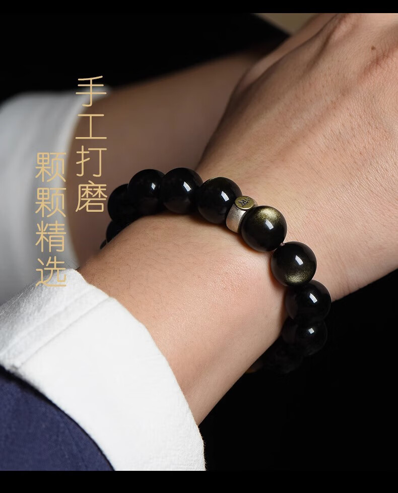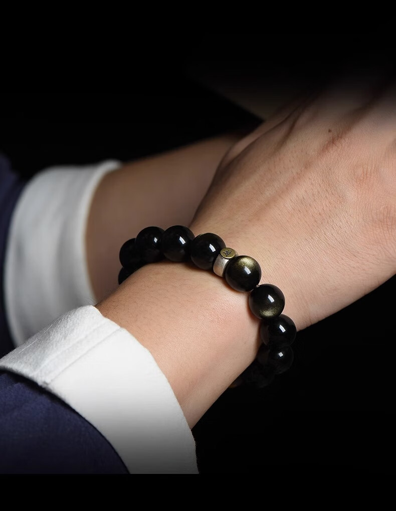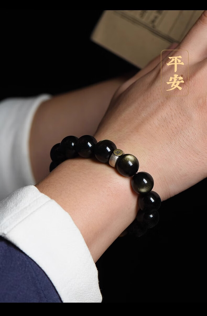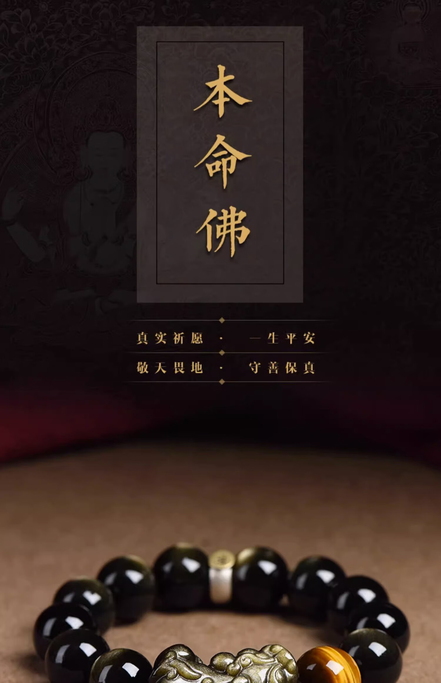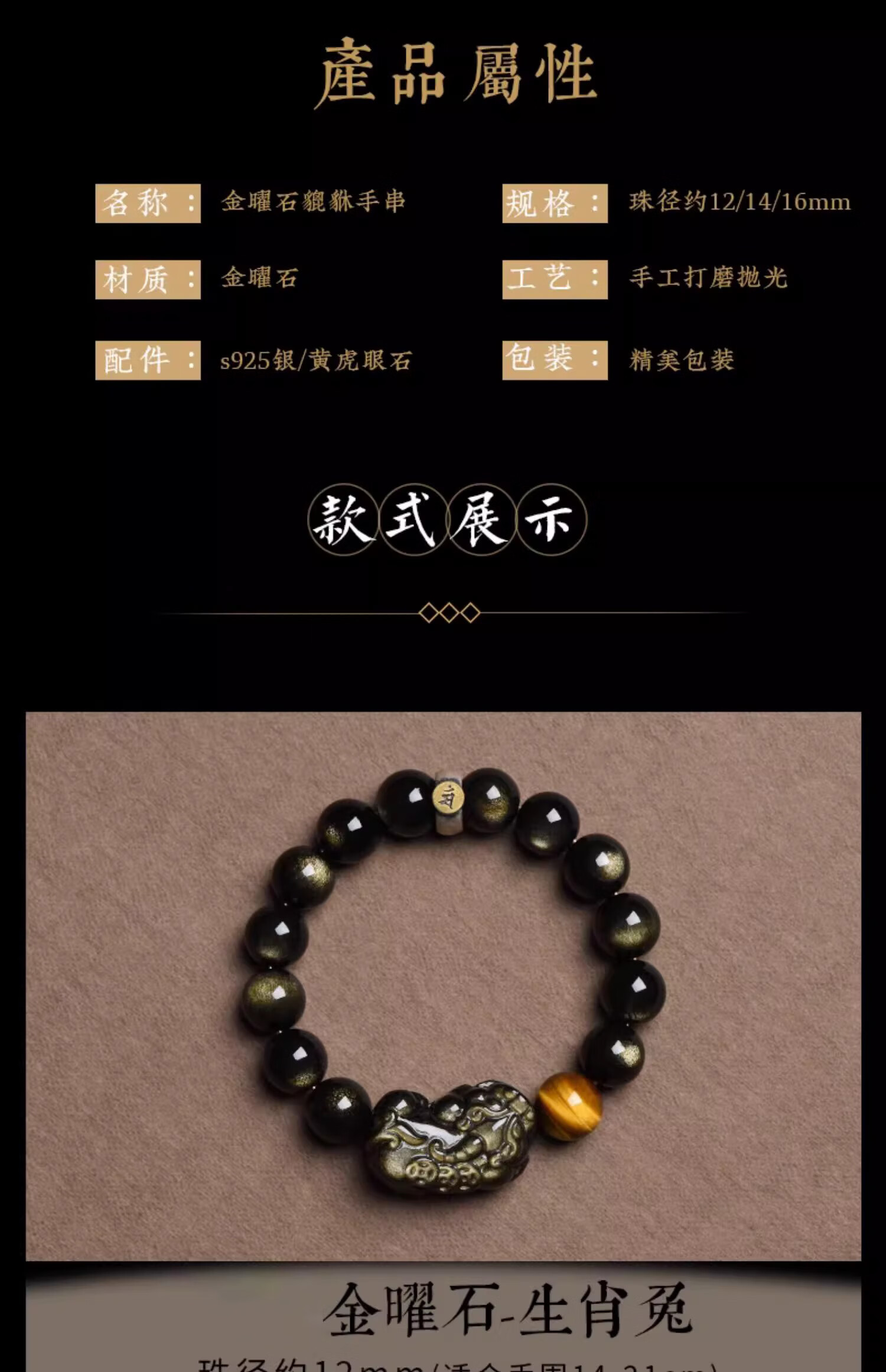 Aitkel Pixiu Black Gold Obsidian Bracelet Yellow Tiger Eye Stone Zodiac Year of the Dragon Male Buddha Beads for Money Bracelet Birthday Gift Samantabhadra Dragon/Snake - Pixiu Bracelet 12mm Bead Diameter Unisex