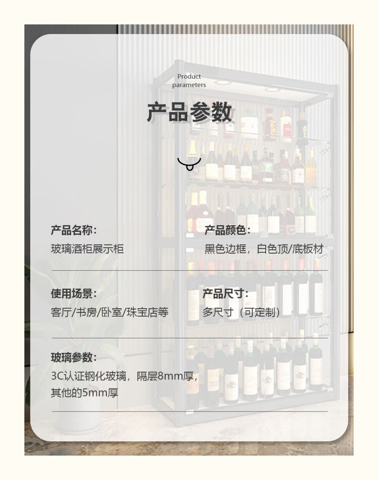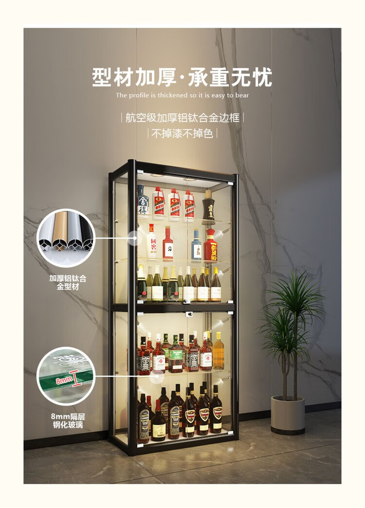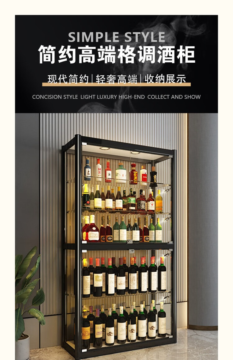 Tianming wine cabinet display cabinet against the wall living room modern simple light luxury new high-end Internet celebrity glass small wine cabinet for home base model 40*40*160 installed and shipped single door