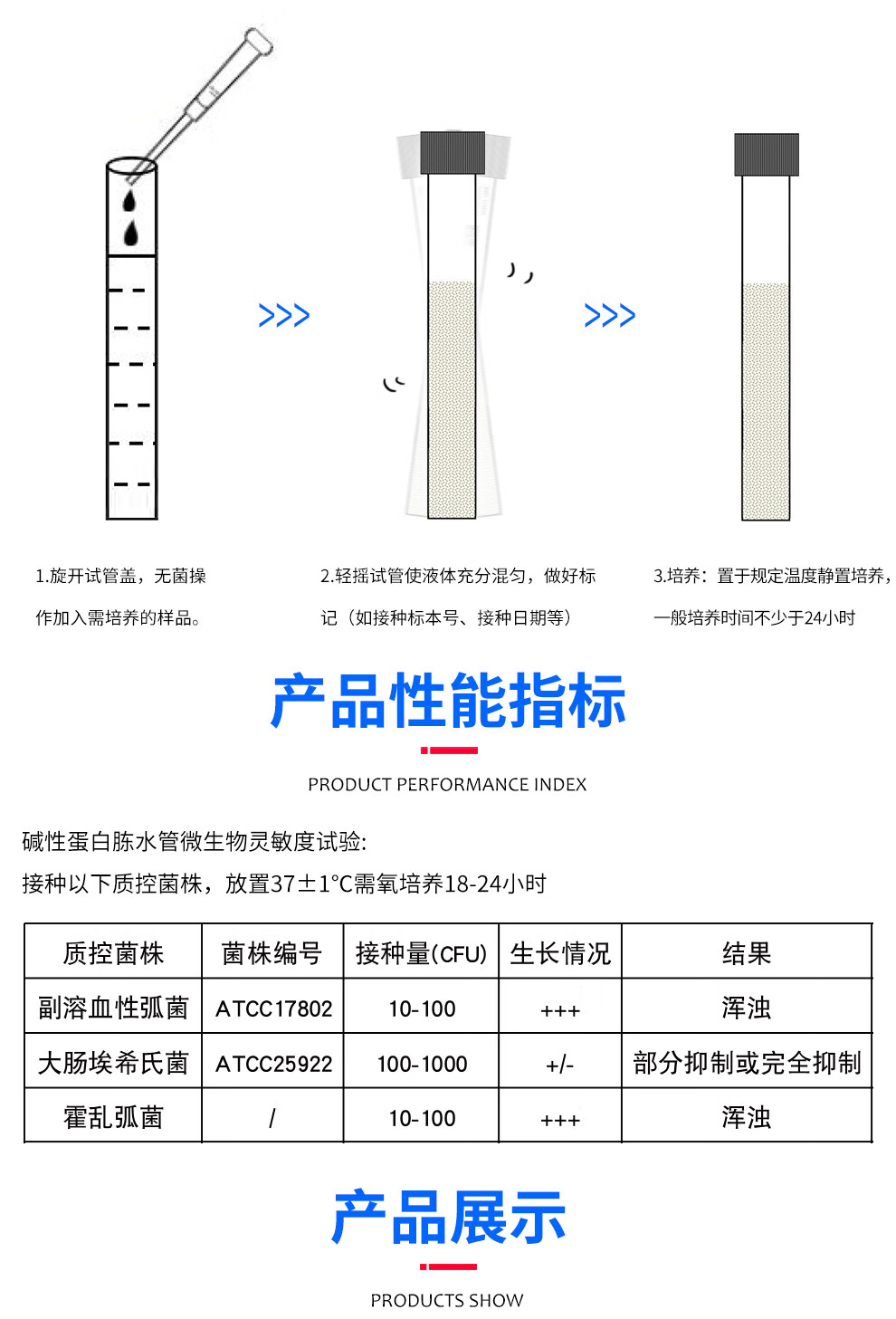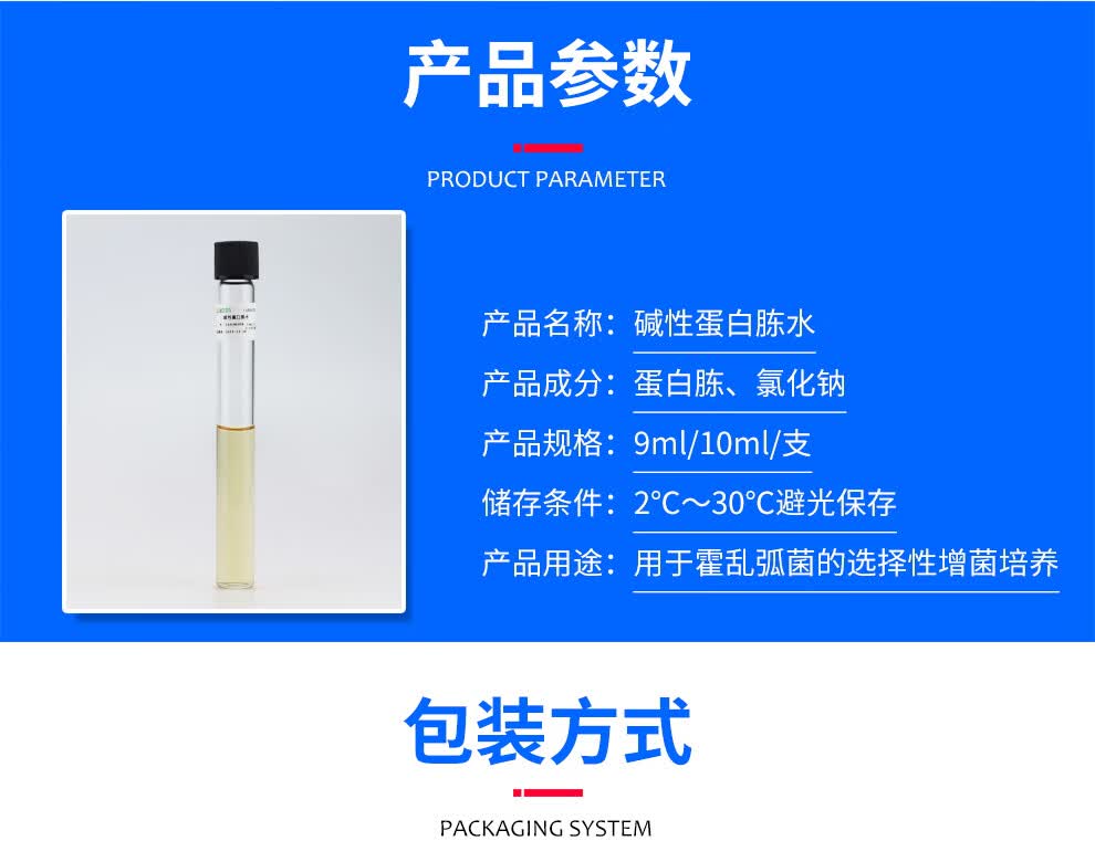 Alkaline peptone water (APW) 9ml/10ml/box High pressure steam sterilization 20 bottles/box 10ml/box 20 bottles/box