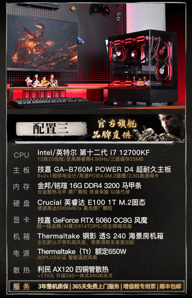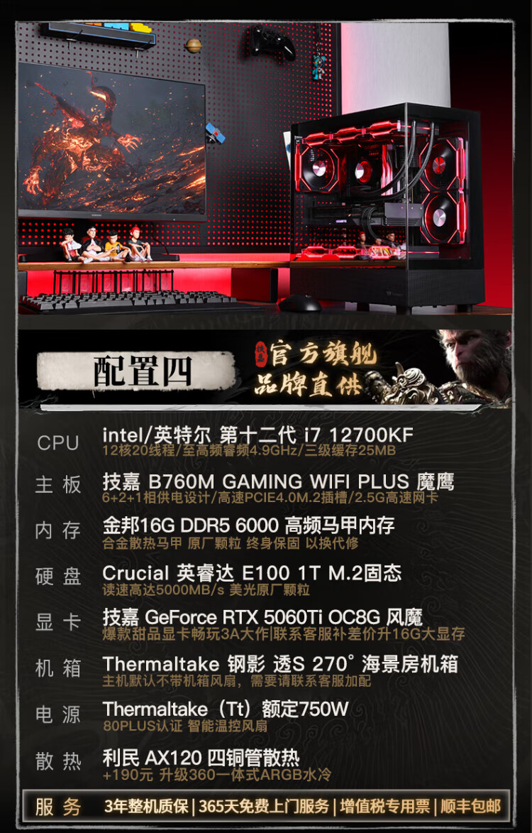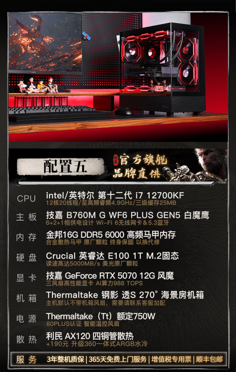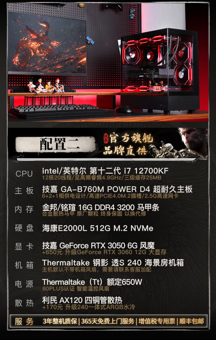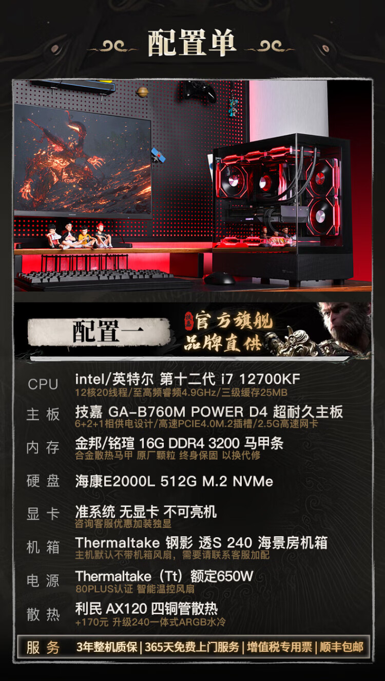 Gigabyte family bucket 12th generation i7 12700KF 5060Ti/5070/5070Ti Black Myth Wukong game e-sports assembly machine desktop live broadcast AI design rendering host with two 12700KF丨3050丨16G丨512G