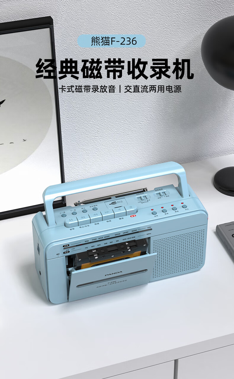 Panda (PANDA) F236 repeater English listening tape player learning machine student tape recorder plugged into U disk player cassette player primary school student tape machine ear-grinding walkman F236 light blue tape repeater/recording/insert U disk