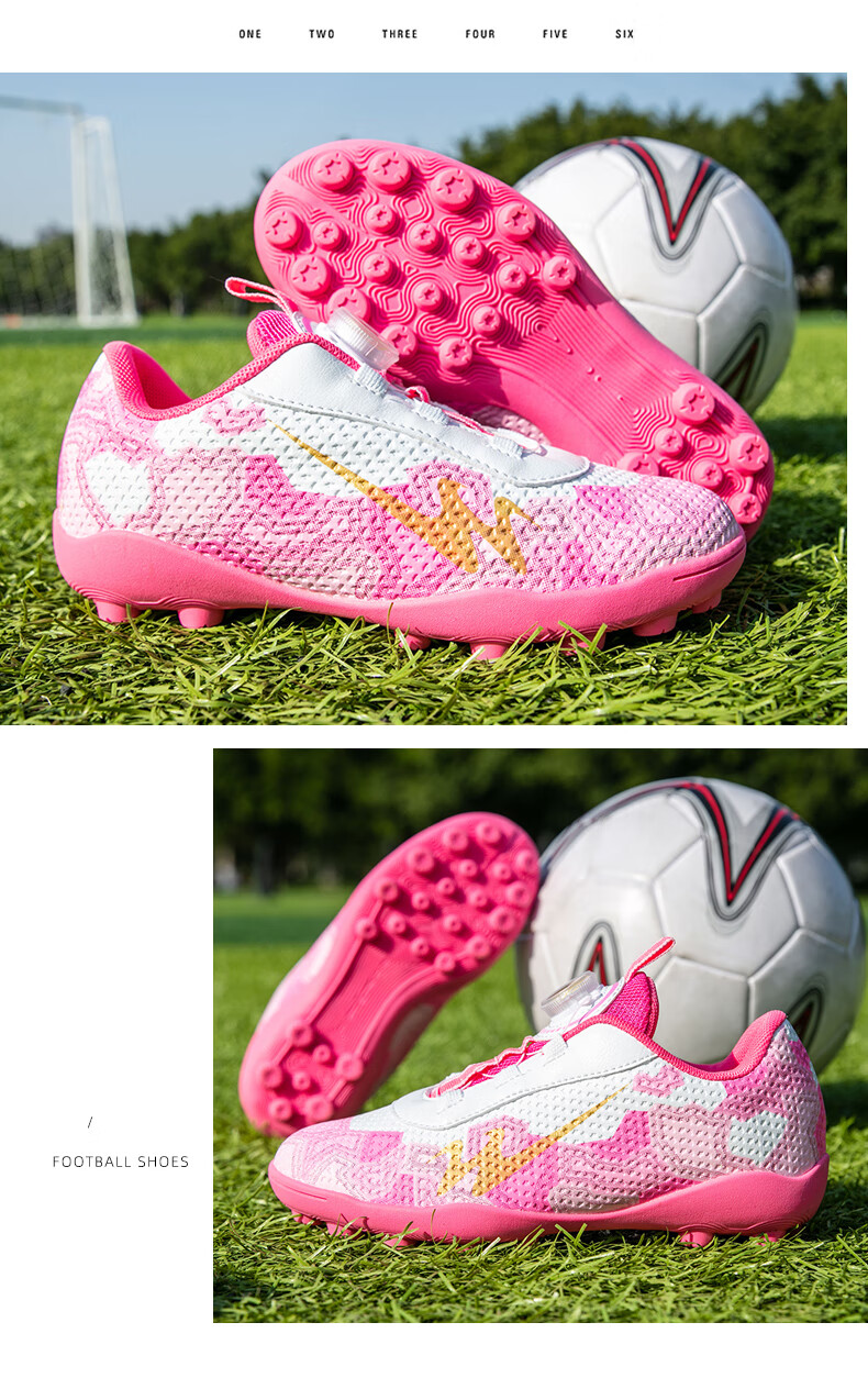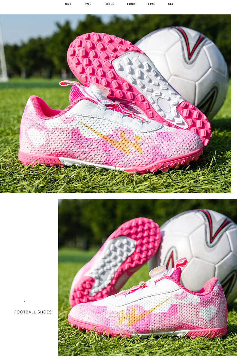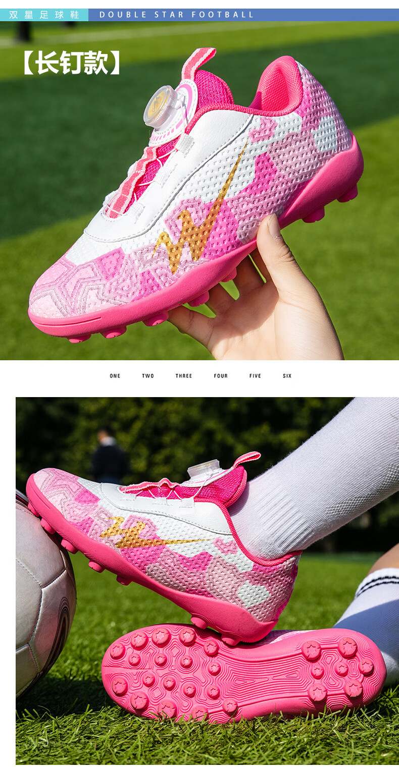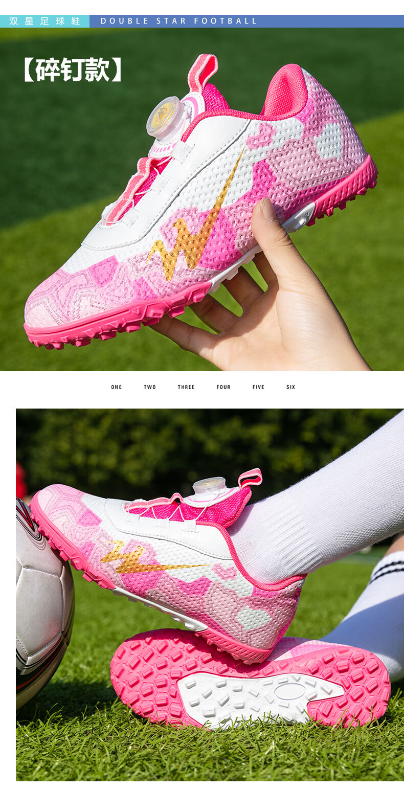 双星八特儿童足球鞋6-12岁碎钉男女童运动鞋青少年中大童小孩学生免系球鞋 白粉【碎钉】 33